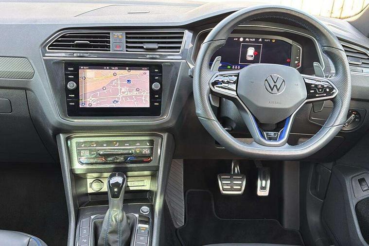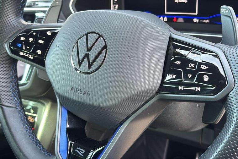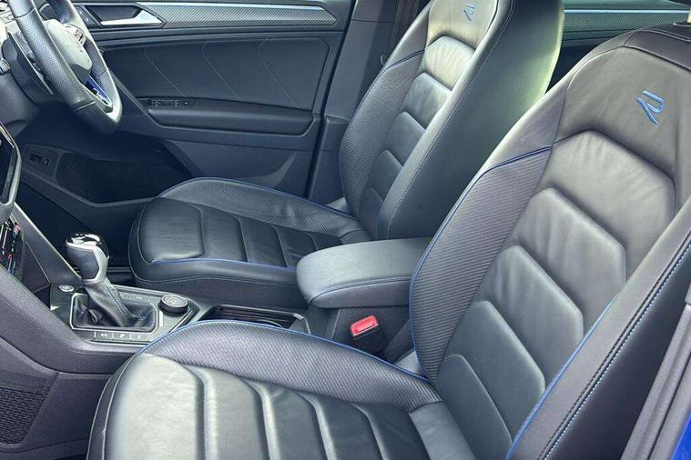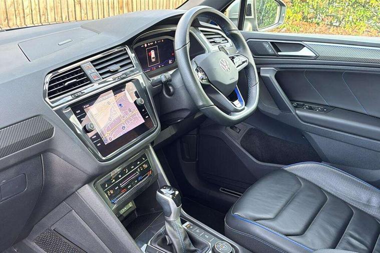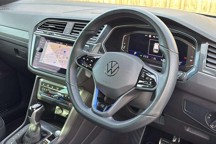 Adaptive cruise control ACC stop and go including speed limiter, App-Connect incl. App-Connect Wireless for Apple CarPlay and Android Auto, Bluetooth phone integration system, Distance control assist, Driver alert system, Driver profile selection, Dynamic road sign display, eCall emergency call system, Electromechanical speed sensitive power steering, Engine start/stop button, Instrument cluster mph speedometer Great Britain, Lane keeping system Lane Assist, Lights on warning, Motorised electric tailgate operated via key fob, drivers door and foot movement under tailgate, Multifunction front facing camera, Outside temperature display, Premium multifunction display with multi colour display, Rev counter, Revision / skills operating concept travel assistant, Service interval indicator, Speed limit display, Start/stop system with regenerative braking, Tailgate/trunk lid unlocking from outside, Trip computer, Warning sound and light for doors and tailgate open, ACC - Adaptive chassis contol with adaptive dampers, All wheel drive - 4Motion, Battery regeneration during braking, XDS electronic differential lock for improved traction and handling, Diversity antenna for FM reception, SD card slot, Simultaneous pairing of 2 compatible mobile devices, SMS functionality - read, compose and send SMS messages using touch-screen display, Title and cover art display, USB C ports, Auto dimming interior rear view mirror, Automatic headlight control system, Body colour door handles, Body coloured door mirrors with integrated indicators, Chrome matt mirror covers, Chrome moldings on the side windows, Coming/leaving home lighting function, Dynamic headlight range control, Front and rear electric windows, Front illuminated door sills with R logo, Heated rear window, High level 3rd brake light, IQ light-Adv high beam, Dynamic light assist for LED matrix headlamp+LED separate DRL+DCL, dark red rear LED tech, Poor weather light+ cornering light, Laminated safety glass windshield, heat and sound insulating, LED rear number plate lights, License plate carrier in front and rear, Poor weather light and cornering light, Privacy glass for rear side windows and rear window, R-Logo light projection, R-Logo on radiator grille with side panels and rear, R-specific diffuser, painted black with cut out for trailer hitch, R-Specific front and rear bumpers, Rain sensor windscreen wipers, Rear fog lamp, Rear side wing doors, Rear spoiler in R style, Rear windscreen washer and wiper with interval delay, Side and rear windows in heat insulating glass, Silver anodised roof rails, Trailer Stability Programme, Windscreen wipers/ intermittent wipe + 4 position delay, 12V outlet in center console rear and in luggage compartment, 12V outlet in front and tray, 2 cup holders in front, 2 LED front reading lights, 2 LED rear reading lights, 3 bench rear seats in 2nd row, 3 rear headrests, 4 load lashing points, 40:20:40 split folding rear seats, Air Care Climatronic 3 zone automatic climate control with enhanced air filter and controls in the rear, Backrest release for left front seat, Black headlining, Climate control unit rear with touch function, Door and side trim panel in foam film, insert in leatherette, Floor mats with R-Logo and stitching, Front centre armrest, Front footwell illumination, Front seats head restraints (x-adjustment), Height adjustable front seats, Height/reach adjust steering wheel, Instrument lighting white adjustable panel illumination, Interior light with delay, Isofix Preparation 2 Rear child seats, Leather gear knob, Lighting door sill trim at front with R Logo, Lockable cooled glovebox, Luggage compartment lighting, Luggage net, Pedals and footrest in stainless steel, R Specific key caps, R-specific sport skin with R Logo in active Info dsiplay, R-taster (direct selection of race mode/ flap control), Rear bench seat asymetrically split folding, longitudinally movable and folding with load-through hatch and center armrest, Remote unlocking for rear seat backrest, Removable luggage cover, Removable rear headrests, Safety optimised front head restraints, Single front passenger seat, Sliding/reclining rear seats, Standard rear seat release, Storage compartment in driver's door, Storage compartment in passenger's door, Storage compartment in rear doors, Storage compartments in luggage area left and right, Storage tray on dashboard, Sun visors with illuminated vanity mirrors, Top sports seats integrated headrest, blue R-Logo in front seats, seat centre panels and outer rear seats in fabric inner side bolster art Velors, Variable boot floor, height adjustable and removable, Easy open and close pack with safelock - Tiguan, 3 point seat belt for centre rear seats, 3 point seat belts with seat belt pretensioners for the outer rear seats, Active bonnet, Curtain airbags for front and rear passengers, Driver/Front Passenger airbags, Drivers knee airbag, Electronic parking brake with auto hold, Electronic Stability Control with driver steering recommendation, ABS, ASR, EDL, EDTC and trailer stabilization, Front assist with autonomous emergency braking (for Adaptive Cruise Control ACC up to 130 mph), Front disc brakes, Front passenger airbag deactivation, Front side airbags, Height adjustable front 3 point seatbelts + pretensioners, Hill hold control, Manual child proof rear door locks, Pedestrian monitoring system, Power assisted brakes, Proactive passenger protection system in combination with front assist, Rear disc brakes, Rigid safety cell with front and rear crumple zones, Two tone horn, Tyre pressure monitoring system, Warning sound and light for front seat belts if unfastened, Anti theft alarm system with interior monitoring, backup horn and towing protection, Anti theft wheel bolts, Central locking system with safelock radio remote control and 2 remote control folding keys, Electronic engine immobiliser, Tool kit, Tyre mobility kit Includes 12V compressor and tyre sealant,