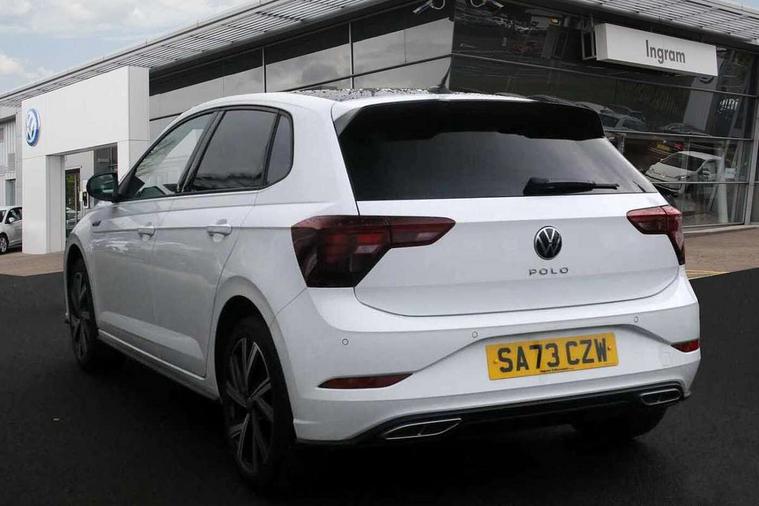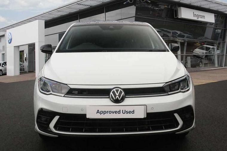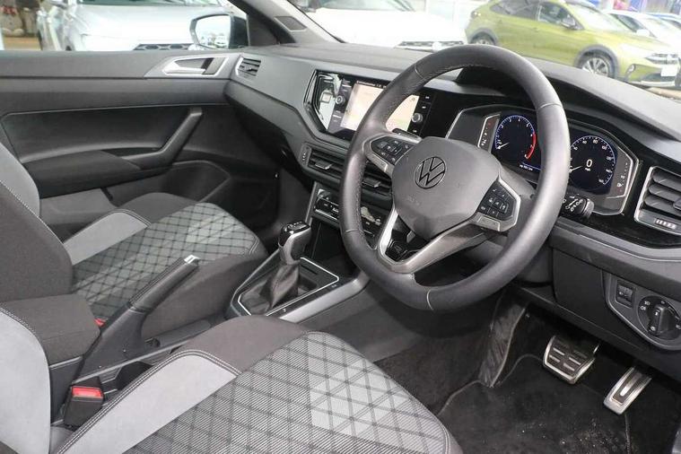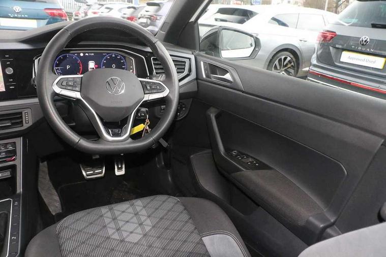 Adaptive cruise control with follow-to-stop and speed limiter, Bluetooth mobile phone interface, Digital Cockpit Pro with 10.25" Display, Driver alert system, Dynamic road sign display, Emergency call service, Power assisted speed sensitive steering, Preparation for We connect and We connect plus, Speedo and rev counter, electronic odometer, trip, service interval display and fuel gauge, Standard rear axle, Travel Assist - Lane keeping system and traffic jam assist, Travel assist including emergency assist, Trip computer, Warning signal and warning light for front and rear seatbelts not fastened, Washer fluid level indicator, Wireless app connect, Front wheel drive, Rear shock absorpion, Start-stop system with battery regeneration (recuperation - energy recovery during braking), DAB Digital radio, Diversity antenna for FM reception, Front and rear 6 speakers, Body colour bumpers, Body colour door handles, Body colour door mirrors, Electric front windows, Front scuff plates with R-Line logo, Heat insulating darkened glass in side and rear windows, Heat insulating glass windscreen, Power folding adjustable/heated exterior mirrors and front passenger exterior mirror lowering function, Rear electric windows, Rear fog light, Rear side wing doors, Rear tinted glass from B-pillar backwards approx 65% tinted, Rear windscreen washer and wiper with interval delay, Third brake light, 12V power socket in centre console, 2 USB-C ports in the front, 2 USB-C charging sockets on the center console in the rear, 3 rear head restraints, 60/40 split folding rear seat and rear seat bench not split, Air care climatronic air conditoning system with active combination filter and 2-zone temperature control, Black roof lining, Chrome plated radiator grille inserts, air vent surrounds and light switch surrounds, Door and side trim panel, Driver and front passenger seat height adjustment, Driver/passenger sunvisors with illuminated vanity mirrors, Front + rear carpet mats in recycled material, Front centre armrest, Front footwell illumination, Front seat backrest storage pockets, Front sports comfort seats, Handbrake lever handle in leather, Headliner in recycled material, Isofix child seat preparation easy-fit (for two outer rear seats, and front passenger seat) compatible with I-size, Karoso artvelours cloth upholstery, Leather trimmed gear knob, LED interior light with switch off delay and dimmer, 2 reading lights front and rear, Luggage compartment cover, Luggage compartment floor, Luggage compartment lighting, Lumbar adjustment for front seats, Single front passenger seat, Stainless steel pedals, Standard pedal cluster, Three spoke leather wrapped multifunction steering wheel with shifting paddles, Light and sight pack - Polo R-Line/Black Edition, 3 point height adj front seatbelts + pretensioners, 3x3 point rear seatbelts, ABS, Driver and front passenger airbag with front passenger airbag deactivation, Drivers and front passengers safety optimised head restraints, ESC (Electronic stability control) + EDL (Electronic Differntial lock) and ASR (Traction control), Extended and predictive pedestrian/ cyclist protection, Front curtain and side airbags with center airbag, Hill hold control, Manual child lock in rear doors, Single tone horn, Tyre pressure loss indicator, Alarm with interior protection, Anti-theft alarm system with interior monitoring, backup horn, and towing protection, Anti-theft wheel bolts, Electronic engine immobiliser, Chrome applications on rotary light, mirror adjustment, window regulator switches, outlet with frame in black, Dark grey anodised matt decorative inserts in dash and front door panels, Low rolling resistance tyres,