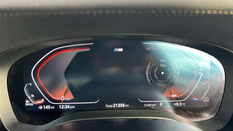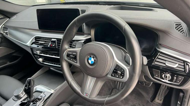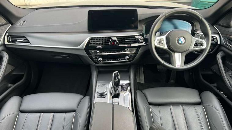 32GB hard disc drive (HDD) memory, Active Guard, Bluetooth connection, BMW ConnectedDrive online services, BMW Live Cockpit Professional sat nav system with 12.3" instrument display and high resolution control display, BMW Teleservices, Brake pad wear indicator, Cruise control with brake assist, Driving experience switch, eCall emergency call system, Electric Power Steering (EPS) with Servotronic, iDrive controller with shortcut buttons, Intelligent emergency call, Multifunctional instrument panel, Oil sensor for level and grade, On board computer inc. average speed, fuel consumption, liquid crystal Info display, journey computer, outside temperature display, personal profile, On-board diagnosis - OBD, Powered by Operating System 7.0, Service interval indicator, Speed limiting function, Stop/start button, 48V Mild hybrid technology, Diesel particulate filter, Drive performance control with ECO PRO comfort + sport mode, Engine cover with twin turbo designation, M sport suspension, Steptronic sport transmission with gearshift paddle switches on steering wheel, DAB Digital radio, Favourite buttons, Acoustic glazing, All round anti-corrosion system, Automatic windscreen wipers and automatic headlight, Automatically dimming rear view mirror, BMW Individual high gloss shadow line includes exterior mirror frame, window frame surround, B pillar finish, air breather in high gloss black, Body colour door handles, Body coloured bumpers, Door handle illumination, Dynamic brake lights with LED technology, Electric front and rear windows with fingertip open/close + anti-trap facility and comfort closing function, Electrically adjustable and heated exterior mirrors includes integrated direction indicators and automatic parking function, Folding exterior side mirror with auto- dimming, Follow me home headlight function, Heated windscreen washer jets, High gloss black active air stream kidney grille, LED daytime running lights, LED Headlights, LED third brake light, M designation on front side panels, left and right in chrome, M Sport exterior styling, Preparation for high beam assistant, Rear boot, Rear side wing doors, Trapezoidal visible exhaust tailpipes, 12V power socket in front and rear, 3 seat bench in 2nd row, Armrest - front and rear integrated door trim, centre console includes storage compartment, rear centre includes 2 cupholders, Child seat ISOFIX attachment with rear outer seats includes top tether, Cup holders (2 front and 2 rear), Front and rear footwell lights, Front reading lights, Height and length adjustable steering column and activation via lateral lever on the steering column, Lockable glove compartment with light, M door sill finishers, M specific pedals, M specific velour floor mats, Multifunction controls for leather steering wheel, Rear headrests, Single front passenger seat, Three spoke sport M leather steering wheel, Ambient lighting pack - 5 Series, Connected package professional - 5 Series, M Aerodynamic pack - 5 Series, Airbags - driver/front passenger, rear and side, first and second row seats head airbags, front passenger seat airbag deactivation, Anti-lock braking system (ABS), Automatic Stability Control (ASC), Brake assist function, Brake energy regeneration, Cornering brake control (CBC), Crash sensor activating central locking release, hazard warning lights, fuel cut off and interior lighting, Deformation zones - front and rear with door reinforcements and bumpers up to 2.5 mph, DSC - Dynamic Stability Control, Dynamic brake control, Dynamic Traction Control - DTC, Electromechanical parking brake with automatic drive away release and auto hold function, Electronic brake force distribution, Engine drag torque control, Front and rear brake discs with interior ventilation, Front head restraints with anti-whiplash, Hill start assist, Mechanical child proof lock on rear doors, Passive protection for pedestrians, Rear door child safety locks, Side impact protection, Three point seat belts for all four seats, Two tone horn, Tyre pressure indicator, Warning triangle and first aid kit, Alarm system (Thatcham 1) with remote control and electronic engine immobiliser, Locking wheel bolts,