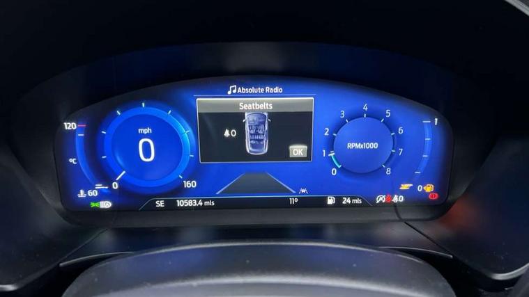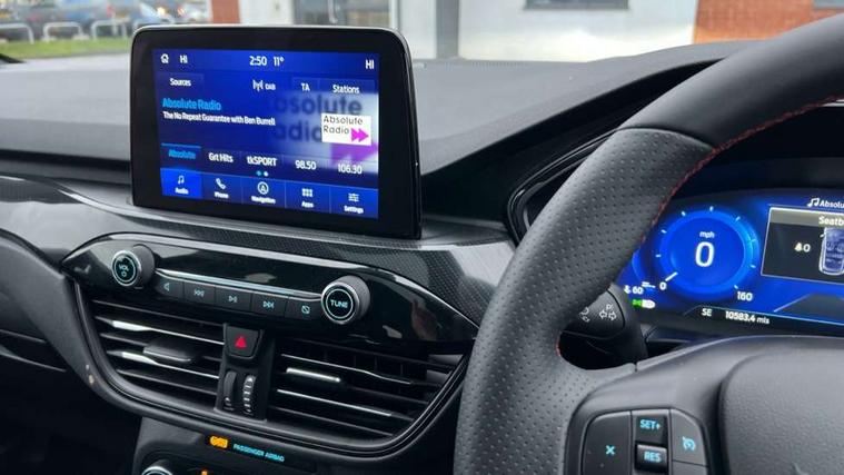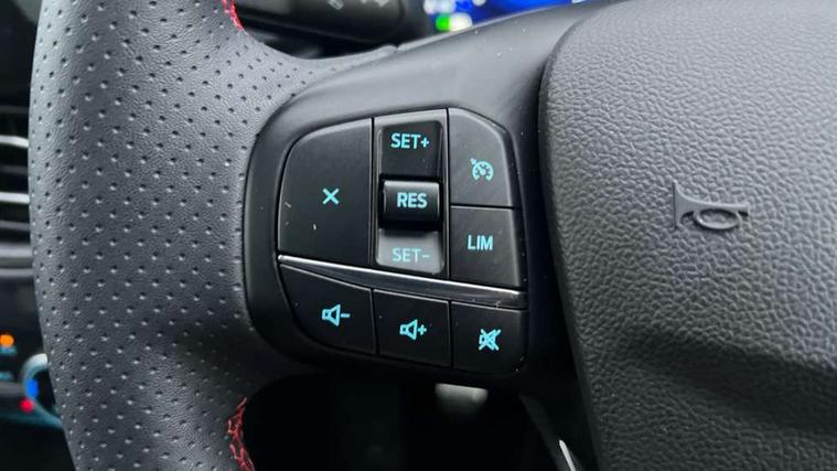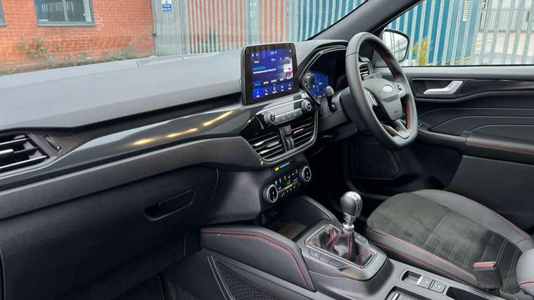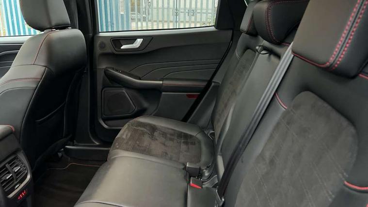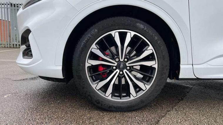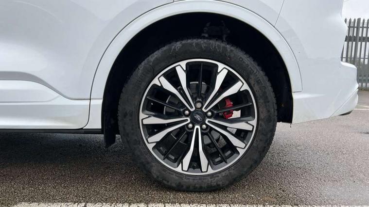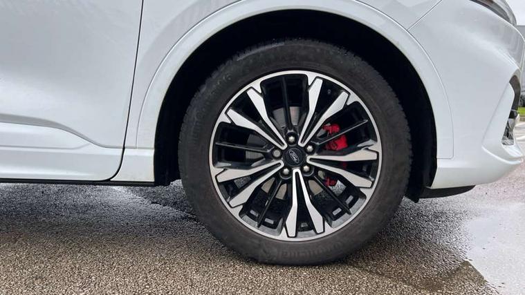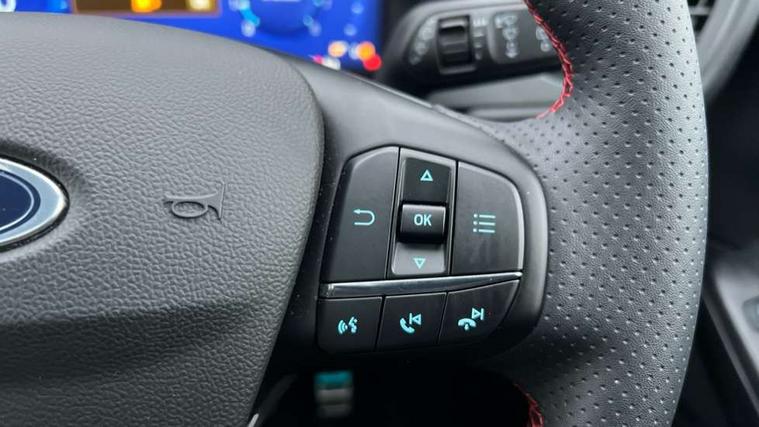 12.3" digital colour instrument cluster, Ford easy fuel, Ford SYNC 3 with 8" TFT LCD touchscreen, App Link, andriod auto/apple carPlay, emergency assistance and navigation with Ford pass connect, Front and rear parking sensors, Hands free power tailgate, Lane keeping aid with lane departure warning, Power assist steering, Rear view camera, Selectable drive modes, Service interval indicator, Sports suspension, Twist beam rear suspension, B&O premium audio system with 10 speakers and subwoofer, 2 USB ports, DAB radio/CD, Auto headlamps with high and low beam, Black roof rails, Body colour bumpers, Day/night rear view mirror, Front LED fog lamps, Large rear roof spoiler, LED daytime running lights, LED rear lights, Power folding, electrically adjustable and heated door mirrors with puddle lights, Power front/rear windows with global close, Power opening panoramic roof, Quickclear heated windscreen, Rain sensing wipers, Rear privacy glass, Rear side wing doors, Rear wiper, ST Line body styling kit with unique front and rear fascia and bumper, rear painted diffuser, front painted skid plates, dark mesh upper grille, ST Line front scuff plates, Third brake light, Twin exhausts, 2nd row sliding seats with 60:40 split, Alloy pedals, Centre console with electronic parking brake, Dark headlining and pillars, Electronic automatic temperature control (EATC), Flat bottomed leather steering wheel in sensico with red stitching, Front and rear head restraints, Heated passenger and driver seats, Heated rear seats, Heated steering wheel, Partial premium touch Sensico with black cloth inserts and red stitching, Rear centre head restraint, Single front passenger seat, Sports seats, ST Line front and rear floor mats, ST Line gear knob, 3x3 point rear seatbelts, Airbags - front driver/passenger, front and rear curtain, Drivers knee airbag, Electronic stability control (ESC) and ABS, Ford MyKey Gen 2 safety system, Manual child proof rear door locks, Post collision braking, Pre collision assist with autonomous emergency braking, Rear seat Occupancy alert, Red brake calipers, Tyre pressure monitoring system, Engine immobiliser, Keyless entry and Ford power start button (Keyless start), Locking wheel nuts, Remote powered central double locking doors, Thatcham category 1 alarm,