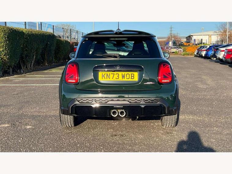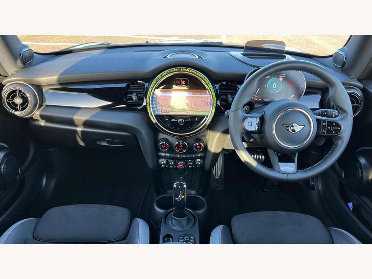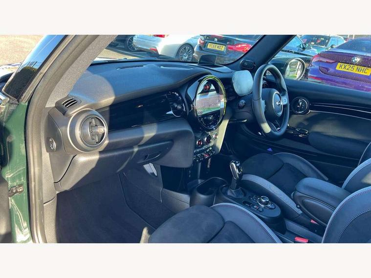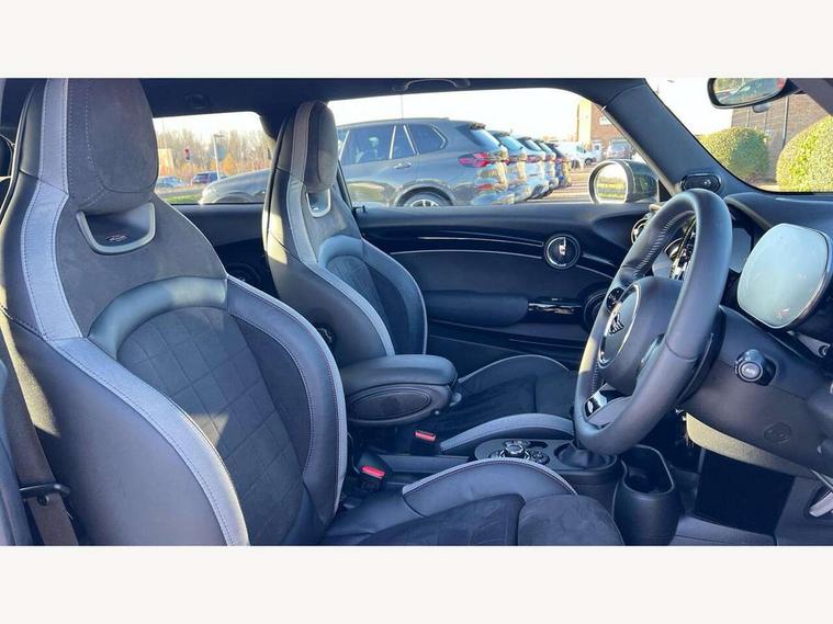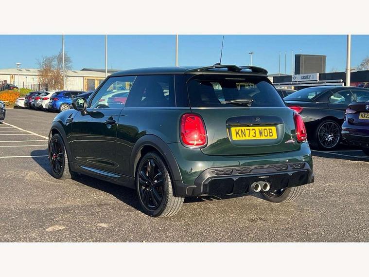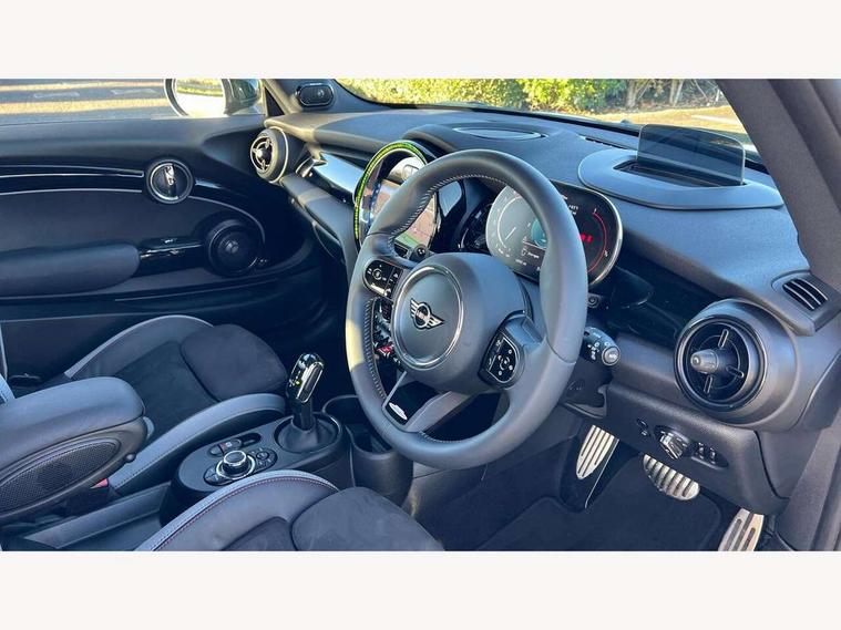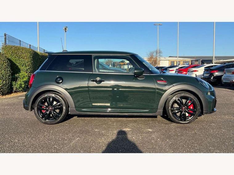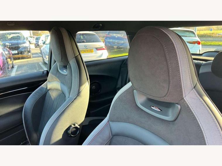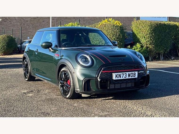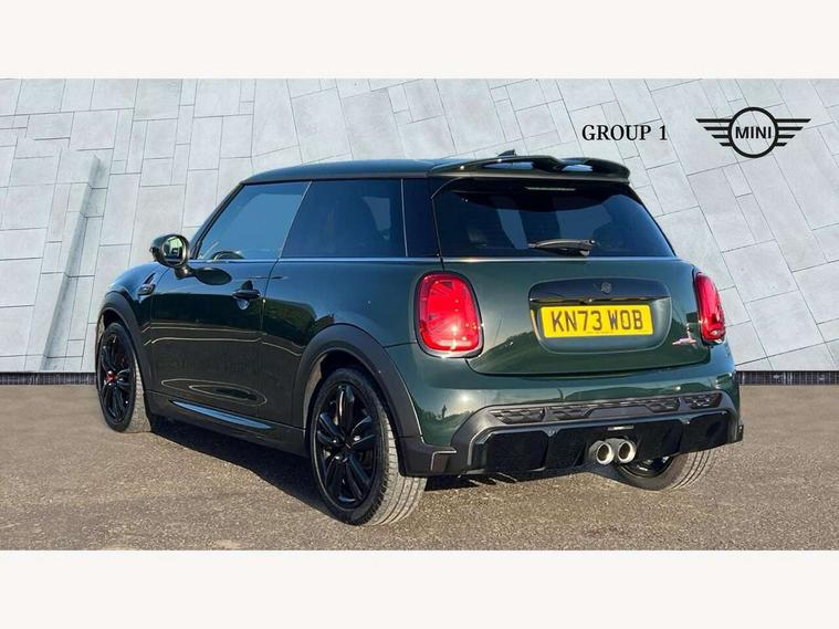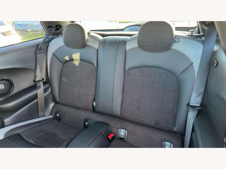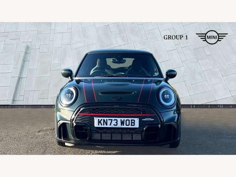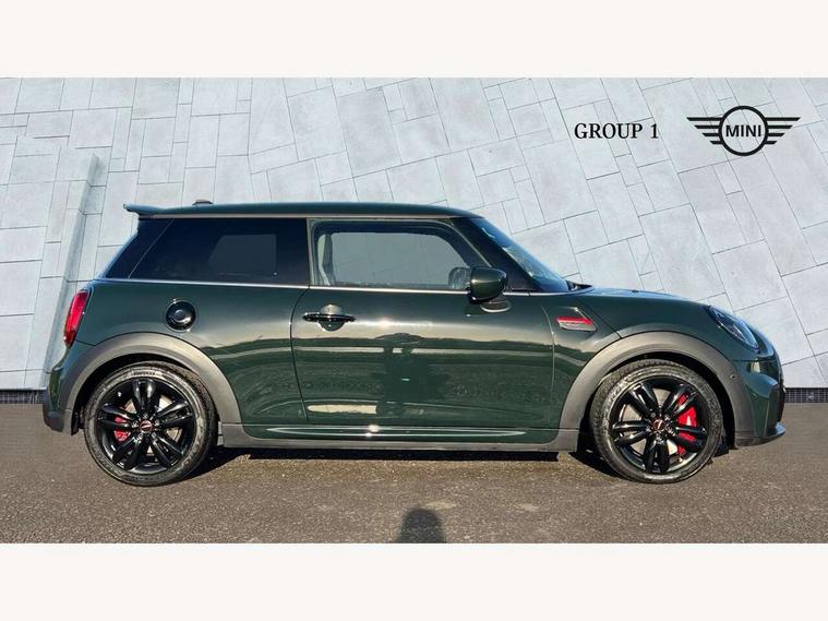 Apple CarPlay, Automatic start/stop function with brake energy recuperation, Compatible mobile phone bluetooth with audio streaming, Cruise control with brake assist, Electro-mechanical speed dependant steering assistance, Flexible car sharing preparation, Instrument cluster, MINI Driving Modes - centre toggle switch to control driving setting (sport, mid and green), Mini E-call, MINI TeleServices, On board computer, Rear park distance control, Service interval indicator, Double Vanos system, Eight speed steptronic sport transmission, with gearshift paddles, Fully variable valve control, High precision injection, Performance Control, 8.8" touchscreen with LED ring, FM tuner and DAB digital radio, 3rd brake light, Automatic headlight activation switch, Bonnet scoop, Dynamic brake lights, Electric front windows, Heated rear window, Heated windscreen washer jets, JCW Aerodynamic kit - Front and rear bumpers with sporty JCW styling and part-painted side sills with MINI John Cooper Works door sill finishers, John Cooper Works logo above an individual grille strut in Chilli Red, John Cooper Works rear spoiler, LED headlight with closed ring and daytime driving lights, Radiator grille piano black border with honeycomb structure in black matt, Rain sensor window wipers, Rear fog lights, Rear LED lights with union jack design, Rear window wiper, Side scuttle panel with integrated indicator, Side scuttle with MINI John Cooper Works logo in black high-gloss with red border, Sun/heat protection glass, Two central exhaust tailpipes with chrome finisher, White indicator lenses, 12V Accessory socket in centre console, 2 seat bench in 2nd row, 4 lashing eyes in luggage compartment, 60/40 split folding rear seat, Anthracite headliner including grab handles and clothes hooks, Carbon black colour line - Knee roll and door armrest, Chrome interior highlights, Cupholders, Front and rear isofix with front passenger airbag deactivation, Front floor mats in velour, Glove compartment, Height and length steering column adjustment, Interior lighting with 12 different colours across the dashboard, underneath door bezel with illuminated laser-engraved design on central display, JCW Sport seats with integrated headrests, adjustable thigh support and John Cooper Works logo, Leatherette gearshift lever and handbrake gaiters, LED reading lights, vanity mirror lights, front foot well light and spotlight on front seats, Manual air conditioning, Mechanical seat adjustment - forward/back & backrest for front seats and driver seat height adjust, Multifunction steering wheel, Passenger seat height adjuster, Rubberised stainless steel pedals, Single front passenger seat, Storage compartments in doors, Storage pocket on back of front seats, Sunvisors with vanity mirrors, Walknappa leather steering wheel with grey seam and John Cooper Works badge on Piano Black lower steering wheel spoke, Navigation pack without Apple Carplay - Mini Hatchback, Piano black exterior pack - JCW, 3 point seatbelts on all four seats, 4-piston fixed-calliper brakes front, 6 Airbags - front, side, head and seat belt tensioners, Anti-lock braking system (ABS), DSC - Dynamic Stability Control, Front and rear disc brakes, Red brake callipers with John Cooper Works logo, Single tone fanfare horn, Tyre pressure monitoring system, Alarm system with tilt sensor, monitoring doors, bonnet interior and tailgate, Electronic vehicle immobiliser, Start/stop toggle with keyless go, Tool kit,
