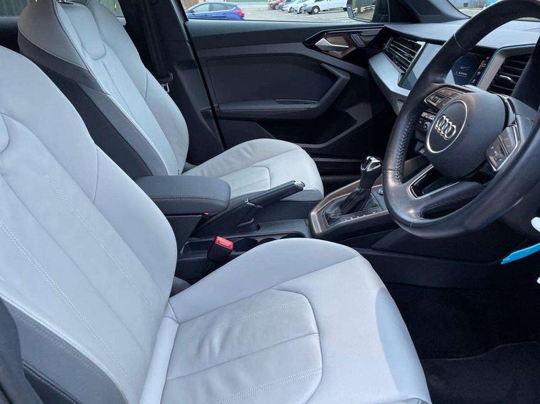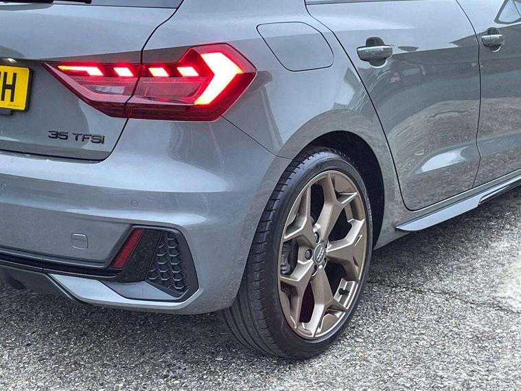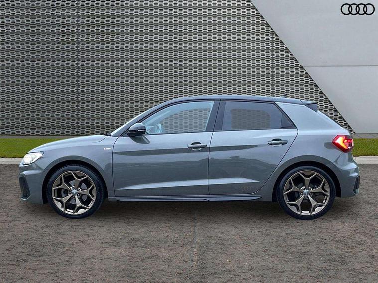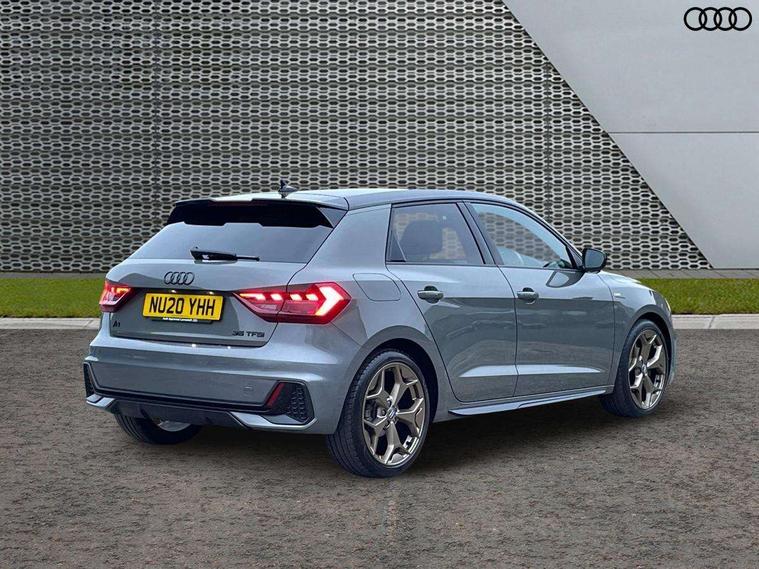 10.25" Digital instrument cluster display classis style instrument dials + speed, odometer, time, outside temperature, telephone menu + fuel level warning, Audi connect safety emergency and service including E-call, Audi drive select - power steering assistance + engine + gear shift 3 preset modes (auto, dynamic, efficiency and an Individual mode), Audi smartphone interface with connect compatible smartphone via USB directly MMI display + Nav, music, third party apps controlled via MMI controller, Automatic start/stop system, Bluetooth interface, Cruise control, Driver's information system, Electromechanical power steering, Lane departure warning system, Rear parking sensor, Service interval indicator, Speed limiter, Voice control system, Washer fluid level indicator, Sports suspension, 1 x SDXC card reader, 1 x USB type C and 1 USB type A charging points, DAB Digital radio, MMI radio plus with 8.8" colour MMI display screen and MMI touch, Audi rings logo foil in bronze, Auto dimming rear view mirror, Darkened LED headlights with LED rear lights + dynamic rear indicators, Electric front and rear windows, Electrically adjustable, heated, folding door mirrors with integrated LED side indicator, Exterior mirrors in contrast colour, Ferrum grey inlays in polygon structure fine paint finish, Front side air inlets in grained matt black and C frame in titanium black, Heat insulating glass windscreen and side windows, Heated rear windscreen, Radiator grille and rear diffuser in matt titanium black, Radiator protective grille frame in matt aluminium silver, Rain and light sensors, Rear fog lights, Rear wiper, S line badges on front wings, Side front spoiler lips in grained matt black, 12V socket in centre console with two cup holders, 3 rear seats with headrests, 40:60 Split folding rear seat or folded fully, Black cloth headlining, Black pedals, Door sill trims with aluminium inlay, Driver and passenger seat with manual height adjust with forward and backwards adjustment, Front and rear black floor mats with contrast stitching in copper, Front head restraints, Height and reach adjustable steering wheel, ISOFIX child seat mounting for front passenger and outer rear seats including top tether attachment point of outer rear seats, Leather gear knob with aluminium trim, Leatherette armrest with contrast stitching in copper, Leatherette handbrake grip, Luggage compartment light with front and rear reading lights, Manually adjustable lumbar support in front seats, Twin leather upholstery with copper contrast stitching and copper cloth accents + front sports seats, Black exterior styling pack - A1 Sportback, Luggage compartment pack - A1, Multicoloured LED Ambient lighting pack - A1 Sportback, 3x3 point rear seatbelts, Brake assist function, Driver and front passenger airbag with front side and head airbags, Electronic Stability Control including ABS, EBD, ASR and EDL, Front and rear seatbelt reminder, Front passenger airbag deactivation switch, Hill hold assist, Seatbelt height adjustment for front seats, Seatbelt monitoring, Tyre pressure warning light, Warning triangle and first aid kit, Anti theft alarm, Anti theft wheel bolts and loose wheel warning, Audi pre-sense front with pedestrain and cyclist recognition, Immobiliser, Remote central locking with 2 foldaway keys, Aluminium trim for control switches, air vents and digital instrument cluster, Copper accent areas including air vents, door handle recesses and centre console in satin paint finish, 18" 5 Y spoke design partly polished alloy wheels in bronze,