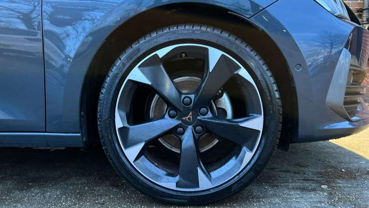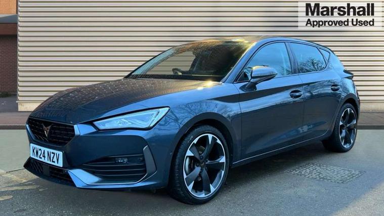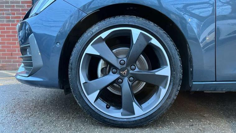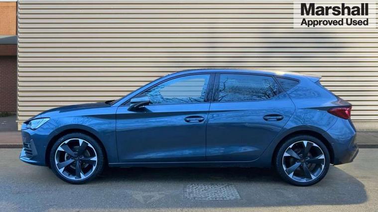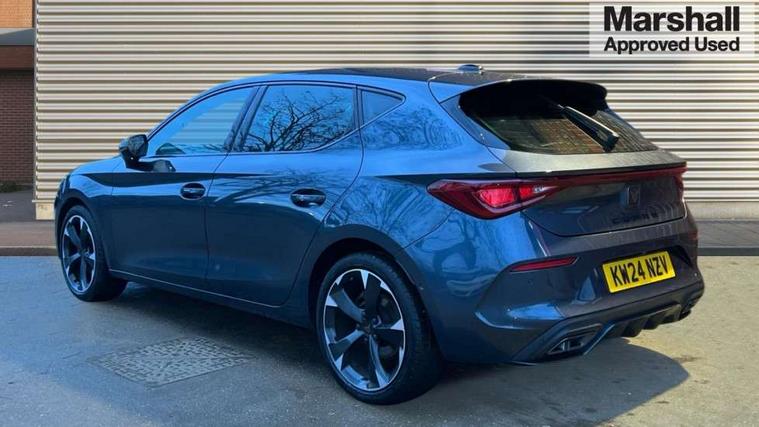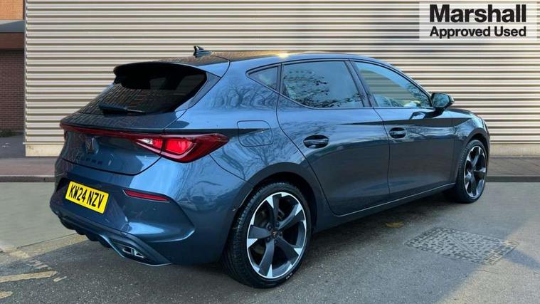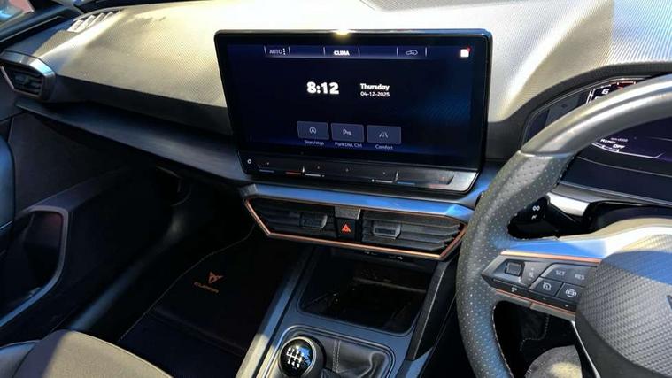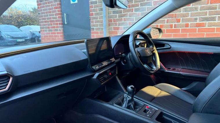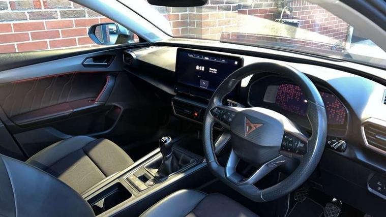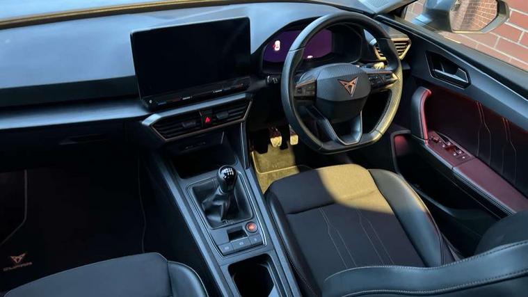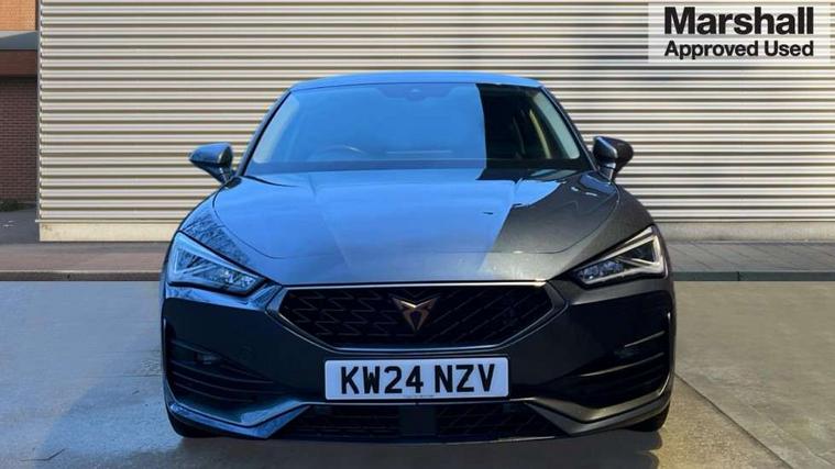 CUPRA drive profile selection with (Comfort/Sport/Individual), throttle response and gearshift mode, Digital cockpit, E-call, Electro mechanical speed sensitive power steering, Four x USB Type C ports (2 in front and 2 in rear), Front assist with forward collision warning braking reaction to vehicles, pedestrians and cyclists, Full link smartphone integration with Mirror Link, wireless Apple CarPlay and wired Google Android Auto, Lane assist, Lockable tailgate, Park assist (inc front/rear parking sensors), Rear view camera, RPM, trip computer, outside temp gauge, instrument light brightness, low fuel warning light, lights on reminder, gearshift indicator, Service interval indicator, Start/stop system with regenerative braking, Wireless phone charger, Sports suspension, Auxiliary input socket, Auto dimming rear view mirror, Body colour door handles, Body coloured bumpers, Cupra sports bumpers, Dark tinted rear windows, Electric front/rear windows, Electrically adjustable, heated and folding door mirrors, LED front fog lamps with cornering function, LED headlights with dynamic turn signals, tail lights, rear fog lights with rear coast to coast lighting, Rain sensing wipers, Rear diffuser with twin exhaust pipe on each side, Rear side wing doors, Rear wash/wipe, Separate daytime running light with automatic headlight control and coming home feature, Third brake light, 12v power supply in centre console, 3 seat bench in 2nd row, 5 headrests, 60/40 split rear bench seat with armrest, Ambient lighting with glovebox, footwell and single monocolour, Cupra Leather flat bottomed, perforated steering wheel, Driver/passenger manual seat height adjustment, Folding boot cover, Front and rear reading lights X 4, Front centre armrest, Front seats manual lumbar adjustment, Grey headlining, Height/reach adjust steering wheel, Illuminated interior front door sills, ISOFIX points in outer rear seats with top tether anchorage points, Jack and tool kit, PVC/Cloth upholstery with copper stitching, Single front passenger seat, Sports seats, Sunvisors with illuminated mirror, Three zone climate control, Media system plus with navigation pack - Leon Cupra, Safety and driving pack (M) - Cupra leon, 3 point seatbelts on all rear seats, ABS, Brake control system - ESC and brake booster, Child proof door locks, Cupra black brake calipers, Driver and front passenger airbags with front passenger airbag de-activation, front side and curtain airbags, Electronic parking brake, Extended safety system - seat belt tensioner, window closure and hazard lights, Hill hold control, Rear disc brakes, Seat belt reminder for front and rear seats, Tiredness recognition system, Tyre pressure monitoring system, Anti theft alarm system with interior monitoring in cab, backup horn and towing protection, KESSY Advanced - Keyless start, keyless entry, Locking wheel bolts, Chrome and copper interior detailing, 18" Machined sport black and silver alloy wheels with 92Y tyres,
