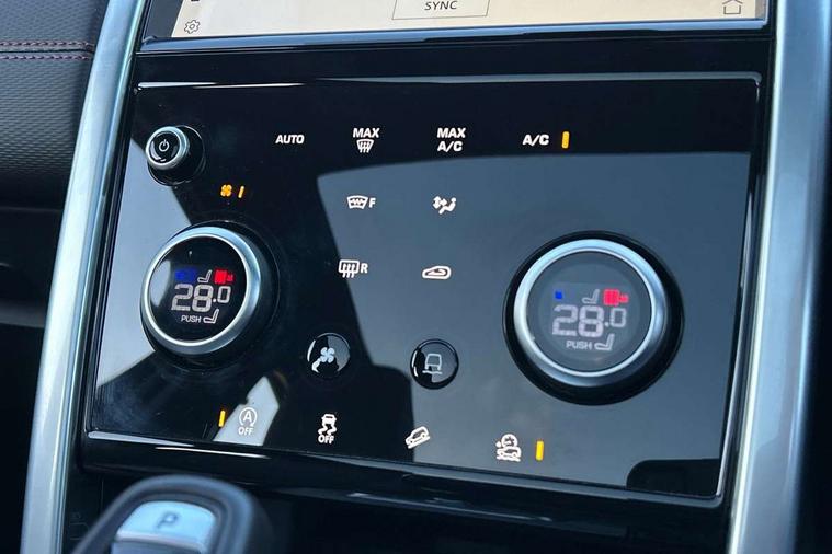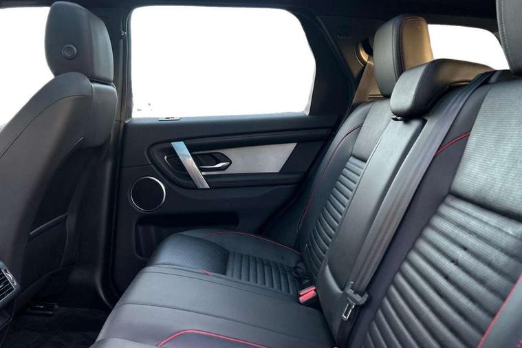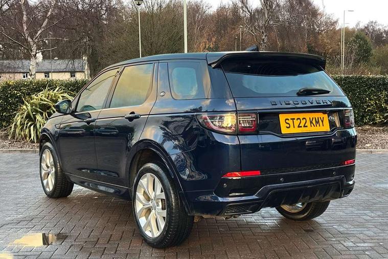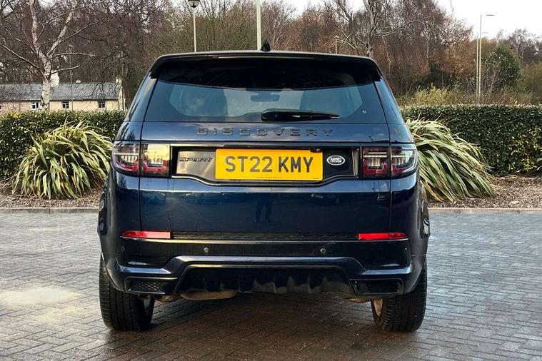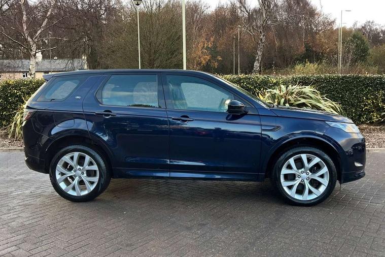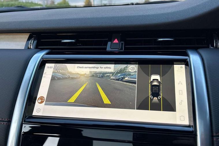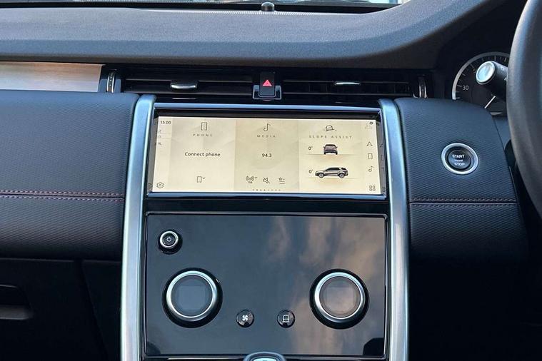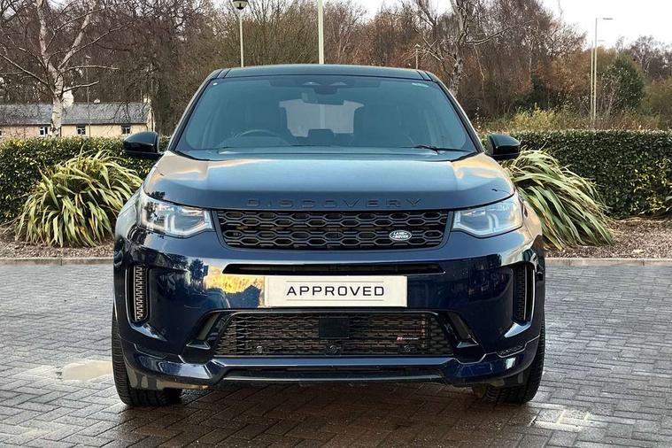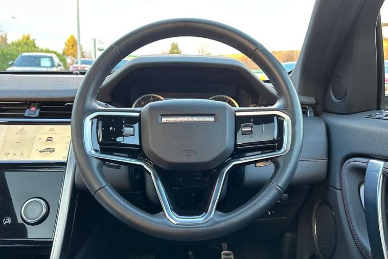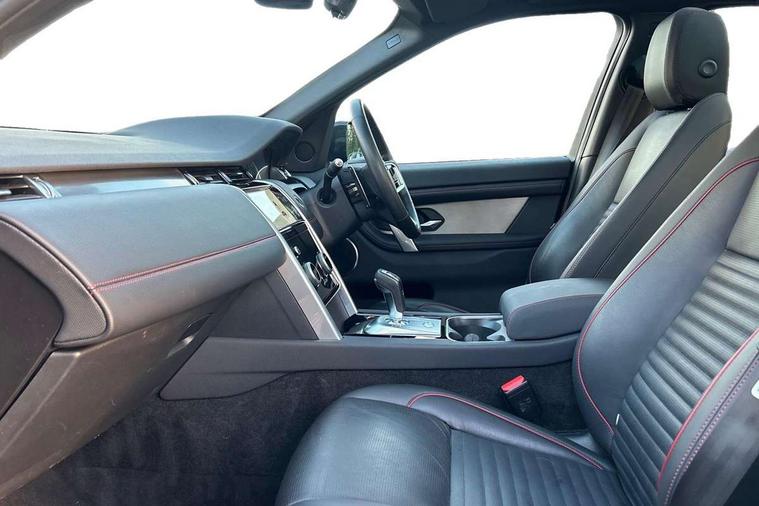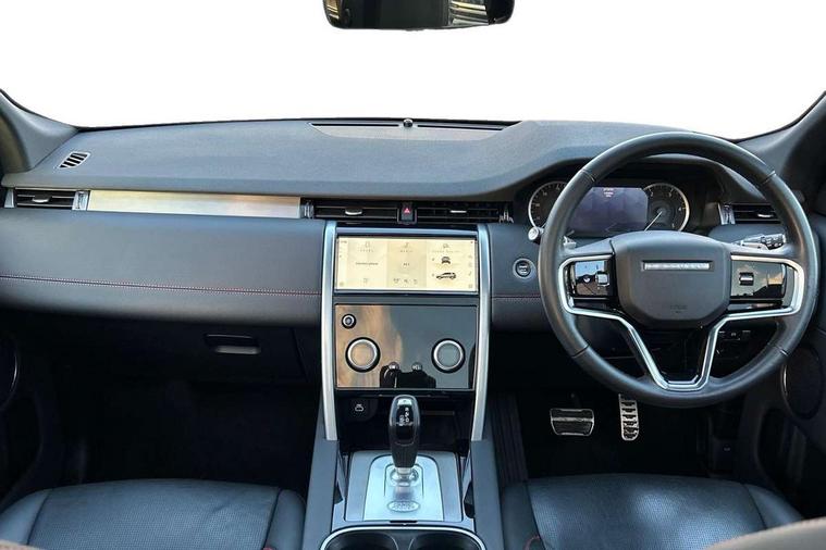 10" touch screen, Adaptive cruise control, Android Auto, Apple CarPlay, Driver condition monitor, eCall emergency call system, Front and rear parking aid, InControl remote premium, Lane keep assist, Locking fuel flap, PAS, Pivi Pro connected navigation system with upgraded Infotainment, Powered tailgate/boot lid, Push button start, Rear collision monitor, Service interval indicator, Traffic sign recognition with adaptive speed limiter, Trip computer, Wade Sensing, All terrain progress control, Coil suspension system, Diesel particulate filter, Dynamic stability control, Terrain Response 2, Bluetooth connectivity including audio streaming, Digital Audio Broadcast radio-DAB, Steering wheel mounted audio controls, 3rd brake light, Automatic headlights, ClearSight interior rear view mirror, Electric front/rear windows, Electric heated/power fold door mirrors with approach lights and auto dimming driver side, Fixed panoramic sunroof with powered sunblind, Front and rear recovery eyes, Heated rear window, Heated windscreen including heated washer jets, No badges, R Dynamic badge, Rain sensing windscreen wipers, Rear fog lights, Rear side wing doors, Rear wing door, Rear wiper, 5 seats, Bright metal pedals, Centre console with armrest, Footwell lights, Front and rear grab handles, Front passenger isofix child seat attachment, Loadspace cover, Loadspace light, Overhead lighting console, Overhead stowage for sunglasses, Rear headrests, Satin chrome gearshift paddles, Sunvisors with illuminated vanity mirrors, Tilt/reach adjustable steering wheel, Black exterior pack - Discovery sport, Online pack with data plan - Discovery, 3 point seatbelts on all seats, ABS, Brake hold function, Child locks on rear doors, Collision mitigation braking system, Cornering brake control (CBC), Driver/Front Passenger airbags, Drivers knee airbag, Electronic brake force distribution, Electronic parking brake, Emergency brake assist, ESP + traction control, Hill descent control, Hill launch assist, Pedestrian airbag system, Rear seat ISOFIX, Roll stability control, Side and curtain airbags for front and 2nd row seats, Trailer stability control, Tyre pressure monitoring system, Battery Back Up System (BBUS) with tilt sensor, Global lock and unlock switch on driver door, Intrusion sensor, Keyless entry, Locking wheel nuts, Centre stack rails in noble chrome,