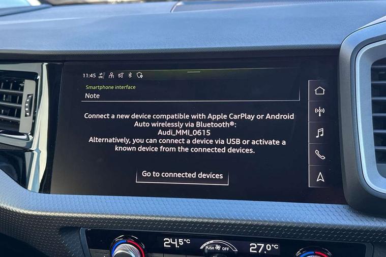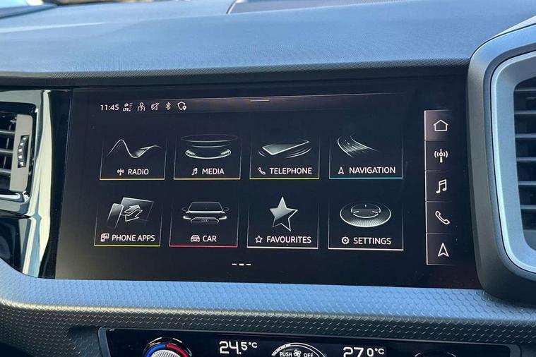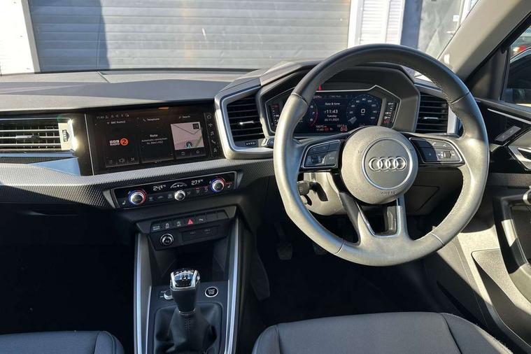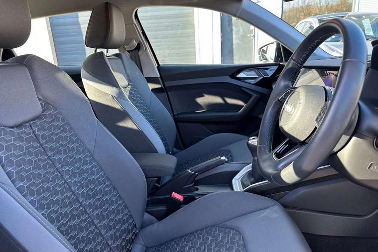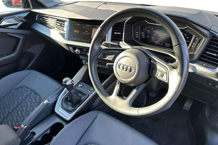 10.25" Digital instrument cluster display classis style instrument dials + speed, odometer, time, outside temperature, telephone menu + fuel level warning, Audi drive select - power steering assistance + engine, Audi smartphone interface with connect compatible smartphone via USB directly MMI display + Nav, music, third party apps controlled via MMI controller, Automatic start/stop system, Bluetooth interface, Cruise control, Driver's information system, Electromechanical power steering, Emergency e-call, Lane departure warning system, Rear parking sensor, Service interval indicator, Speed limiter, Voice control system, Washer fluid level indicator, Dynamic suspension, 2 x USB type C connection points, 6 passive loudspeakers, DAB Digital radio, MMI radio plus with 10.1" colour MMI display screen and MMI touch, Auto dimming rear view mirror, Body coloured bumpers, Body coloured door mirrors, Electric front and rear windows, Electrically adjustable, heated, folding door mirrors with integrated LED side indicator, Front side air inlets in grained matt black and C frame in anthracite black, Heat insulating glass windscreen and side windows, Heated rear windscreen, High level LED brake light, LED headlights with LED rear lights + dynamic rear indicators + headlight adjustment and high beam, turning light + LED daytime running lights, Radiator grille and rear diffuser in matt anthracite black, Radiator protective grille frame in matt aluminium silver, Rain and light sensors, Rear fog lights, Rear side wing doors, Rear wiper, Side front spoiler lips in grained matt black, 12V socket in centre console with two cup holders, 3 rear seats with headrests, 3 seat bench in 2nd row, 3 spoke leather multifunction plus steering wheel, 40:60 Split folding rear seat or folded fully, Black front and rear floor mats, Door sill trims with aluminium inlay, Driver and passenger seat with manual height adjust with forward and backwards adjustment, Front head restraints, Front passenger seat, Grey cloth headlining, Height and reach adjustable steering wheel, ISOFIX child seat mounting for front passenger and outer rear seats including top tether attachment point of outer rear seats, Leather gear knob with aluminium trim, Leather handbrake grip, Luggage compartment light with front and rear reading lights, Manual air conditioning, Manually adjustable lumbar support in front seats, Novum cloth upholstery with front sport seats, Luggage compartment pack - A1, 3x3 point rear seatbelts, Audi pre-sense front with pedestrain and cyclist recognition, Brake assist function, Driver and front passenger airbag with front side and head airbags, Electronic Stability Control including ABS, EBD, ASR and EDL, Front passenger airbag deactivation switch, Hill hold assist, Manual rear child locks, Seatbelt height adjustment for front seats, Seatbelt monitoring, Tyre pressure warning light, Warning triangle and first aid kit, Anti theft alarm, Anti theft wheel bolts and loose wheel warning, Immobiliser, Remote central locking with 2 foldaway keys, Aluminium trim for control switches, air vents and digital instrument cluster, Black dashboard, Silver grey accent areas including air vents, door handle recesses and centre console in diamond paint finish, Slate grey inlays polygon structure in fine paint finish,
