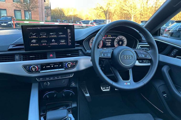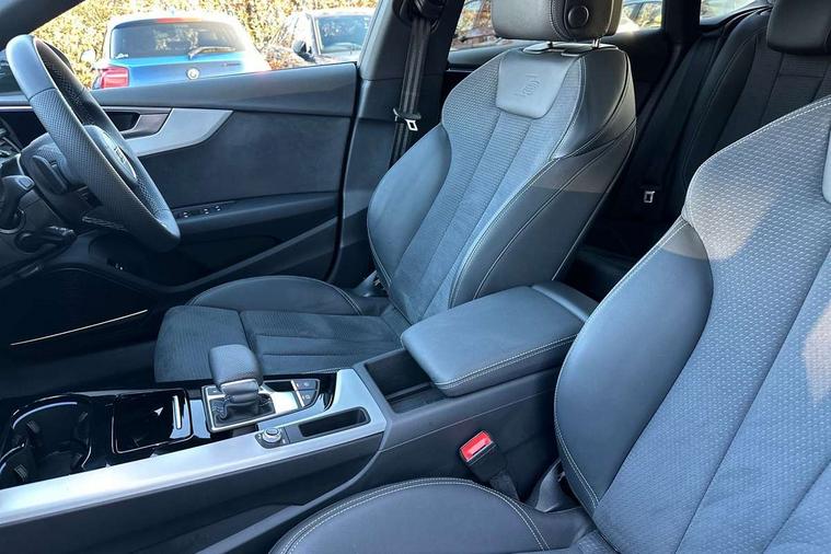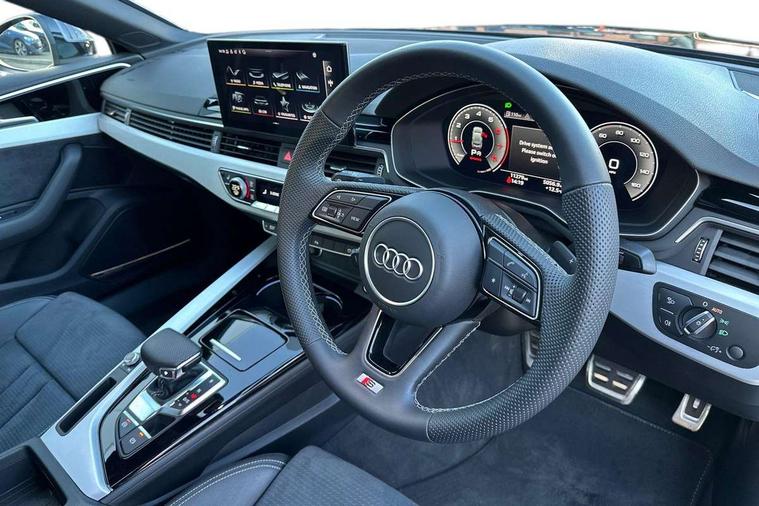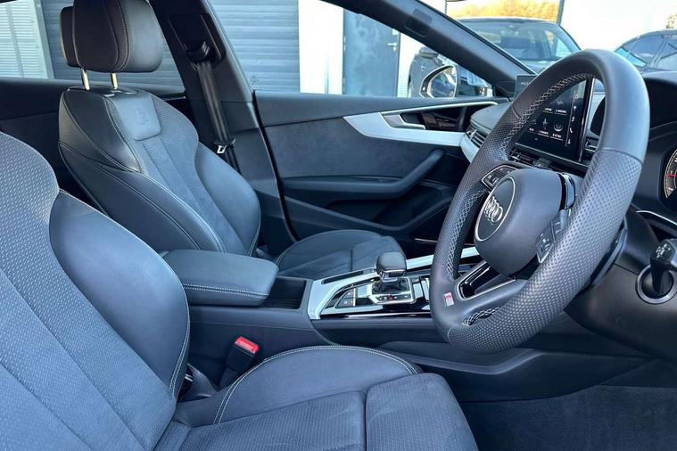 Audi connect safety and service (e-call), Audi drive select (Auto, Comfort, Dynamic, Efficiency and Individual), Audi smartphone interface, Audi virtual cockpit - 12.3" full colour digital instrument cluster, vehicle/engine speed, Radio/media information+Driver assistance systems, Automatic start-stop system with coasting functionality and efficiency programme, Bluetooth interface, Camera based traffic sign recognition, Electro-mechanical power steering, Email, calendar and text messages displayed via MMI, Front and rear parking sensors, Lane departure warning, MMI nav+ with MMI touch - 10.1" high resolution MMI display, touch sensitive, 3D map, route/country info, dynamic route guide, personal route assist, Power operated tailgate, Rear view camera, Service interval indicator, Voice control system, 54 litre fuel tank, Sports suspension lowered by 23mm, 8 passive loudspeakers, CD player, DAB digital radio reception, Two additional USB ports for rear passenger in rear centre console, Two SDXC card slots, Auto dimming door mirrors, Auto dimming rear view mirror, Body colour bumpers, Body colour door handles, Body colour front spoiler lip, Body colour side sill trim, Body coloured door mirrors, Electric adjustable heated door mirrors, Electric folding door mirrors, Electric front windows, Front fog lights, Honeycomb structure radiator grille in grained matt black, Kerb-view function for passenger side, LED headlights and rear lights with LED daytime running lights, LED side indicator lights integrated into door mirrors, LED third brake light, Matt aluminium silver tailpipe trim, Privacy glass, Rain and light sensors, Rear side wing doors, Rear wiper, S line badges on front wings, S line front and rear bumpers with side skirts, S Line rear diffuser in matt anthracite black with trim strip in matt aluminium silver, Side air inlets in grained matt black with matt aluminium silver inlay, Variable front intermittent wipers, Windscreen with acoustic glazing, 3 seat bench in 2nd row, 3 spoke high multifunction leather sport steering wheel with paddle shfit and S badging perforated leather grips, 4 way electric lumbar support for driver and front passenger, 40/20/40 split folding 3 seater rear bench seat, Adjustable steering column, Black carpets, Black cloth headlining, Black perforated leather gearknob, Contrast stitching on seats, steering wheel and gear lever gaiter, Deluxe 3 zone electronic climate control, Front centre armrest, Front head restraints, Front/rear floor mats, Heated front seats, Illuminated front door sill trim with S logo, ISOFIX child seat mounting and top tether, Luggage compartment mat, Manual seat adjustment, Rear centre armrest, Rear headrests, Single front passenger seat, Stainless steel pedals and footrest, Sunvisors with vanity mirrors, LED interior light pack - A5/RS5, 3x3 point rear seatbelts, 6 airbags - Driver, front passenger, curtain and side airbags, Attention and drowsiness assist, Electromechanical parking brake, Electronic Stabilisation Control (ESC) including ABS, ASR and EDL, Front passenger airbag deactivation, Height adjustable front seatbelts, Hill hold assist, Manual child lock in rear doors, Multi collision brake assist, Pop-up bonnet for pedestrian protection, Pre sense city, Seatbelt monitoring, Tyre pressure warning, Variable restraint system, Warning triangle and first aid kit, Anti theft alarm system, Anti theft wheel bolts, Immobiliser, Keyless Go, Remote central locking, Matt brushed aluminium inlays, Tool kit, Tyre repair kit,