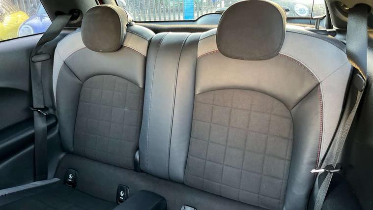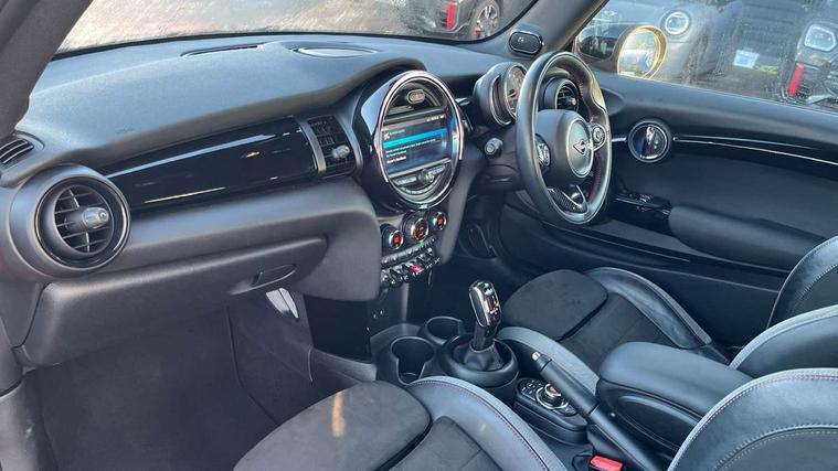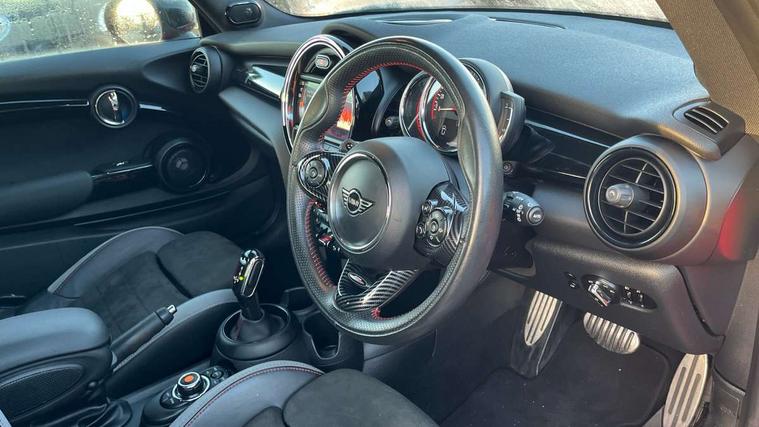 Automatic start/stop function with brake energy recuperation, Compatible mobile phone bluetooth with audio streaming, Electro-mechanical speed dependant steering assistance, Instrument cluster, MINI Driving Modes - centre toggle switch to control driving setting (sport, mid and green), Mini E-call, MINI TeleServices, On board computer, Service interval indicator, Double Vanos system, Eight speed steptronic sport transmission, with gearshift paddles, Fully variable valve control, Gear change indicator display, High precision injection, Performance Control, 6.5" touchscreen with LED ring, FM tuner and DAB digital radio, Automatic headlight activation switch, Bonnet scoop, Chrome door handles, Chrome plated fuel cap, Dynamic brake lights, Electric front+rear windows, Heated rear window, Heated windscreen washer jets, John Cooper Works - aerodynamic kit (front and rear apron, spoiler), front and rear sport bumpers and part-painted side sills with door sill finishers, John Cooper Works rear spoiler, LED headlight with closed ring and daytime driving lights, Metal look door sill finishers, Piano black border radiator grille with honeycomb structure in black matt and John Cooper Works logo with upper individual grille strut in chilli red, Piano black exterior, Rain sensor window wipers, Rear fog lights, Rear LED lights with union jack design, Rear window wiper, Side scuttle with MINI John Cooper Works logo in black high-gloss with red border, Sun/heat protection glass, Two central exhaust tailpipes with chrome finisher, White indicator lenses, 12V Accessory socket in centre console, 4 lashing eyes in luggage compartment, 60/40 split folding rear seat, Carbon Black colour line, knee roll and door armrests, Chrome interior highlights, Cupholders, Front and rear head restraints, Front and rear isofix with front passenger airbag deactivation, Glove compartment, Height and length steering column adjustment, Interior lighting with 12 basic colours selectable via toggle switch in roof, Internal chrome door handles, John Cooper Works Logo in seat, John Cooper Works sport leather steering wheel, Leather gearshift lever and handbrake gaiters, LED reading lights, vanity mirror lights, front foot well light and spotlight on front seats, Manual air conditioning, Mechanical seat adjustment, driver seat height adjust, forward/back and front seats backrest, Mini logo projection on floor from drivers exterior mirror, Multifunction steering wheel, Stainless steel pedals with rubber inserts, Storage compartments in doors, Sunvisors with vanity mirrors, Tool kit, 17" front sport brake with 4 piston fixed calliper, 3 point seatbelts on all four seats, 6 Airbags - front, side, head and seat belt tensioners, Anti-lock braking system (ABS), DSC - Dynamic Stability Control, Front and rear disc brakes, Hill start assist, Red brake callipers with John Cooper Works logo, Two tone horn, Tyre pressure monitoring system, Alarm system with tilt sensor, monitoring doors, bonnet interior and tailgate, Electronic vehicle immobiliser, Start/stop toggle with keyless go,
