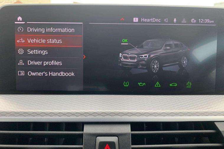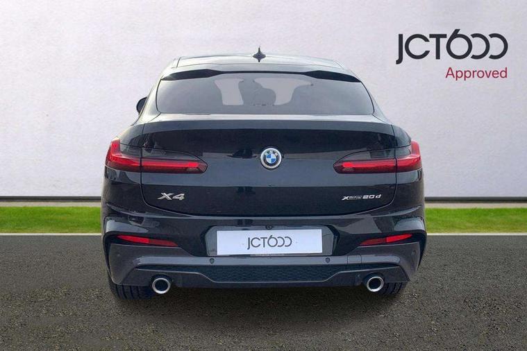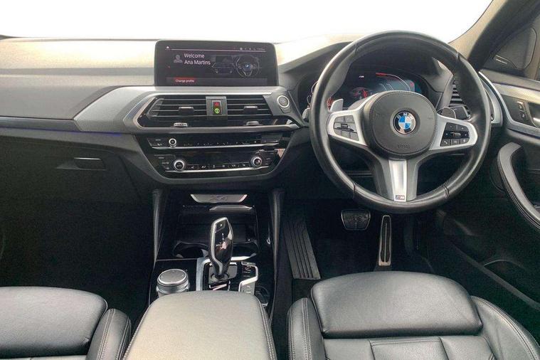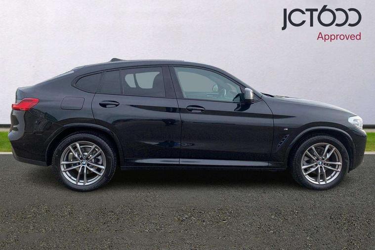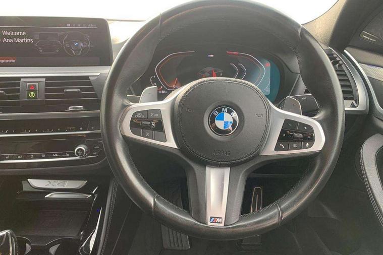 Active Guard incl speed limiting and lane departure functions with auto steering, and front collision warning with brake intervention, Attentiveness assist, Auto start-stop, Automatic tailgate operation, BMW Live Cockpit Professional with 12.3" instrument display with Intelligent Voice Assistant, BMW Online services, BMW professional navigation with 10.25" touch display, BMW remote services, BMW Teleservices, Brake pad wear indicator in front and rear, Check Control warning system for monitoring of lights and door/luggage compartment open warning, Condition based service, Electronic Power Steering (EPS), Exterior temperature gauge, iDrive Controller with 8 favourite buttons, Instrument cluster with speedometer with mph readout, tachometer, fuel gauge and oil temperature gauge, Lights on warning by audio warning signal when ignition is switched off, On board computer, Optimum shift indicator, Personal Profile, Run flat indicator, Service interval indicator, Diesel particulate filter, Drive performance control with ECO PRO comfort + sport mode, Five link rear suspension, Larger capacity fuel tank, M sport suspension, Performance Control, BMW professional radio/CD/MP3, DAB Digital radio, Acoustic glass, Automatically dimming electrochromatic rear view mirror, Black finish on B pillars, Body colour door handles, Body colour mirror caps, Body colour roof mouldings, Body coloured bumpers, Chrome kidney grille with black vertical slats, Direction indicator, side repeaters, integrated in exterior mirrors, Dynamic brake lights, Exterior mirrors - electrically folding with anti-dazzle, Fingertip control / anti-trap function on electric window, Front and rear bumper system, Front and rear electric windows, Full LED L shape 3D tailights, Green tinted heat insulating glass, Heated windscreen washer jets, High gloss black door sill finishers, High gloss shadow line exterior trim, Interior rear view electrochromatic mirror with automatic anti dazzle function, LED daytime running lights, LED fog lights, LED High level third brake light, LED Indicators, Lightweight engineering, M aerodynamic bodystyling, M designation side exterior badges, M Exhaust tailpipes - Quad, round, split left and right with high gloss black finisher 90mm, Model designation, Rain sensor including auto headlights activation, Satin aluminium exterior trim, Shark fin antenna, Visible VIN plate, Welcome light carpet, Windscreen wipers with adjustable interval, 12V Accessory socket in centre console, 3 zone automatic air conditioning, Ambient lighting, Anthracite headlining, Cupholders in centre console, Front and rear bottle holders integrated into door trim storage compartments, Front and rear door armrests, Front and rear side armrests integrated into door trim, Front centre armrest with storage compartment, Front cupholders x 2, Front sports seats, Front/rear courtesy lights with soft on/off dimming, Front/rear reading lights, Gearshift paddles on steering wheel, Height adjustable front/rear head restraints, Interior lighting - front centre over interior mirror with soft light, rear centre and front and rear footwell lighting, Leather gear knob, Luggage compartment lighting, M Sport multifunction leather steering wheel, Reach + rake adjustable steering column, Rear centre armrest with 2 cupholders, Removable rear parcel shelf, Storage compartment in rear centre console, front and rear door trims and under luggage compartment, Storage pockets - front doors, Sunvisors with vanity mirrors and ticket pocket, Three rear headrests, Through loading system with 40/20/40 split folding rear seat, Toolkit located in luggage compartment, Connected Package Professional - X4, 3 rear seatbelts, ABS/EBD, ADB - Automatic Differential Brake, Automatic door lock when driving away, Automatic Stability Control (ASC), Battery safety cut-off, BMW emergency call, Brake drying, Brake energy regeneration, Braking pre-tensioning, Child proof locking system in rear door, Child seat ISOFIX attachment rear outer seats, Cornering brake control (CBC), Crash Sensor - activation of central locking release, hazard warning light and interior lighting, Deactivation of fuel pump in the event of a crash, Driver/front passenger airbag, Driver/front passenger side airbags, DSC - Dynamic Stability Control, Dynamic brake control, Dynamic Traction Control - DTC, Electromechanical parking brake, Front and rear head airbags, Front and rear pre-tensioning and force limiting seatbelts, Front passenger airbag deactivation, Front seat belts warning, Hill descent control, Hill start assist, Side impact protection, Twin horns, Tyre pressure monitoring system, Ventilated front and rear disc brakes, Warning triangle and first aid kit, Central locking switch for all doors, fuel filler cap and luggage compartment, Incorrect fuel protection system, Remote control including two integrated key - one button for open/close all lockable content, windows and separate button for open luggage compartment, Remote control Thatcham category 1 alarm, Start/stop button with comfort go keyless engine start and auto start stop deactivation button, Reduced rolling resistance tyres,