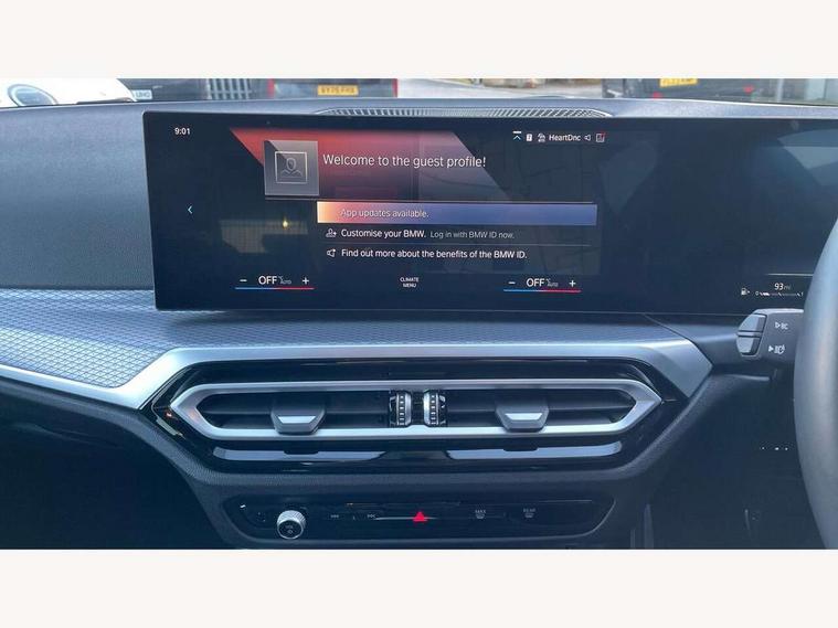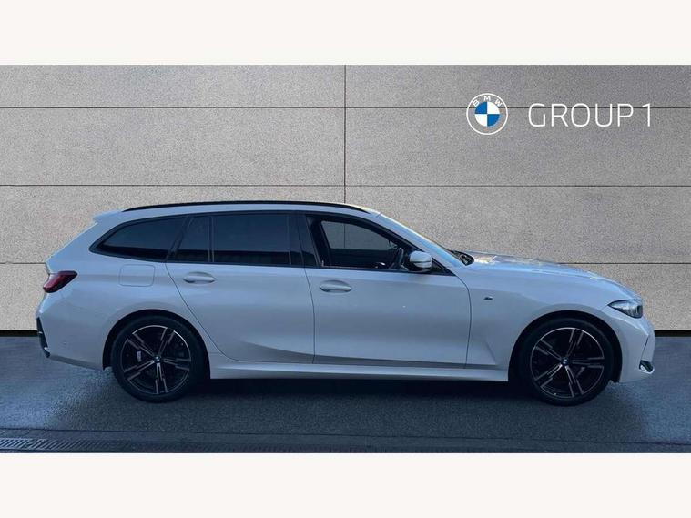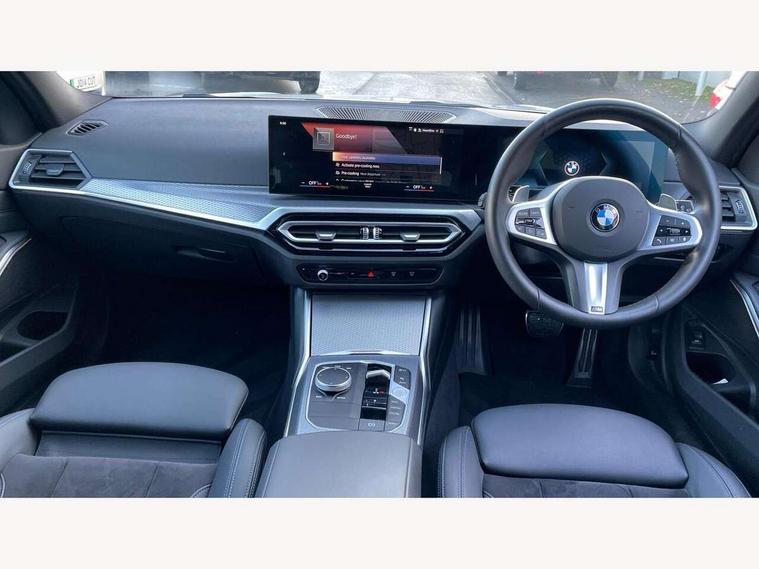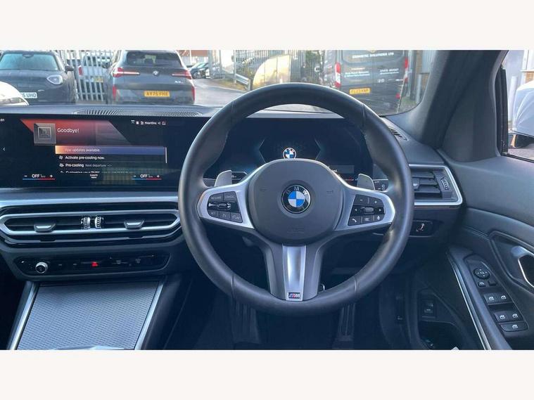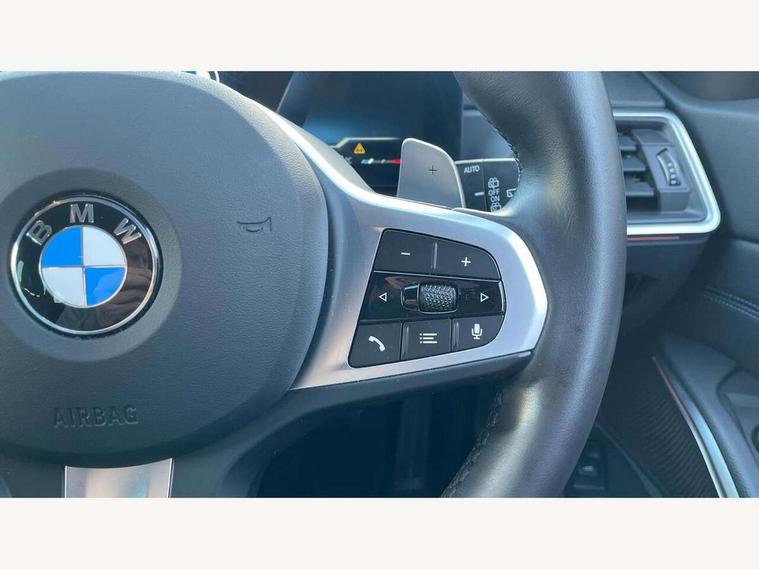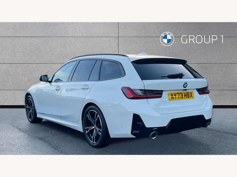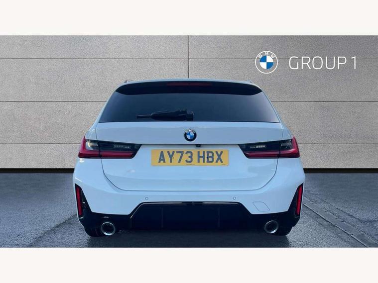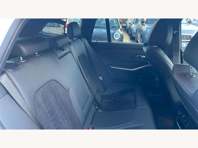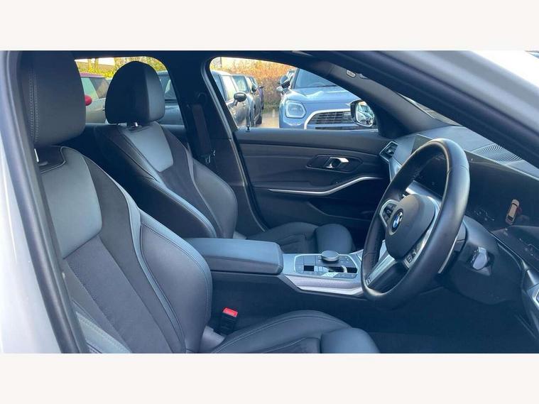 Active guard plus, Attentiveness assist, Automatic Start/stop button, BMW iDrive, BMW Teleservices, Condition based service, ConnectedDrive Services, Driving experience switch, Live cockpit plus with Navigation + 12.3" instrument display + 14.9" display, Intelligent voice assist, 2 USB, 4G LTE connect, Oil sensor for level and grade, Preparation for driver assistance, Shifting point display, Variable sport steering, Double joint spring strut front axle, Fuel tank breather system, M sport suspension, Sport automatic transmission with steering-wheel mounted gearshift paddles and launch control, DAB tuner, 3rd brake light, Acoustic glazing, Automatic headlight beam throw control with load dependent regulating reaction, dynamic compensation of braking dive and acceleration squat, BMW emblem, engine compartment lid and tailgate, Body colour roof fin, Door sill strips, Electric windows - front and rear, with open/close fingertip control, anti-trap facility and comfort closing, Follow me home headlight function, Front and rear bumper system with replaceable deformation elements, Front apron plastic in body colour, Fuel filler flap - right rear in body colour, Heated washer jets, High gloss shadow line exterior trim, High gloss shadow line roof rails, Illuminated bow type door handles in body colour drivers side with door lock, Interior rear view electrochromatic mirror with automatic anti dazzle function, LED headlights with LED daytime running lights and LED turn indicator, LED rear lights, Licence plate panel integrated into front bumper and tailgate, Matt black B-pillar finsher, Matt black window recess cover, Model designation on right side of tailgate, One piece front bumper cover including towing eye cover in body colour, Rain sensor with automatic headlight activation, Rear side wing doors, Rear wiper, Reversing lights, Side frame decorative moulding black matt, Visible exhaust tailpipe finisher, Welcome lights in interior and door handle area, 12V power socket in front storage compartment, 2 front cupholder in centre console with clamping elements and matt black inlay, 3 seat bench in 2nd row, 3 zone automatic air conditioning, 40:20:40 split folding rear seat with loading system, Ambient inside door handle light, Ambient light design projected onto the left and right entering and exiting area, Ambient lighting front and rear with 9 selectable colours, Ambient storage compartment lighting in the centre console, Anthracite headlining, Armrest integrated in front and rear door trim + front centre console armrest, BMW ID, Contour lighting in instrument panel and door trim panel, Cruise control operation in steering wheel, Driver backrest width adjustment, Folding rear centre armrest with 2 cupholders, Front and rear ambient footwell lighting, Front and rear door exit lighting (left / right), Front and rear headrests, Front and rear reading lights, Front and rear velour floor mats, Front sport seats, Heated front seats, Height adjustable mechanically and infinitely variable steering column, Illuminated armrest storage compartment, Illuminated glove compartment, Illuminated luggage compartment, Lashing eyelets in luggage compartment, M Sport multifunction leather steering wheel, Make-up mirror lights, Single front passenger seat, Standard seat for driver and passenger with manual adjustment, Sunvisors with vanity mirrors and ticket pocket, Toolkit located in luggage compartment, Connected pack professional - 3 Series Saloon/Touring, Interior and exterior mirror pack - 3 Series Touring/Saloon, M Aerodynamics package - 3 Series Saloon/Touring, M sport exterior styling pack - 3 Series Saloon/Touring, Storage compartment pack - 3 Series Saloon/Touring, 3x3 point rear seatbelts, BMW emergency call, Child locks on rear doors, Crash sensor activating of airbags, Unlocking doors, hazard warning lights, interior light, safety battery terminal, Driver and front passenger with seat occupancy detection for driver's and passenger side, Driver and passenger side airbags, body protection at side and airbags deploy from seat backrests, Dynamic brake control, Dynamic stability control + (DSC+) - Anti-lock Braking System (ABS) with brake assist and cornering brake control + Automatic Stability Control (ASC), Dynamic Traction Control - DTC, Electric parking brake including automatic hold function and automatic release of the parking brake when driving off, Electronic differential lock control (EDLC), Head airbags in 1st and 2nd row, head protection at side, curtain airbags open from headliner above 1st and 2nd row, Plastic fuel tank, Side impact protection, Tyre pressure monitoring with three level warning strategy, Ventilated front and rear disc brakes, Warning triangle and first aid kit, Alarm system, Centre lock switch, Closing system with central locking, Electronic vehicle immobiliser,