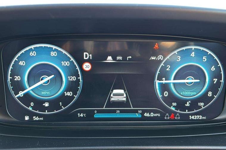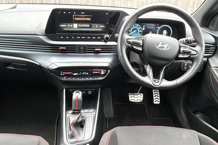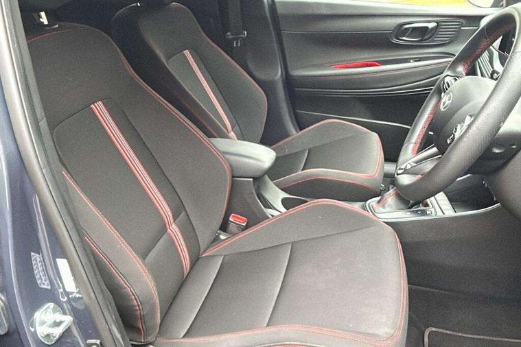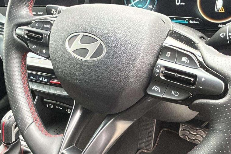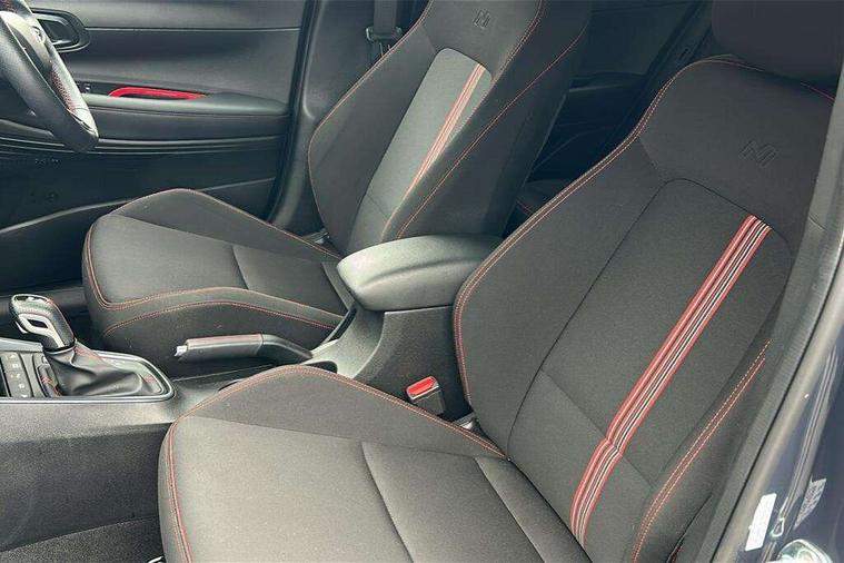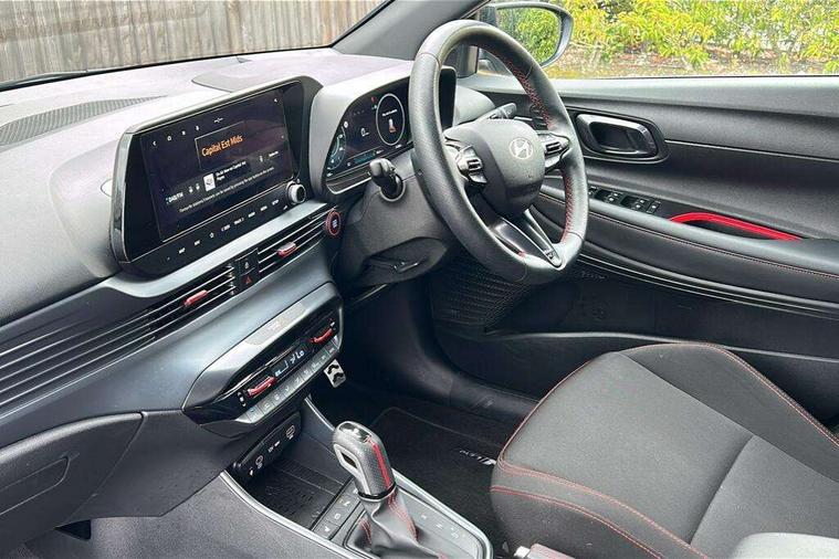 10.25" Touchscreen satellite navigation including mapcare and live services, 2nd Gen eCall, 8" Touchscreen DAB Radio with android auto and apple carplay, Apple car play/Android Auto, Driver's supervision instrument cluster with 10.25" LCD display, E-call, Forward collision assist with car, pedestrian and cycle detection, Front parking sensor, Intelligent speed assist, Lane follow assist, Lane keep assist, MAP OTA updates, PAS, Rear parking sensor, Rear view camera with dynamic guidelines, Wireless charging pad, Bose premium sound system, USB C and USB A ports in front, USB C Port in rear, Automatic defog system for front windscreen, Automatic dimming rear view mirror, Automatic headlights with dusk sensor, Automatic windscreen wipers, Body colour door handles, Electric front and rear windows, Front fog lights, Heated door mirrors with electric adjustment and power folding function, High beam assist, LED daytime running lights, LED Headlights, LED positioning lights, LED taillights, Privacy glass - Rear windows and tailgate, Rain sensor, Rear roof spoiler with integrated LED brake light, Rear side wing doors, Rear wiper, Repositioned flat metal hyundai emblem, Shark fin antenna, Windscreen with acoustic film, 3 seat bench in 2nd row, Adjustable head restraints, Air conditioning climate control, Automatic de-fog system for front windscreen, Cloth upholstery, Driver and passenger illuminated vanity mirrors with driver ticket holder, Floor mats, Front cup holder, Heated front seats, Heated steering wheel, Height adjustable driver's seat, Isofix, Leather wrapped steering wheel and gear knob, Luggage hooks, Multi colour ambient lighting, Rear Seats - Split Folding (60/40), Single front passenger seat, Sport metal pedals, Steering wheel remote controls, Tilt and telescopic steering wheel adjustment, 3x3 point rear seatbelts, Anti-lock brake system (ABS), Autonomous emergency braking, Child locks on rear doors, Driver and front passenger airbags, Rear seat alert, Side and Curtain airbags, Tyre pressure monitoring system, Immobiliser, Smart key with keyless entry and engine start/stop button, 17" N Line black alloy wheels, Tyre repair kit,