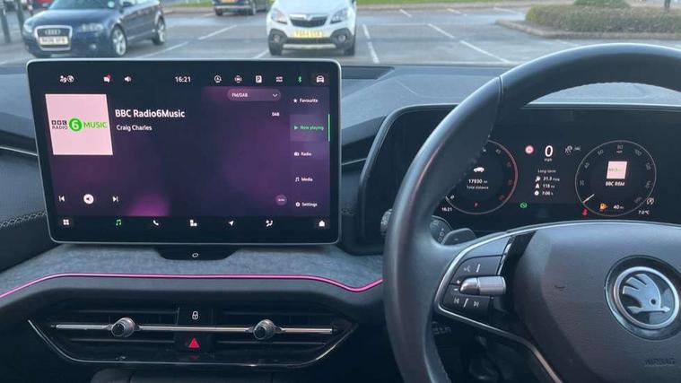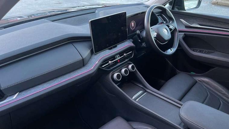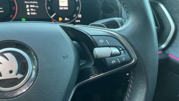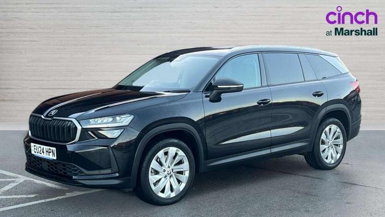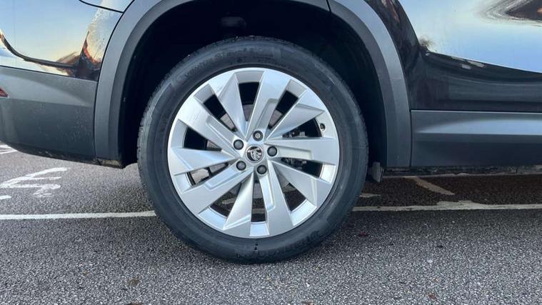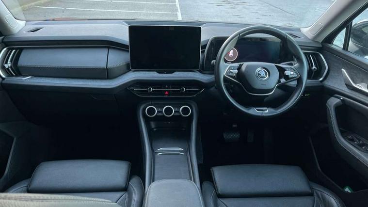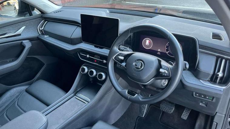 13" satellite navigation touchscreen display, Blind spot detection with door exit warning, Bluetooth system, Drive mode selector, Driver alert with fatigue sensor, Driver drowsiness alert system, Dry display cleaner, e call+, Front cross traffic assist, Lane assist, PAS, Rear traffic assist, Tailgate unlocking from outside, Traffic sign recognition, USB C Port x 2 in front centre console, Virtual Cockpit - 10.25" digital display, Voice control system, Wireless charging for two smartphones (15W) with cooling function, Wireless SmartLink for Apple CarPlay and Android Auto, Stop/start function, 2x USB-C in the rear, DAB Digital radio, Aero front windscreen wipers with intermittent function, Auto dimming rear view mirror, Black wheel arch surrounds, Body colour bumpers, Body colour door mirrors and handles, Cornering light and poor weather light, Electric folding /adjustable/separted heated/folding door mirrors, auto dimming with boarding sports and memory function, Electric front and rear windows, Heat insulating glass in windshield, Heated rear window, Ice scraper in fuel tank cap, Invisible tailpipe, LED daytime running lights, LED rear fog light, LED third brake light in rear spoiler, Light assistant with automatic headlight control and coming home feature, Logo projection in door mirrors, Privacy glass, Rear side wing doors, Rear spoiler, Rear window wiper, Safety reflectors on front and rear doors, Window control switches with black trim, Windscreen wipers with rain sensor, Without engine designation, 1.5l bottle holder points in all door, 12V socket in boot, 1x centre rear reading light, 2 seat bench in 3rd row, 3 configurable smart dials with 32mm coloured display, 3 seat bench in 2nd row, 4 foldable roof handles with rear coat hooks, Automatic gear selector on steering wheel, Chrome interior door handles, Driver/front passenger reading lights, Fabric headlining, Fixed bench 40:60:40 split folding backrests, Front and rear floor mats, Front centre armrest with jumbo box storage compartment, cup holder and 12V socket, Front courtesy lights, Height adjustable front headrests, Interior ambient lighting, Isofix child seat fittings in outer rear seats and front passenger with top tether, Manually adjustable steering column, Pollen filter, Rear centre armrest with cupholders, Rear seat boot backrest release, Retractable luggage compartment cover, Single front passenger seat, Sliding trunk cover, Small Bags on the inner sides of the front backrests, Storage pocket including mobile phone pockets on the backs of the front seats, Sunvisors with illuminated vanity mirrors, Three rear height adjustable headrests, Ticket holder on A Pillar, Tri zone climate control, Umbrella in door panel x1 made from sustainable materials, Upper and lower glovebox with card holder and coin compartment, USB C port by rear view mirror for charging only (15W), Exterior styling package - Kodiaq, Auto door release and activation of warning lights in the event of an accident, Driver and front passenger airbag with knee airbag and front passenger airbag deactivation, Electric child locks, Electronic parking brake, ESC (incl. ABS+EMD+MSR+ASR+EDL+HBA+DSR+RBS+ESBS+MCB+TSA+XDS), Front assist with braking reaction to vehicles, pedestrians and cyclists, Front disc brakes, Fuel cut off safety device, Height adjustable front 3 point seatbelts + pretensioners, Hill hold control, Junction assist with automatic emergency braking, Rear disc brakes, Safety vest holder in door, Seat belt reminder for all seats, Three point rear seat belts, Two tone horn, Tyre pressure monitor, Anti-theft wheel bolts, Immobiliser, Remote central locking with 2 keys, Black/grey fabric with green cross stitching on dashboard, Swan feathers grey dashboard and door decorative inserts, Breakdown kit,