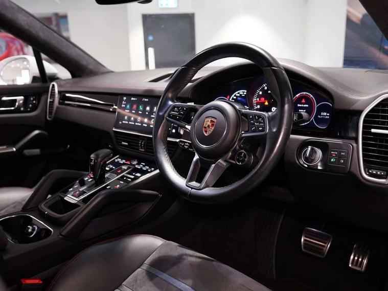 Android Auto, Apple car play, Auto start/stop function and coasting, Brake pad wear indicator, Central analogue rev counter with black dial face and GTS logo, Driver personalisation for climate, audio and communication, assistance systems and other customisable car systems, E-call, High resolution 12.3-inch touchscreen display in full HD resolution, Individual mode for individual selection of vehicle drive settings, Instrument cluster with two high-resolution displays, Mobile phone preparation with Bluetooth interface for telephone and music, Porsche Communication Management (PCM) including online navigation module, mobile phone preparation, audio interfaces and voice control system, Power steering plus, Power tailgate, Vehicle electrical system recuperation, Warn and brake assist including pedestrian protection, 8 Speed Tiptronic S transmission with auto Start-Stop and coasting function, 90 litre fuel tank, Adaptive cylinder control, Aluminium cylinder heads and engine block, Direct fuel injection (DFI) with central injector position, Front and rear aluminium multi link axles, Gasoline particulate filter, Panoramic roof with fixed glass panel, Porsche Torque Vectoring Plus (PTV Plus), Sport mode, Turbocharger with twin scroll turbine, VarioCam, Water cooled with thermal management, AM radio, Digital radio, Two USB charge ports in rear compartment, Two USB charging and connectivity ports in the front centre console storage compartment, Active air intake flaps, Automatic headlight activation including welcome home functionality, Bumper system with high strength cross members and two deformation elements + Two receptacles with screw threads towing lug + onboard tool kit, Door lower cladding trim in exterior colour, Electric windows + anti trap protection + one touch open/close drivers side, Electrically adjustable, folding and heated exterior mirrors, aspherical on drivers side including courtesy lights, Exclusive tinted LED tail lights with three dimensional lighting graphic including light strip and integrated four point brake lights, Extensive aerodynamic underbody protection, Exterior colour door side trim, Four point signature LED daytime running lights, Front end with integrated air intakes and airblades for the side air intakes, Front light modules including position lights and direction indicators in LED light guide technology, Front windscreen wipers with two speeds, intermittent wipe and rain sensor, Gloss black side window trims, Heated rear window with automatic switch off, LED High level third brake light integrated into roof spoiler, Porsche active aerodynamics (PAA) with adaptive roof spoiler, Porsche logo and cayenne GTS model designation on tailgate in matt black, Porsche logo integrated into rear taillight strip, PORSCHE' lettering integrated in tailgate strip, Preparation for the roof transport system, Rear apron lower cladding painted in exterior colour, Rear side wing doors, Rear window wiper with intermittent function and washer jet, 2 seat bench in 2nd row, Alcantara roof lining, B-pillar clothes hooks on driver and passenger's side, Charge air cooling, Double sun visors for driver and front passenger, Driver/passenger sunvisors and vanity mirrors, Elevated centre console with handles, Front and rear bottle holders in door panels, Front head restraints, GTS logo on door sills front, left and right in black, GTS logo on front door lower trim in black, GTS model logo on headrests front and rear in conjuction with GTS sports seat interior, GTS sports design in bench rear seat with 2 comfort outer seat, third centre seat + 2 way headrest on outer seat, manual fore/aft, backrest angle adj, Height adjustable rear headrests, Isofix fastening system for child seats on outer rear seats, LED interior light with switchoff delay function, footwell + glove compartment light, ashtray + ignition lock illumination, front + rear reading light, Manual height adjust for driver and front passenger seat belt, Particle/pollen filter with active carbon filter, Rear seat split folding design 40:20:40, Fold out centre armrest with integrated cup holder, manual fore/after adjust and backrest angle adjust, Rigid integrated and removable parcel shelf, Sideskirts in black plastic, Single front passenger seat, Stainless steel pedals, Storage compartments - Cooled glove compartment, front centre console, door and map pockets on front seat backrests + side luggage compartment, Three 12V power sockets - front below the glove compartment, centre console and at side of luggage compartment, Two integrated cup holders in front and rear with variable diameter, Sport design package - Cayenne, 3 point automatic seatbelts with front and outer rear seats pretensioners and front force limiter, 4 piston aluminium monobloc fixed caliper brakes at rear and internally vented brake discs, 6-piston aluminium monobloc fixed caliper brakes at front, internally vented brake discs, Active bonnet, Auto hold function, Brake discs with diameter 390mm at front 358mm at rear, Curtain airbags along roof frame and side glazing from the A-pillar to the C-pillar, Distance warning, Electronic parking brake, Front passenger airbag deactivation function for front seat mounting of child seat, Front side airbags integrated into seat, Full size driver and front passenger airbags, Knee driver and passenger airbags, Manual child lock in rear doors, Mounting points on passenger seat for ISOFIX child seat mounting system, Multi-Collision braking, Porsche hill control (PHC), PTM Porsche Traction Management active all-wheel drive with an electronically variable, map-controlled multi-plate clutch, ABD and anti-slip regulation, Rollover detection for activation of curtain airbags and seat belt pretensioners, Seat belt warning system for driver and front passenger and rear seat system, Side impact protection in doors, Tyre pressure monitoring system, Vehicle stability system, Porsche stability management (PSM) including ABS, ASR, ABD, MSR and