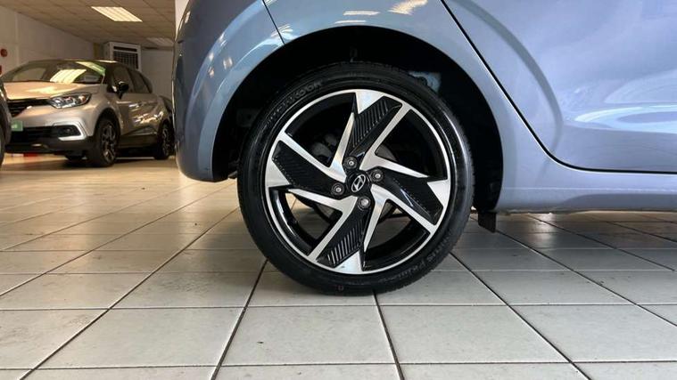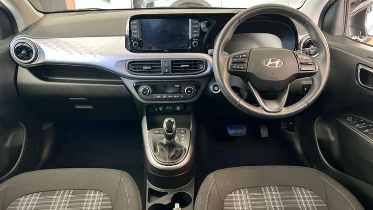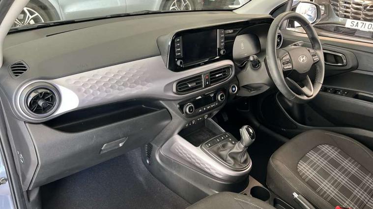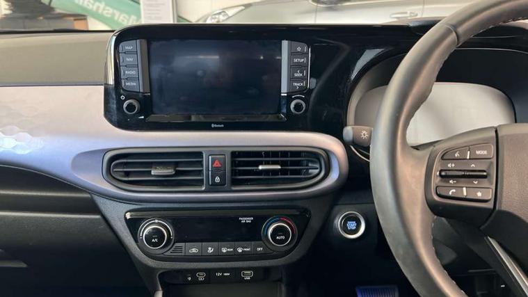Apple car play/Android Auto, Bluelink mobile remote connectivity, Bluetooth connectivity with voice recognition, Cruise control, Driver attention alert system, eCall emergency call system, Forward Collision-Avoidance Assist (FCA) - Pedestrian/Cyclist, Front USB-C charging and USB-A data, Full-width 4.2" LCD instrument cluster, Intelligent speed limit assist, Lane departure warning system with lane keep assist - LKAS, Lane follow assist, PAS, Rear parking sensors, Rear view camera with guidelines, Roadside assistance, Start/Stop function, Tailgate, Trip computer, Wireless charging pad, 2 front/2 rear speakers, Rear USB-C device charger, Steering wheel audio, phone and cruise controls, 1 speed non intermittent rear windscreen wiper, Black finish on B pillars, Body colour door handles, Body coloured bumpers, Body coloured door mirrors, Electric folding door mirrors, Electric front windows, Electric rear windows, Electrically adjustable and heated door mirrors, Flat metal emblem, Front fog lights, Front grille in glossy black, Front intermittent wipers, Halogen bi-function headlights, Headlights inner with Black Blade design, Heated rear window, High beam assist, Indicator light on door mirrors, LED DRLs diamond mesh design, Privacy glass - Rear windows and tailgate, Rear roof spoiler with integrated LED brake light, Rear side wing doors, 12v power outlet - front, 3 seat bench in 2nd row, 60/40 split folding flat to floor rear seats, Air conditioning, Auto light control, Bottle holders in front/rear doors + front centre console, Cabin and luggage compartment interior lighting, Cloth upholstery, Driver + passenger vanity mirrors, Driver's seat height adjustment, Driver/passenger sunvisors with ticket holders, Floor mats, Front door pockets, Front Head Restraints - Vertical and Horizontal Adjustment, Front LED blue mood lighting, Glove compartment, Heated front seats, Heated steering wheel, Height adjustable steering column, Isofix child seat preparation, Leather multifunction steering wheel, Rear door pockets, Single front passenger seat, Vertical adjustment rear head restraints, 3x3 point rear seatbelts, Airbags - front, front side and curtain airbags, Anti-lock brake system (ABS), Autonomous emergency braking (AEB) with forward collision warning system, Brake assist function, Childproof rear door locks, Electronic stability control, Front and rear seatbelt reminder, Front seatbelt pretensioners, Hill start assist control (HAC), Passenger airbag deactivate switch, Traction control, Tyre pressure monitoring system, Immobiliser, Perimeter alarm, Rear occupant alert, Remote central locking, Second remote key, Smart key with motion sensor, Speed sensitive auto door locking, 16" alloy wheels, Tyre repair kit,