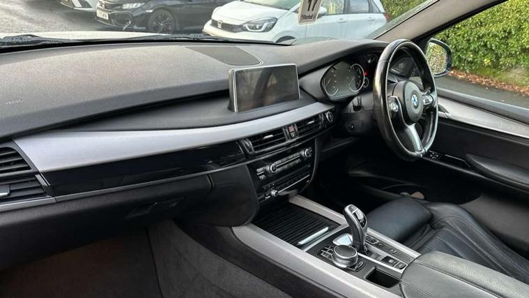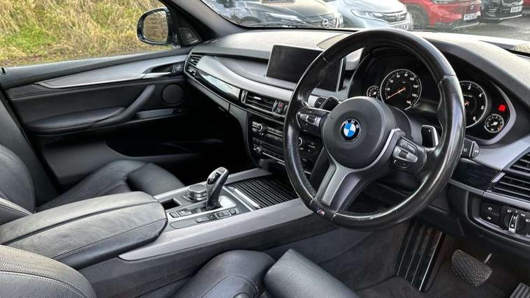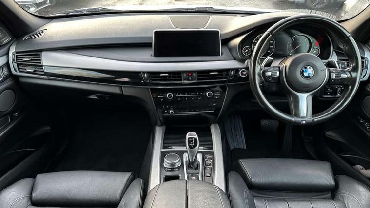 20GB Hard drive, 6.5" colour display screen, BMW online + Apps interface, BMW remote services, BMW Teleservices, Brake force display, Check control system, iDrive controller and display with 10.2" colour display monitor, Lights on warning, On board computer, Outside temperature gauge, Park distance control, Professional multimedia navigation system, Real time traffic information, Remote tailgate release, Service interval indicator, Servotronic PAS, Stop/start button, Voice control system, Adaptive M suspension, Diesel particulate filter, Sport automatic transmission, Auxiliary point for auxiliary devices, BMW professional twin tuner radio with single CD player and MP3 CD playback facility, DAB Digital radio, Auto dimming rear view mirror, Auto upper tailgate release, Body colour bumpers, Body colour door handles, Body colour door mirrors, Chrome exhaust tailpipes, Clear indicator lenses, Door mirror integrated indicators, Double kidney grille with chrome surround and black slats, Downlights in exterior door handles, Electric folding/heated door mirrors + electrochromic on drivers side, Electric front/rear windows with anti-trap, Electric headlight adjustment, Follow me home headlights, Green tinted glass, Headlight washer jets, Heat insulated glass, Heated washer nozzles, Individual door sill finishers, Intermittent rear wash/wipe, M aerodynamic body kit, Rain sensor with auto light activation system, Two piece tailgate, 12V accessory power point in centre console, 12V socket in luggage compartment, 2 x 12V socket in rear centre console, 40:20:40 split folding rear seats, Ambient interior lighting, Anthracite Velour floor mats, Boot lashing points, Electric front seats + driver memory, Front and rear cupholders, Front armrest with storage bin, Front/rear courtesy lights with soft on/off dimming, Front/rear reading lights, Gearshift paddles on steering wheel, Heated front seats, Height adj rear head restraints, Illuminated glovebox with lock, Isofix child seat preparation, LED footwell lights, Luggage compartment cover, M leather steering wheel, Reach + rake adjustable steering column, Securing rings in luggage compartment, Storage bins on all doors, Sunvisors with illuminated vanity mirrors, Tilt/height adjustable front head restraints, Toolkit located in luggage compartment, Extended storage pack - X5, 3 rear 3 point seatbelts, ABS, ADB - Automatic Differential Brake, Automatic Stability Control (ASC), BMW emergency call, Child locks on rear doors, Cornering brake control (CBC), Crash Sensor - activates hazard/interior lighting + unlocks doors, Driver/Front Passenger airbags, DSC - Dynamic Stability Control, Dynamic brake control, Dynamic Traction Control - DTC, Electronic brake force distribution, Electronic parking brake, Front and rear head airbags, Front passenger airbag deactivation, Front passenger seat occupancy sensor, Front side airbags, Height adjustable front seatbelts, Hill start assist, Pyrotechnically pre-tensioned front seatbelts, Tyre pressure monitor, Warning triangle and first aid kit, Locking wheel nuts, Remote central locking, Thatcham cat 1 remote alarm/immobiliser, Run flat tyres,