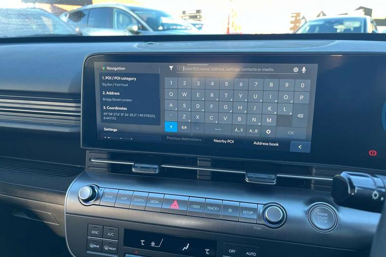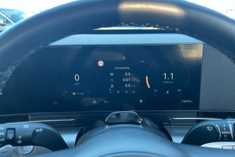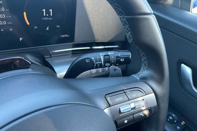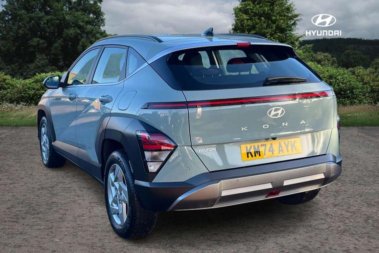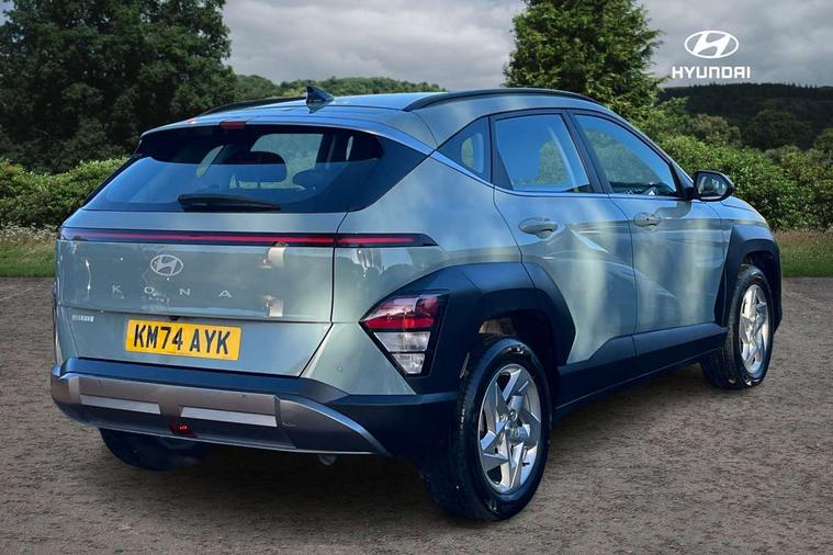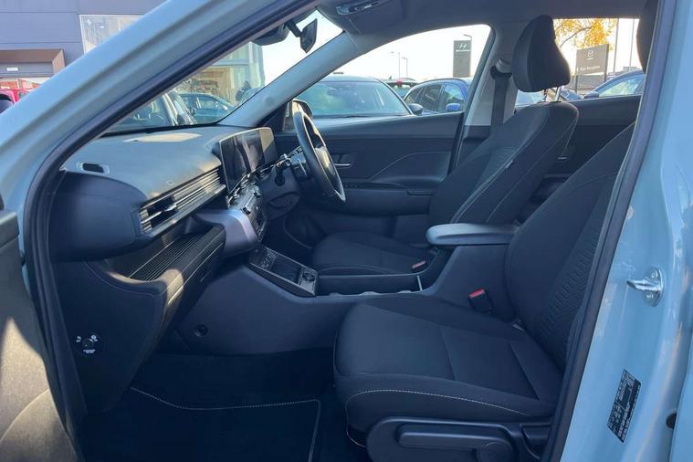 12.3" touchscreen centre console display satellite navigation with bluelink, live services and mapcare, Bluetooth connectivity with voice recognition, Digital clock, Driver status monitor (DSM), Driver supervision instrument cluster with 12.3" LCD display, eCall emergency call system, Feature on demand - Enabled, Forward collision avoidance assist (FCA 1.5) - Car, pededstrian, cycle and junction turning, Front parking sensor, HDA - Highway Drive Assist Level 1.5, Intelligent speed limit assist, Lane follow assist, Lane keep assist, Leading vehicle departure alert (LVDA), Parking system with rear camera and guidance system, PAS, Rear parking sensor, Roadside assistance, Smart cruise control with stop and go functionality, Windscreen washer fluid sensor and warning indicator, Wireless Smartphone Integration includes Apple CarPlay and Android auto, 2 front USB C and 2 rear USB C charging points, DAB Digital radio, Speakers - Front, rear and tweeters, Steering wheel audio, phone and cruise controls, Auto dimming rear view mirror, Automatic headlights with dusk sensor, Automatic windscreen wipers with rain sensor, Black painted wheel arch inserts, Body colour bumpers, Body colour exterior door handles, Body coloured door mirrors, Door mirror LED indicator lights, Electric front windows with anti-trap mechanism and one touch control, Electric rear windows, Electrically adjustable and heated door mirrors, Full LED MFR headlights, LED daytime running lights, LED upper and lower rear lights, Power folding door mirrors, Rear roof spoiler with integrated LED brake light, Rear side wing doors, Rear skid plate - silver, Rear wiper, Roof rails, Tinted glass in front and rear doors, Windscreen auto defog function, 12V power outlet in front console, 2 zone climate control, 3 seat bench in 2nd row, 60/40 split folding rear seat, Adjustable head restraints, Cloth upholstery, Driver and passenger front seat pockets, Driver's seat lumbar support, Driver/passenger manual seat height adjustment, Driver/passenger sunvisors and illuminated vanity mirrors, Floor mats, Height/reach adjustable steering column, Isofix rear child seat fastenings, Leather wrapped steering wheel, LED centre interior light, LED front interior light, Luggage compartment LED lighting, Luggage shelf, Metal paint effect interior door handles, Parcel shelf, Rear centre armrest with cupholders, Rear centre console with air vents, Shift by wire SBW, Single front passenger seat, Vertical adjustment rear head restraints, Trailer wiring package - Kona, Airbag - front, front side, curtain and centre front airbag, Anti-lock brake system (ABS), Childproof rear door locks, Downhill brake control, EBD + Brake Assist, Electric parking brake, Electronic stability control, Fasten seatbelt reminder, Fixed 3 point for second row centre passenger seatbelt, Front seatbelt pretensioners, Height adjustable front seatbelts, Hill start assist control (HAC), Passenger airbag deactivate switch, Rear seat alert, Traction control, Tyre pressure monitoring system, Alarm/immobiliser, Deadlocks, Folding key, Locking wheel nuts, Rear occupant alert, Remote central locking, Smart key with keyless entry and start/stop button, Five year annual vehicle health checks, 17" Alloy wheels, Temporary mobility kit (TMK),