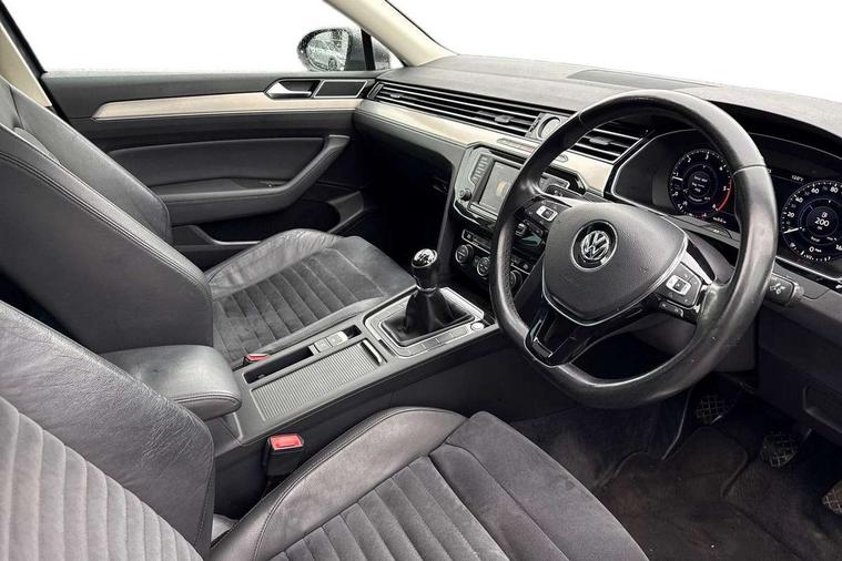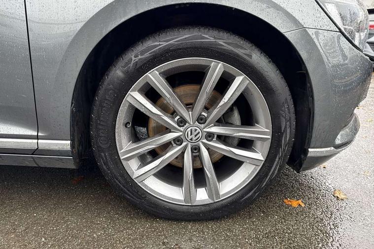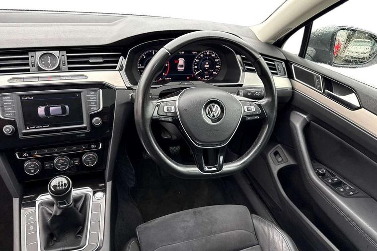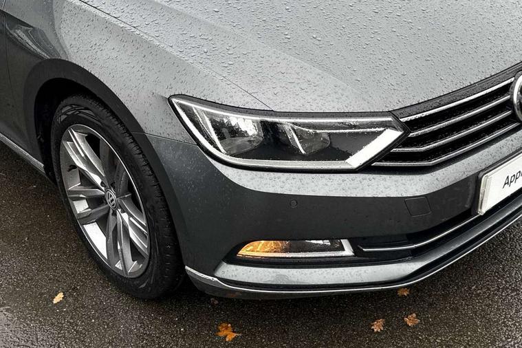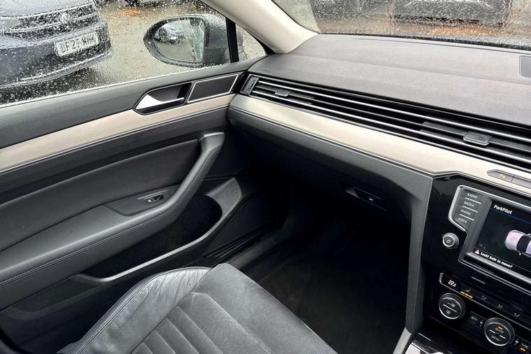 Adaptive cruise control, Analogue clock, Door/boot open warning light, Driver alert system, Driver profile selection, Exterior temperature gauge with frost alarm, Information display, Low washer fluid warning light, Multifunction computer, Remote boot release, Remote fuel flap release, Rev counter with fuel gauge, Service interval indicator, Speed limiter, Warning buzzer and light for front seatbelts unfastened, Diesel particulate filter, Auxiliary socket for external device, Composition media system with Radio/CD/MP3, DAB Digital radio, MDI with USB/iPod connection cables, SD card slot, Auto dimming driver's door mirror, Auto dimming rear view mirror, Automatic activation of hazard warning lights, Automatic headlights with dusk sensor, Body colour bumpers, Body colour door handles, Body coloured door mirrors, Chrome fog light surround, Chrome louvres in grille, Chrome side sills, Chrome side window surrounds, Chrome surround for air intake, Coming/leaving home lighting function, Electric front windows, Electric panoramic sunroof with sunblind, Electric rear windows, Electrically adjustable and heated door mirrors, Front fog lights with static cornering function, Gloss black finish on B pillar, Headlight range control, Heated rear window, Heated windscreen washer jets, LED rear lights, Rain sensor, Remote folding door mirrors and puddle lights, Trailer stability assist, Windscreen wipers/ intermittent wipe + 4 position delay, 12V Accessory socket in centre console, 12V socket in luggage compartment, 3 rear head restraints, 3 spoke multi-function leather steering wheel, 3 Zone electronic climate control with automatic air recirculation, 4 boot load lashing points, 60/40 split folding rear seat, Driver's cushion tilt adjust, Entry lights on doors, Front + rear carpet mats, Front and rear interior lighting with delay and dimming function, Front centre armrest with storage compartment, Front comfort seats, Front cupholders x2 with covers, Front door pocket bottle holders, Heated front seats, Height adjustable head restraints, Height/reach adjust steering wheel, Leather gearknob, Load through provision, Lockable, illuminated, cooled glovebox, Luggage compartment cover, removable, Luggage compartment lighting, Rear centre armrest with cupholder and storage, Storage compartment in driver's door, Storage compartment in passenger's door, Storage compartment in rear doors, Storage compartment in roof console, Storage pockets in backrests of front seats, Sunvisors with illuminated vanity mirrors, Variable boot floor, Ambient lighting pack - Passat, Mirror pack - Passat, 3 rear 3 point seatbelts, ABS, brake assist and EBD, Automatic post collision braking, Curtain airbags, Driver/Front Passenger airbags, Driver/Front passenger WOKS head restraints, Drivers knee airbag, Electronic parking brake with auto hold, ESP with EDL + ASR, First aid kit, Front assist including city emergency braking, Front side airbags, Height adjustable front 3 point seatbelts + pretensioners, Hill hold function, Manual passenger airbag deactivation function, Pre crash system, Rear seatbelt warning indicator, Rear side airbags, Warning triangle, Alarm with interior protection, Electronic engine immobiliser, Keyless Start, Remote central locking with 2 remote folding keys, Chrome air vent and instrument surround, White instrument dials, Full size alloy spare wheel,