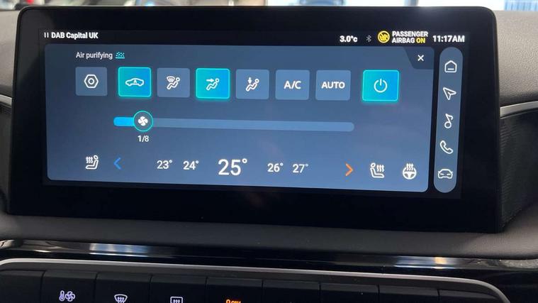 10.25" Colour touchscreen, 360 degree camera with rear sensor, 7" Driver display, Adaptive cruise control, Android Auto, Apple car play, Blind zone detection with lane change assist, Bluetooth connection, Driver attention alert system, E-call, Forward collision warning, Intelligent speed limit assist, Lane keep assist system (LAS) with Lane departure warning system (LDWS), PAS, Rear cross traffic alert, Reverse parking sensors, Satellite navigation with speed limit recognition, Traffic jam assist, Trip computer, 1 x USB port at rear for charging only, 6 speaker audio system, DAB audio, Radio, MP3 and AUX/USB, USB ports (2x front, 1x rear), Auto dimming rear view mirror, Automatic headlamps, Body colour bumpers, Body coloured door handles, Body coloured electrically adjustable heated door mirrors, Follow me home headlights, Front and rear electric windows with driver's one-touch up/down, Intelligent headlamp control, LED centre brake light, LED daytime running lights, LED projector headlights, Rain sensor wiper, Rear privacy glass, Rear side wing doors, Rear window defogger, Rear wiper, 12V socket, 3 seat bench in 2nd row, Air conditioning, Boot space lamp, Driver 6-way adjustable seat, Front centre armrest with storage, Front cup holders, Front headrests, Front interior courtesy light with time delay and reading lights, Front passenger seat map pocket, Front sun visors with driver and passenger mirrors, Heated front seats, Heated steering wheel, Leather style with cloth inserts upholstery, Multifunction steering wheel, One piece folding rear seat, Passenger 4-way adjustable seat, Single front passenger seat, Tilt adjustable steering column, 2 x adjustable rear head rests, 3x3 point rear seatbelts, ABS/EBD, Active emergency braking with pedestrian/Bicycle detection, Drivers seatbelt reminder, Dual front airbags, EBA, Electric parking brake with autohold, ESP, Front and rear passenger seat belt reminder, Front passenger airbag deactivation switch, Front seatbelts (3-point + pretensioner + load limiter), Front side airbags, Hill start assist, Rear child locks, Rear ISOFIX child-seat upper tether & lower anchor, Side curtain airbags, Tyre pressure monitoring system, Alarm & Engine Immobiliser, Keyless entry, Remote Central Locking with Fold-away Key, 16" Atlas alloy wheel, Tyre repair kit,