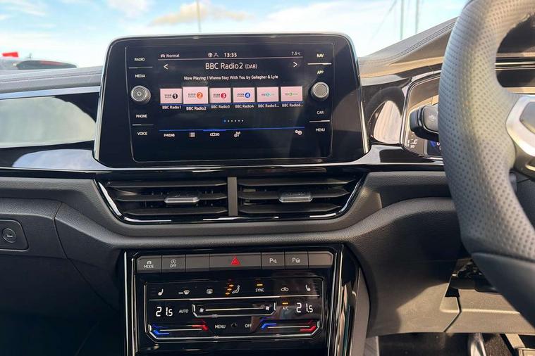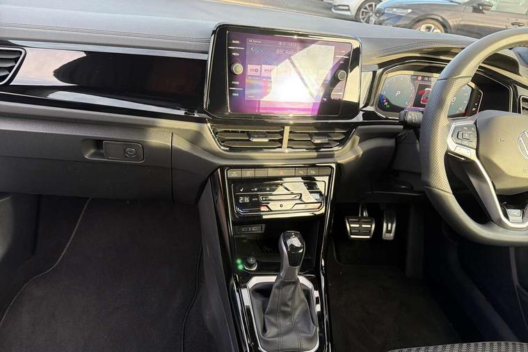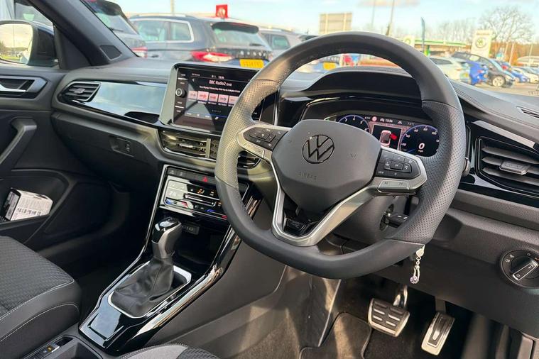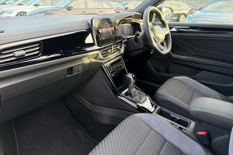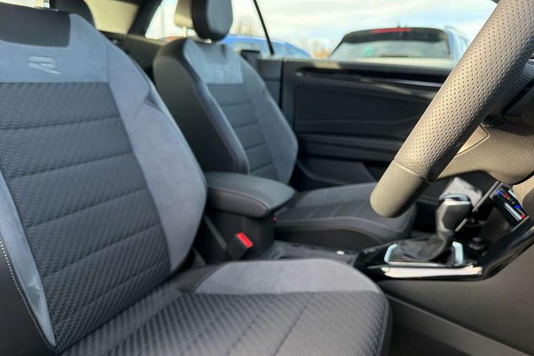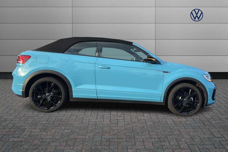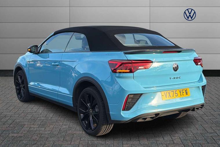 Adaptive cruise control and speed limiter, Advanced driver attention and drowsiness monitor, Brake pad wear indicator, Car information display, Digital Cockpit Pro with 10.25" Display, Driver tips and journey analysis, Dynamic road sign display, Emergency call service, Modified key software - reduce switch off time for key status change to Long no motion, Multifunction computer with visual gear change recommendation for fuel consumption, Multifunction front facing camera, Online services, Park assist including front and rear parking sensors, Speedo and rev counter, electronic odometer, trip, service interval display and exterior temperature gauge, Start/stop system with brake energy recovery, Tailgate/trunk lid release from outside, Warning sound and light for front seatbelts unfastened, Wireless App-Connect for apple Carplay and android Auto, Digital radio reception (DAB), Diversity antenna for FM reception, Mobile phone interface with inductive charging feature, Music playback - MP3, WMA and AAC files, SMS functionality - read, compose and send SMS messages using touch-screen display, Title and cover art display, USB-C Interface and USB charging socket, We Connect and We Connect Plus functionality, Ambient lighting with logo projection, Auto dimming interior rear view mirror, Automatic hazard lights activation under emergency braking, Automatic headlight control with LED separate daytime running lights with coming/leaving home function, Black roof, Body colour door handles, Body colour rear boot spoiler, Chrome effect left and right trapezoid exhaust tailpipe fascia surround, Chrome trim on upper and lower radiator grille, Dark red rear combination lamps in LED technology, Dusk sensor, Exterior mirrors aspherical on driver side, convex on front passenger side, Heat insulating glass windscreen, LED 3rd brake light, LED rear number plate lights, Power operated canvas convertible top, Power windows with comfort operation and circuit breaker, R-Line design body coloured bumpers, Rain sensor, Rear boot, Rear exhaust tailpipe, Rear fog light on one side and reversing lights on both sides, Remote electrically foldable door mirrors, puddle lights and reverse activated passenger door mirror, Volkswagen roundel, Windscreen wiper with intermittent wipe light, Without exterior ambient lighting, 12V socket in centre console storage area, 2 LED front reading lights, 2 seat bench in 2nd row, 50:50 Split folding rear seat backrests with fixed rear seat bench, Air care climatronic air conditoning system with active combination filter and 2-zone temperature control, Black door lower parts with chrome trim, Chrome plated surround to light, mirror and window switch, Door and side trim panel with leatherette insert, Easy entry backrest release, Front and rear carpet mats with black stitching, Front centre armrest, Front cupholders x 2, Front door pockets, Front seat back storage pockets, Front sports comfort seats with manual height adjustment, Heated leather wrapped multi function sports steering wheel with tiptronic, Height/reach adjust steering wheel, Inserts of front seats and outer rear seats in ArtVelours titan black, Instrument lighting, white adjustable panel illumination, Interior light delay, Interior light in footwell, Interior lighting with switch off delay and contact switches on all doors, Interior white ambient lighting and surround lighting, Isofix child seat preparation, Lockable glove compartment with light, Luggage compartment lighting, Power adjustable lumbar support in front, Rear head restraints, Single front passenger seat, Stainless steel pedals, Sun visors with illuminated vanity mirrors, Unique R Line door sill protectors, Driver assistance pack without proactive passenger protection - T-Roc Cabriolet DSG, 2 x 3-point seatbelts/outer rear seats with ECE label, Driver and front passenger airbag with front passenger airbag deactivation, Driver and front passenger safety-optimised head restraints, Drivers seatbelt reminder, Electronic parking brake, Electronic Stability Control (ESC) including ABS, ASR and EDL, Front and rear disc brakes, Front assist with autonomous emergency braking, Pedestrian monitoring, Predictive pedestrian protection, Rigid safety cell with front and rear crumple zones, Side airbag/thorax airbag system, for front passengers, Three point height adjust front seatbelts + pretensioners, Two tone horn, Tyre pressure loss indicator, Volkswagen roadside assistance, Anti-theft alarm system with interior protection and central locking system with SAFELOCK, radio remote control and 2 remote control folding keys, Electronic engine immobiliser, Trims for alloy wheels,
