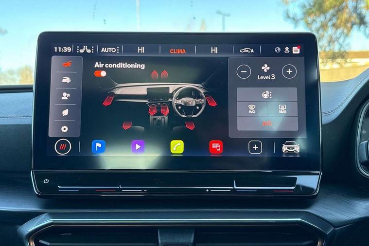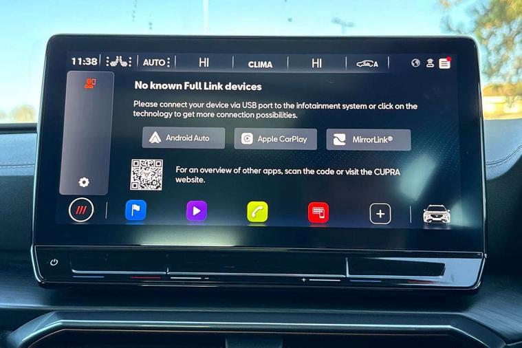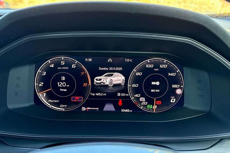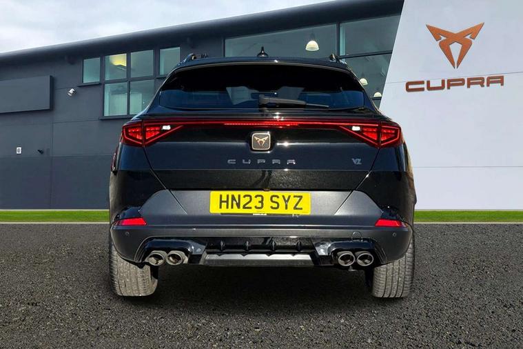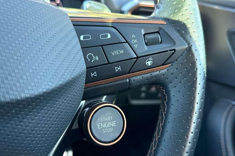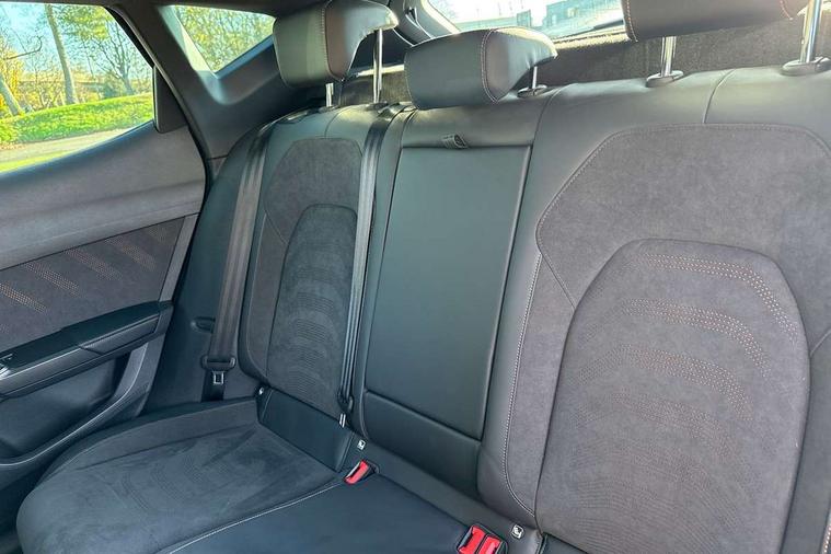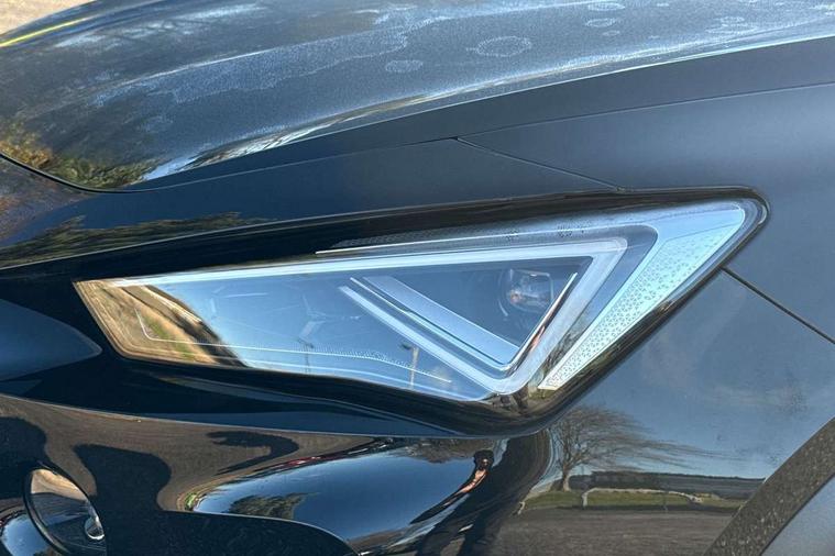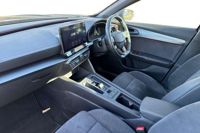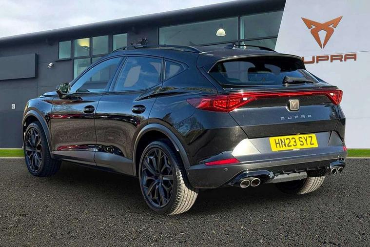 Digital cockpit and configurable dashboard, Driver alert system, Dynamic chassis control with driving profile selection (Comfort, Sport, CUPRA, Individual), Forward collision warning with automatic braking, Lane assist, Navigation system with 12'' Touchscreen Display, Park assist (inc front/rear parking sensors), Predictive adaptive cruise control with speed limiter, RPM, trip computer, outside temp gauge, instrument light brightness, low fuel warning light, lights on reminder, gearshift indicator, Service interval indicator, Speed sensitive power steering, Start/stop system with regenerative braking, Top view camera, Virtual pedal and electric tailgate, Voice control system, Wired Android Auto, Wireless apple carplay, Wireless phone charger, Electronic locking differential and dynamic traction support, Sports suspension with front shock absoption, 2 front and 2 rear USB type C sockets, Auxiliary input socket, Beats audio with 9 speakers plus subwoofer and 340W amplifier, DAB radio, Auto dimming rear view mirror, Body colour door handles, Body coloured bumpers, Cupra exterior black lettering, Daytime running light with automatic headlight control and coming home feature, Dynamic headlight range control, Electric front/rear windows, Electrically adjustable heated and folding door mirrors with memory function, Front fog lamps with cornering function, Front grill, cladding parts and exterior mirros housing painted in sport black matte, Gloss black roof rails and window surrounds, LED Taillights with dynamic indicator, Matrix LED headlights, Panoramic sunroof, Rain sensing wipers, Rear diffuser with twin exhaust pipe on each side, Rear side wing doors, Rear wash/wipe, Sports bumpers, Third brake light, Tinted rear windows, Welcome lights, 12v power supply in centre console, 12V socket, 12v socket in loadspace, 2 front and 2 rear reading lights, 230V socket, 3 seat bench in 2nd row, 60/40 split rear bench seat with armrest and mechanical seat release, Black headlining, Cupra sports pedals, Dinamica/leather upholstery + bucket seats, Dust/pollen filter, Electrically adjustable with memory function for driver seat, Front and rear head restraints, Front centre armrest, Heated front seats, Height/reach adjust steering wheel, Illuminated interior front door sills, Illuminated sunvisor with mirror, Isofix, Leather heated multi-function sports steering wheel with start stop, CUPRA mode button and gear shift paddles, Luggage tie-down hooks, Single front passenger seat, Three zone climate control with control panel in rear, Variable luggage/load compartment floor, Wraparound lighting, Safety and driving pack (XL) - Formentor, 3 point seatbelts on all rear seats, ABS, Brake control system - ESC and brake booster, Child proof door locks, Driver and front passenger airbags with front passenger airbag de-activation, Electronic parking brake, Front and rear disc brakes, Front side curtain airbags, Hill hold control, Public e-call, Seat belt reminder for front and rear seats, Tyre pressure monitoring system, Anti theft alarm system, Keyless entry and start system (KESSY), Locking wheel bolts, Copper and aluminium interior detailing, Leather dashboard, dinamic door insert and side trim panel, 19" Sport matt black alloy wheels, Tyre repair kit,