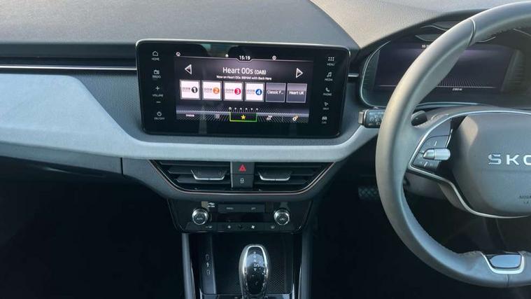 Advanced driver attention and drowsiness monitor, Bluetooth, e-Call (emergency call), Front assist system, PAS, Rear parking sensors, Speed limiter, Tailgate, Traffic sign recognition, Virtual Cockpit - 10.25" digital display, Voice control system, Wireless smartlink, 4 USB C ports, 8 Speakers, 9.2" Skoda navigation display, DAB radio, Auto dimming rear view mirror, Automatic headlamp activation with Coming home and Leaving home feature, Automatic high/low beam, Automatic intermittent wipers, Body colour bumpers, Body colour door mirrors and handles, Chrome moulding around grille, Chrome window frames, Front and rear electric windows, Heated rear window, LED 3rd brake light, LED brake lights, LED daytime running lights, LED front turning lights, LED high beam, LED low beam, Light sensors, Privacy glass, Rear LED fog light, Rear side wing doors, Rear wiper, Tinted windows, 12V socket in luggage compartment, 3 seat bench in 2nd row, Ambient lighting in white/red, Black / Copper armrest stitching, Cargo elements, Chrome inner door handles, Copper hotstamping, Door inserts in accent black, Driver and passenger sun visors with vanity mirror, Dual zone climate control, Front and rear roof lights, Front centre armrest, Front head restraints, Glasses storage in roof liner, Height adjustable driver seat, Height adjustable passenger seat, Ice scraper, Illuminated glove compartment, Inner circulation control with pollen filter, ISOFIX for front passenger seat, Isofix preparation for back seats, Leather gearknob and handbrake lever, Lodge cloth upholstery, Luggage net under rear parcel shelf, Manual lumbar support for front seats, Net package and top tether hooks in boot space, Pearl grey ceiling, Pocket on the back of both front seats, incl. mobile phone pockets, Rear centre armrest, Single front passenger seat, Textile floor mats, Third rear headrest, Ticket holder, Top tether for front passenger seat, Umbrella in driver's door, 3x3 point rear seatbelts, ABS, Child locks, Curtain airbags and front side airbags, Disc brakes, Driver and front passenger airbags, ESP, Hill hold control, Manual leather parking brake, One tone horn, Passenger airbag switch off function, Seatbelt reminder for driver and front passenger, Tyre pressure monitoring system, Anti theft alarm system with interior monitoring, backup horn and towing protection, Anti-theft wheel bolts, Remote central locking with 2 remote folding keys, SAFE function for remote central locking, Decorative inserts,