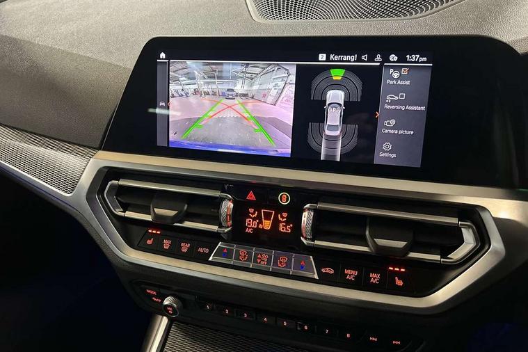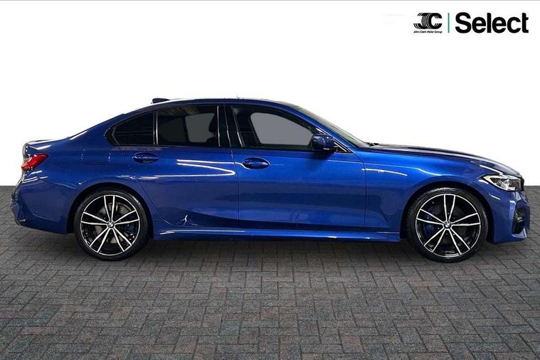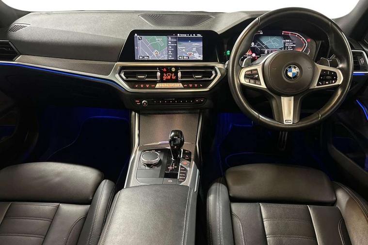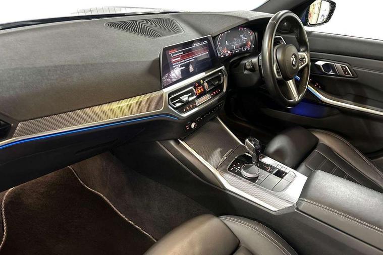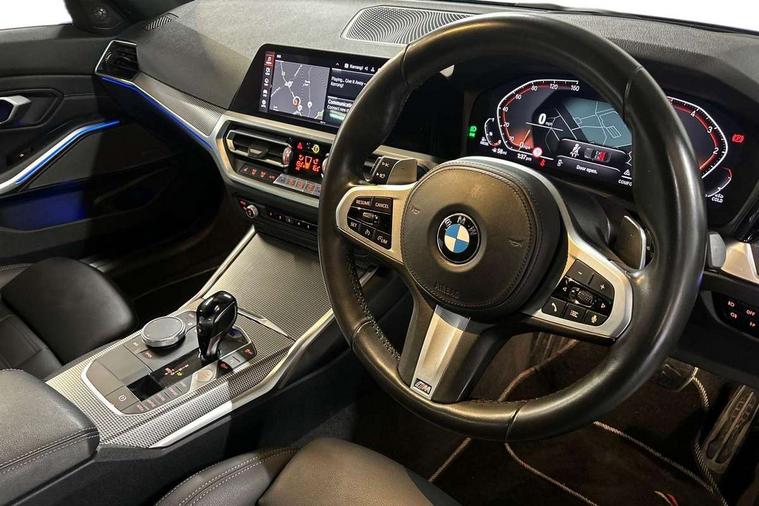 Active guard plus, Attentiveness assist, Auto start-stop, BMW iDrive controller on centre console, BMW Live Cockpit Professional sat nav system including 10.25" high resolution display and Intelligent Voice Assistant, BMW Online services, BMW Teleservices, Brake pad wear indicator in front and rear, Check Control warning system for monitoring of lights and door/luggage compartment open warning, Condition based service, Front/rear park distance control, Instrument cluster with speedometer with mph readout, tachometer, fuel gauge and oil temperature gauge, Oil sensor for level and grade, On board computer - average speed+fuel consumption, service interval, clock/date, odometer/trip meter, outside temperature display and ice warning, Optimum shift indicator, Pesonal profile, Variable sport steering, Battery cut-out switch, Diesel particulate filter, Drive performance control with ECO PRO comfort + sport mode, Electronic differential lock, Incorrect fuelling protection, Larger capacity fuel tank, Sport automatic transmission with steering-wheel mounted gearshift paddles and launch control, DAB tuner, Acoustic glazing, Active airstream chrome frame kidney grille with 8 high gloss black vertical slats, Automatic headlight beam throw control with load dependent regulating reaction, dynamic compensation of braking dive and acceleration squat, Black roof mouldings, Body colour - fuel filler flap, front and rear bumpers, door handles and mirror caps with integrated turn indicator + bottom segment in matt black, Dynamic brake lights, Extended LED headlights, Exterior mirrors - electrically folding with anti-dazzle, Front and rear bumper system with replaceable deformation elements, Front and rear electric windows with open and close fingertip control, anti trap facility and comfort closing, Front black door sill finishers with BMW designation, Green tinted heat protection glazing, Interior rear view electrochromatic mirror with automatic anti dazzle function, LED front fog lights, Left and right split exhaust tailpipes, Lightweight engineering, M aerodynamic body styling, M designation on left and right front side panels, M designation side badges, Matt black exterior B pillar, Model designation on right side of tailgate, Rain sensor with automatic headlight activation, Shark fin antenna, Two part LED tailights in L-shape with components in smoked glass, brake light, LED turn indicator and rear fog light, Visible VIN plate, Welcome lights in interior and door handle area, Windscreen wipers with integrated washing jets, 12V power socket in front storage compartment, 2 front cupholder in centre console with clamping elements and matt black inlay, 3 rear seats with non folding headrests with 3 point seat belts, 3 spoke M leather steering wheel, 4 pieces lashing eyelets in luggage compartment, 40:20:40 split folding rear bench seat, Ambient lighting, Anthracite headlining, Armrest integrated in front and rear door trim + front centre console armrest, Centred top Luggage compartment lights, Four grab handles integrated in roof lining, Front and rear door pockets, Front and rear velour floor mats, Front sport seats, Heated driver and front passenger seats, Height adjustable mechanically and infinitely variable steering column, Illuminated glove compartment with separate small compartment, Interior lighting - front centre over interior mirror with soft light, rear centre and front and rear footwell lighting, Rear centre armrest with 2 cupholders, Rear centre console with storage compartment and ventilation grille, Steering column length adjustment lever, Sunvisors with vanity mirrors and ticket pocket, Three zone automatic air conditioning, Through loading system with 40/20/40 split folding rear seat, Toolkit located in luggage compartment, Vernasca leather upholstery, Connected pack professional - 3 Series Saloon/Touring, M Aerodynamics pack - 3 Series Saloon/Touring, 2 tone horn, ABS, Automatic Stability Control (ASC), BMW emergency call, Brake assist function, Brake drying, Brake energy regeneration, Braking pre-tensioning, Child proof locking system in rear door, Child seat ISOFIX attachment rear outer seats, Cornering brake control (CBC), Crash sensor activating central locking release, hazard warning lights, fuel cut off, interior lighting + activation of safety battery terminal clamp, Driver and front passenger front and side airbags with passenger deactivation and ITS front and rear head airbags, Dynamic brake control, Dynamic Traction Control - DTC, Electromechanical parking brake with automatic drive away release and auto hold function, Hill start assist, Seat belt security check for driver and front passenger, Side impact protection, Three 3 point seat belts on all seats including front belt stopper, pyrotechnic belt tensioners and belt force limiters, Tyre pressure monitoring with three level warning strategy, Variable torque distribution, Ventilated front and rear disc brakes, Warning triangle and first aid kit, Alarm system (Thatcham 1) with remote control and electronic engine immobiliser, Central locking switch for all doors, fuel filler cap and luggage compartment, Remote control with integrated key one button open/close vehicle and windows, sole opening of the luggage compartment lid and panic mode, Selectable automatic lock when driving away, Start/stop button with Comfort Go keyless engine start and auto Start/stop deactivation button, Vehicle key with M specific designation, Reduced rolling resistance tyres,