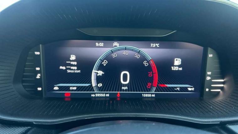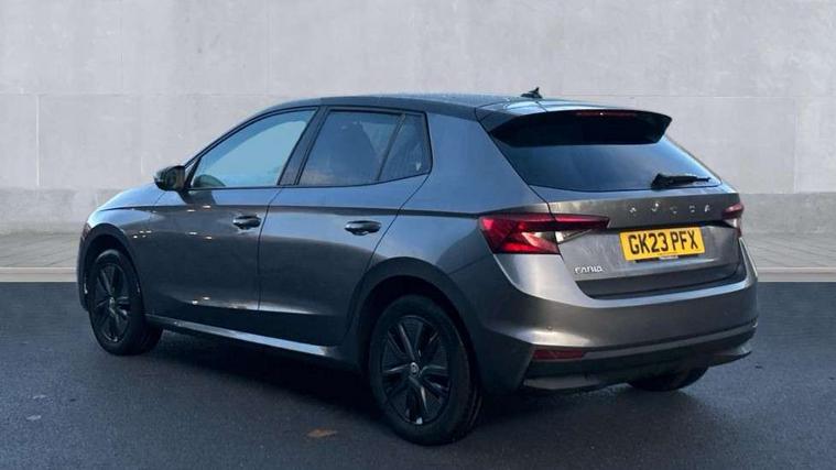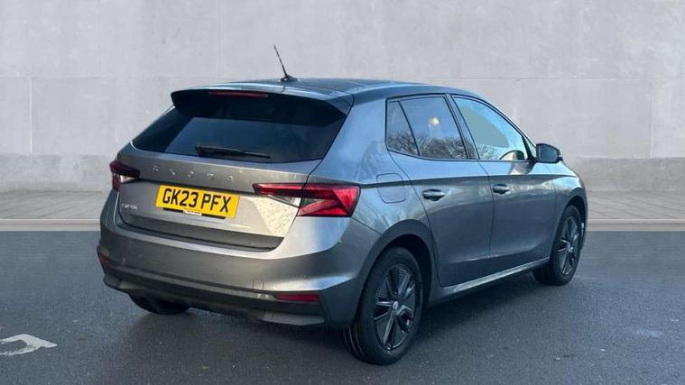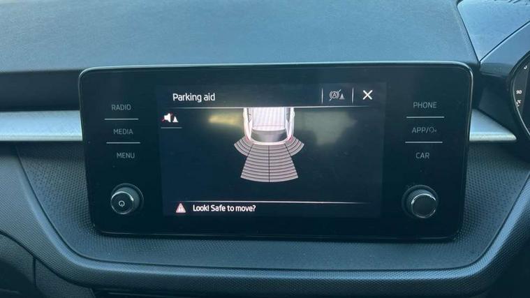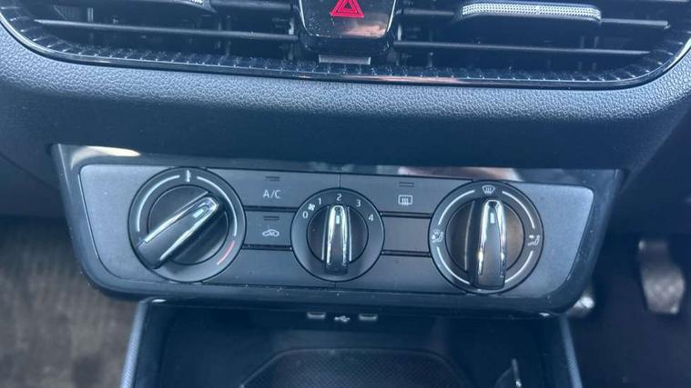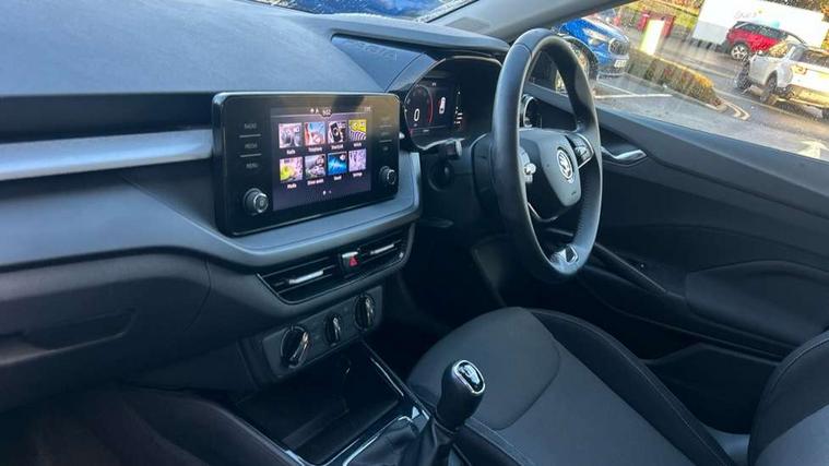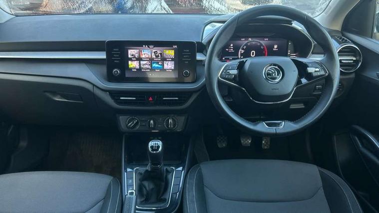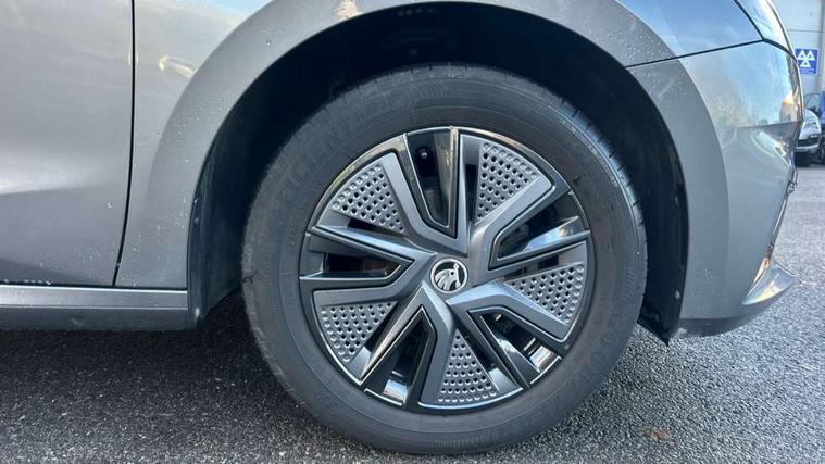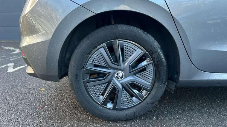 Bluetooth connection, Driver alert system - DAS, Electromechanical power steering, Exterior temperature gauge, Lane assist including road edge detection, Service interval indicator, Virtual cockpit with 10.25" colour display, 2x USB-C in the front (for data transmission and charging), 6 Speakers (4 in front and 2 in rear), Auxiliary socket for external MP3 player, Bolero radio with 8" colour display, DAB digital radio reception, Basic rear lights, Body coloured bumpers, Dimming rear view mirror with black frame, Door mirror integrated indicators, Electrically adjustable and heated door mirrors, Electrically adjustable front windows with function auto up/down, Front window wiper intermittent control, Headlight range control - Automatic, Ice scraper in fuel cap, LED daytime running lights with coming and leaving home feature, Mechanical adjustable rear windows, Privacy glass, Rear LED fog light, Rear side wing doors, Rear window wiper with washing nozzles, Roof mounted spoiler, SKODA tailgate lettering in chrome, Third brake light, 3 rear headrests, Backrest split and folding, Central console with fixed cup holder and storage box, Chrome handbrake release button, Fabric upholstery, Gearshift knob/handle in leather, Grain satin black interior door handles, Hand brake lever handle in leather, Height adjustable front headrests, Height adjustable steering wheel, ISOFIX and TopTether anchorage points to the outer rear seats, ISOFIX and TopTether on the front passenger seat, Luggage compartment lighting, Pollen filter, Rear seat bench unsplit, Single front passenger seat, Storm grey headlining, Sun visors with mirror and airbag label on passenger side, Ticket holder, Umbrella in drivers door, 3-point height adjustable front seats belts with pretensioner and force limiter, Automatic warning lights in case of crash, Driver and passengers airbag with switch off function, e-Call+, ESC including ABS, MSR, ASR, EDS, HBA and XDS, Front and rear seat belt warning, FRONT ASSIST (AEB City and AEB Inter Urban), Front side airbags, Head airbags, One tone horn, Pedestrian protection, Three rear 3-points safety seat belts with pretensioner and force limiter including stop function for outer rear seat belts, Tyre pressure monitoring system, Anti-theft alarm system including immobiliser, interior monitoring, backup horn, and towing protection, Anodized cross line upper decorative trim, Colour Edition air vents, Grain satin black central console cover, Grain satin black lower decorative trim, Satin black door and side trim panel in front, Anti-theft wheel bolts protection, Super-low rolling resistance tyres,