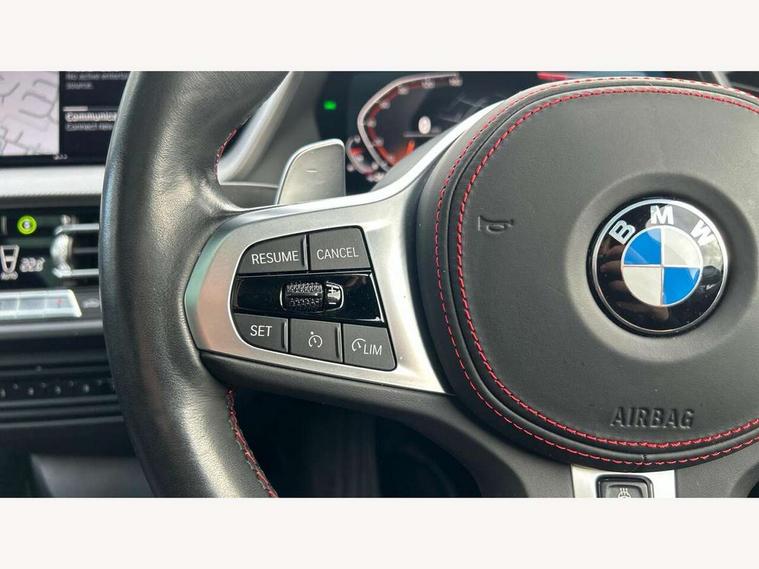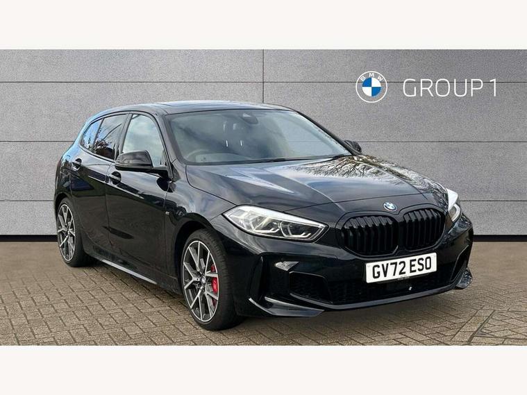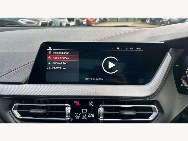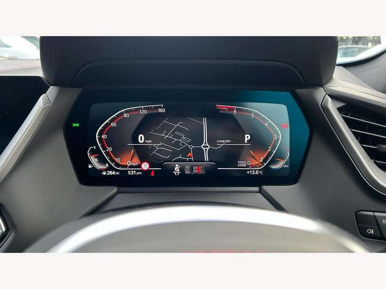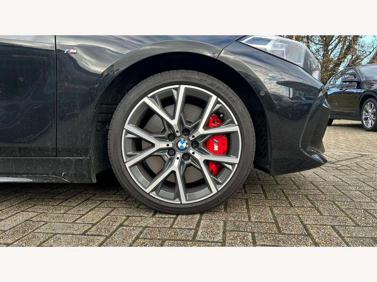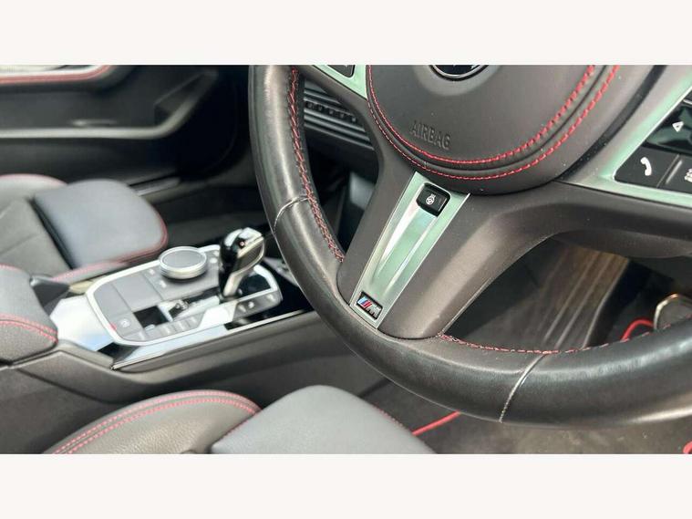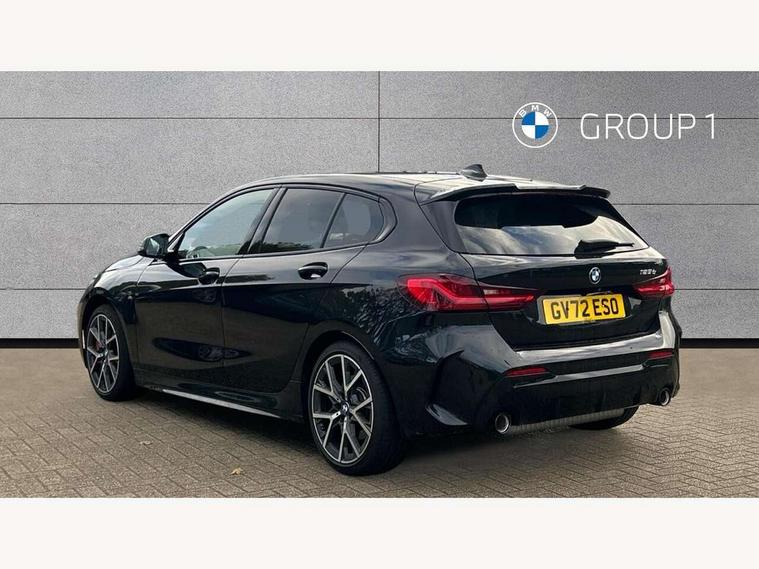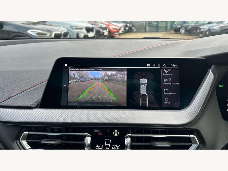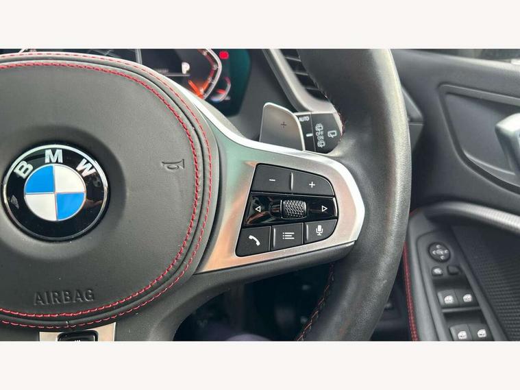 Active guard plus, Attentiveness assist, BMW ConnectedDrive online services, BMW Teleservices, Check Control warning system for monitoring of lights and door/luggage compartment open warning, Cruise control with brake assist, Eco pro mode, Electric power steering with Servotronic steering optimised at all speed ranges, Front axle single joint with specific axle kinematics to minimise drive influences on steering + provide increased rigidity agile driving behaviour, Integrated owners handbook, Lane departure warning system, Oil sensor for level and grade, On board computer, Optimum shift indicator, Personal Profile, Pull away assistant, Rigidly mounted rear subframe - Multi link construction with separate spring / damper configuration and excellent driving characteristics, Speed limit Info including no-overtaking indicator, Speed limiter, Aluminium lightweight construction, Anti roll bar front and rear, Balancer shaft, Double VANOS twin scroll turbocharging system, Drive Performance Control, Eight speed sport automatic transmission with gearshift paddle switches, Electronic differential lock, High precision injection, Larger fuel tank capacity (50 litres), M sport suspension with M128i xDrive specific settings, Petrol Particulate Filter, Twin tube gas filled shock absorbers with degressive characteristic curve, VALVETRONIC engine management, DAB Digital radio, Auto dimming rear view mirror, Automatic headlight beam throw control, Automatic windscreen wipers and automatic headlight, Black chrome tailpipe finishers, BMW individual high gloss shadow line with extended content, Body colour door handles, Body colour mirror caps, Body colour roof trims, Chrome 'M' logo side designation, Chrome kidney grille frame with Satin Aluminium struts, Direction indicator side lights in exterior mirrors, Fading support, Folding side mirrors with auto dimming/folding wing mirrors with auto dimming, Follow me home headlights, Front and rear bumper system with replaceable deformation elements, Front and rear electric windows with open and close fingertip control, anti trap facility and comfort closing, Front door sill finishers in black plastic with M designation in metallic look, Green tinted heat protection glazing, Heated, electrically adjustable exterior mirror aspheric on driver side, convex on passenger side, High gloss shadowline window frame, Recess cover mirror frames and B/C pillar embelisher trim, High level third brake light, Integrated front windscreen with washer jets, Kidney frame and struts in high gloss black extended, LED daytime running lights, LED eyebrow turn indicators, LED front fog lights, LED Headlights, Lightweight engineering, Matt black air guide grilles, Matt black wheel arch trim, Model designation on electric bootlid, Nearside reverse light in rear light cluster, Preparation for high beam assistant, Rear fog lights, Rear side wing doors, Rear window wiper, Shark fin antenna, Trailer stabilisation logic, Visible VIN plate, Welcome lighting, 12V power socket in front centre console with blanking plug, 3 rear seat head restraints, 3 seat bench in 2nd row, Anthracite headlining, Black boot net with lashing eyes, Cargo function on 2nd seat row, Centre armrest in black/red highlight including embroidered 'ti' designation in red, Child seat ISOFIX attachment for two outer rear seats and front passenger seat with anchorage points, Conditioned based service, Driver and front passenger seat heating, Floor mats with red binding, Folding rear clothes hook, Four grab handles integrated in roof lining, Front and rear door pockets with bottle holders, Front and rear side armrest integrated into door trim, Front armrest, Front sports seats, Glove compartment, Height adjustable front head restraints, Instrument panel top section , door armrests and door panels in black/red highlight, Luggage compartment for bag hooks on left and right, foldable luggage compartment liner and four lashing eyelets, Manual adjust steering wheel, Multi-function controls for steering wheel, Single front passenger seat, Storage compartment in centre console, Sun visors with vanity mirrors and insert tab, Three spoke M sport design multi function leather steering wheel in unique red stitching, Two front centre console cupholders, Two zone automatic air conditioning, Additional interior lighting pack - 1 Series, BMW live cockpit professional pack- 1 Series, Connected pack professional - 1 Series, Interior lights pack - 1 Series, M Sport exterior styling aerodynamics pack - 1 Series, 2 tone horn, 3 point seatbelts on all seats, front pyrotechnic belt tensioners, stopper and belt force limiters, rear coded belt buckles, Airbags - Front driver/passenger, front and rear curtain head protection, front side, manual deactivation of front passenger airbag, Anti lock braking system (ABS) with brake assist, BMW emergency call, Brake drying, Braking readiness, Child proof locking system in rear door, City braking function, Comfort modes, Cornering brake control, Crash sensor activating central locking release, hazard warning lights, fuel cut off, interior lighting + activation of safety battery terminal clamp, Driver and front passenger seat belt security check, Dynamic stability control + (DSC+), Dynamic Traction Control - DTC, Electrically operated hand brake including automatic hold function, Front and rear disc brakes, M Sport brakes with red calipers, M Sport seatbelts, Seatbelt warning, Side impact protection, Tyre pressure monitoring system, Warning triangle and first aid kit, Central locking switch for all doors, fuel filler cap and luggage compartment, Deadlocking function system to all doors, Drive away locking system on all doors and luggage compartment with de-activated in iDrive settings, Locking wheel bolts, Remote control with integrated key with High-gloss Black inlay and M designation and 1 button for open/ close lock, window, open luggage compartment, Start/stop button illuminated in centre console with keyless e