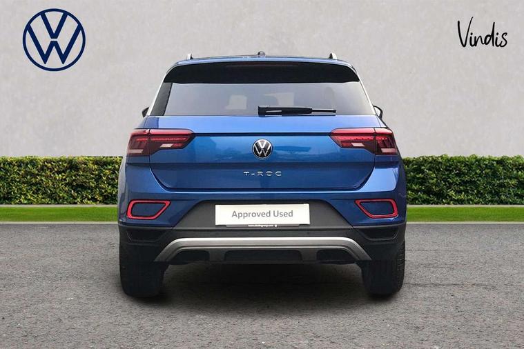 Advanced driver attention and drowsiness monitor, Dynamic road sign display, Emergency call service, Lane keeping system Lane Assist, Mobile phone interface, Modified key software - reduce switch off time for key status change to Long no motion, Online services, Park assist including front and rear parking sensors, Power assisted speed sensitive steering, Rear view camera, Service interval indicator, Tailgate/trunk lid release from outside, Think blue trainer driver tips and journey analysis, Warning sound and light for front seatbelts unfastened, Wireless app connect, Battery regeneration during braking, Front shock absorption, Rear shock absorption chassis with increased ride height, Start/stop function with battery regeneration, DAB Digital radio, Diversity antenna for FM reception, Music playback - MP3, WMA and AAC files, Premium USB cable in choice of either Apple or Android smartphone compatibility, SD card slot, Simultaneous pairing of 2 compatible mobile devices, Title and cover art display, We Connect and We Connect Plus functionality, Auto dimming interior rear view mirror, Automatic hazard lights activation under emergency braking, Automatic headlight control with LED separate daytime running lights with coming/leaving home function, Black roof rails, Body coloured bumpers and radiator grille with chrome trim and front fog lamps with chrome bezel, Body coloured exterior mirror housings and door handles, Electrically adjustable and heated door mirrors, Extended roof spoiler, Exterior mirrors aspherical on driver side, convex on front passenger side, External USB type C socket and charging sockets, Front windscreen wiper with intermittent wipe and 4 position delay, Heated rear window, LED 3rd brake light, LED rear combination lamps, LED rear number plate lights, Power windows with comfort operation and circuit breaker, Privacy glass for rear side windows and rear window, Rain sensor, Rear exhaust tailpipe, Rear fog light on one side and reversing lights on both sides, Rear side wing doors, Rear wash/wipe with intermittent wipe setting, Remote electrically foldable door mirrors, puddle lights and reverse activated passenger's door mirror, 12V power socket in centre console, 3 rear head restraints, 3 seat bench in 2nd row, 4 load lashing points in luggage compartment, Air care climatronic air conditoning system with active combination filter and 2-zone temperature control, Black stitching for floor mats, Ceramique roof liner, Cloth upholstery, Door and side trim panel in cloth, Drawer under drivers seat, Driver/front passenger seat height adjustment, Front centre armrest, Front comfort sports seats, Front cupholders x 2, Front reading light, Front seat back storage pockets, Glove compartment door with light, Instrument lighting, white adjustable panel illumination, Interior ambient lighting and surround lighting, Interior light delay, Isofix child seat preparation, Leather gearshift handle, Load-through provision with cup holder when folded down ('Unsplit rear seat bench, split folding backrest, with centre armrest), Luggage compartment lighting, Lumbar support for driver's and front passengers seat, Non-folding front passenger seat backrest, Single front passenger seat, Storage compartment in left and right luggage area, Storage compartment in rear doors, Storage compartments in driver and front passenger doors, Sunvisors with illuminated vanity mirrors, Variable boot floor, height adjustable and removable, Driver assistance pack without proactive passenger protection - T-Roc Life/Match, 3 point height adj front seatbelts + pretensioners, 3 point seatbelts in outer rear with ECE label, ABS, Child locks on rear doors, City emergency braking and pedestrian monitoring, Driver and front passenger airbag with front passenger airbag deactivation, Driver and front passenger safety-optimised head restraints, Drivers seatbelt reminder, Electronic parking brake, Electronic Stability Control (ESC) inc EDL (Electronic Differential Lock) and ASR (Traction Control), Front and rear passengers curtain airbag system including front side airbags, Front disc brakes, Hill start assist, Predictive pedestrian protection, Rear disc brakes, Two tone horn, Tyre pressure loss indicator, Volkswagen roadside assistance, Alarm with interior protection, Keyless locking and starting system keyless access with safelock, Pewter matt decorative inserts for intrument panel, centre console and door panels at the front, Trims for alloy wheels,