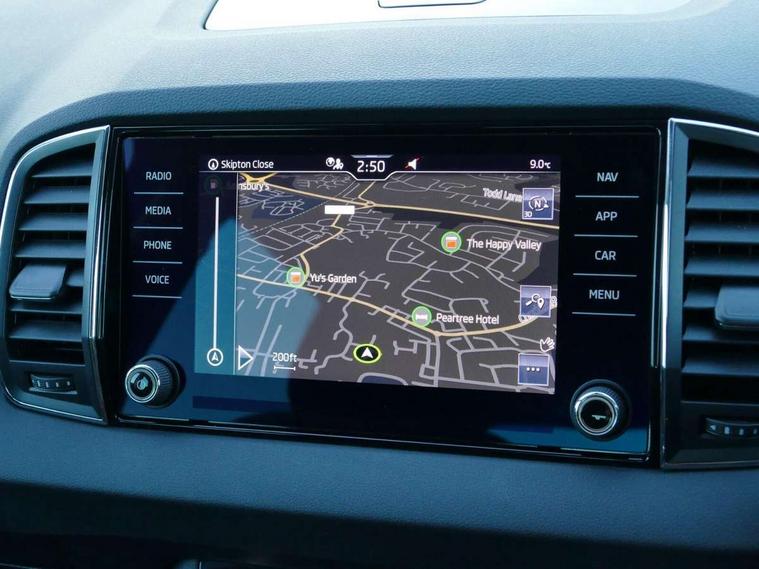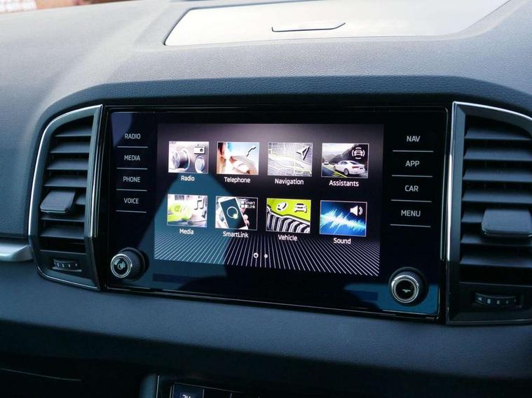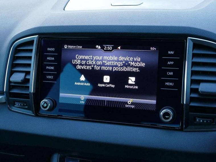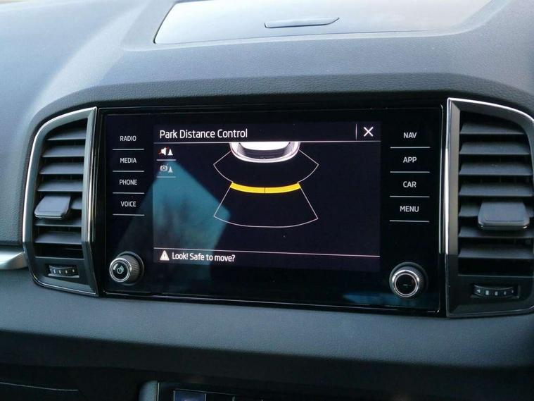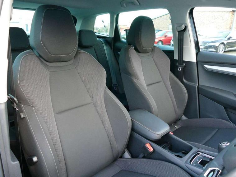8" Digital display, Amundsen satellite navigation with 8" touchscreen display with maps Europe, WLAN and web radio, Care connect, Driver fatigue sensor, Electro-mechanical PAS, Emergency services call system, Outside temperature gauge, Service interval indicator, SmartLink wireless for Apple and wired for Android, Start/stop system with regenerative braking, USB C Port x 2 in front centre console, 8 Speakers, DAB radio with Bluetooth, USB connection, Acoustic glass, Aero front windscreen wipers with intermittent function, Auto dimming rear view mirror with light and rain sensors, Black electric window control buttons, Body colour door mirrors and handles, Dynamic headlight range control with cornering light function, Electric front and rear windows with child proof lock, Electrically adjustable heated folding and auto dimming door mirrors, Front fog lights, Heated rear windscreen, LED daytime running lights, LED Headlights, LED rear lights with high functionality welcome effect and dynamic indicators, Light assistant (coming/leaving home/tunnel light), Plastic scuff plates, Privacy glass, Rear side wing doors, Rear window wiper with washer system and intermittent control, Safety reflectors on front doors, Third brake light, 1.5 litre bottle holders in driver and front passenger door panels, 12V socket in boot, 12v socket in front centre armrest with storage compartment and rear air vents, 2 x Tablet holder, 3 rear height adjustable headrests, 3 seat bench in 2nd row, 4 foldable roof handles with rear coat hooks, Black floor carpet, Chrome inner door handles, Double sided boot floor, Driver/front passenger reading lights, Foldable hooks in the boot, Folding tables on the front seat backrests, Front head restraints, Height adjustable driver and passenger seat, Height adjustable front three point seats belts with tensioners, Height/reach adjust steering wheel, Ice scraper, Illuminated glovebox, Illuminated luggage compartment, Isofix child seat preparation for front passenger seat, Isofix child seat preparation outer rear, Manual lumbar support for front seats, Pearl grey interior ceiling, Pen holder, Pollen filter, Rear boot cover, Rear reading lights, Rubbish bin door, Safety vest holder, Single front passenger seat, Storage box in upper central dashboard closed, Sunvisors with illuminated vanity mirrors, Textile floor mats, Ticket holder, Umbrella under passenger seat, Boot pack - Karoq, Automatic door unlocking in case of crash, Automatic fuel cut off in case of crash, Child locks on rear doors, Driver airbag, Electronic parking brake with auto hold function, Emergency rear braking signal, ESC including ABS, MSR, ASR, EDS, HBA, DSR, RBS, MKB and traction control, Front side airbags, Hill hold control, Knee airbags, Passenger airbag with switch-off function, Pedestrian monitor, Seatbelt reminder signalisation and pretensioner for all seats, Three point seatbelts rear, Two tone horn, Tyre pressure display, Tyre pressure monitor, Alarm with interior monitoring, back up horn and tilt sensor with safe function, Electronic engine immobiliser, Remote central locking with 2 remote folding keys, Black centre console, Chrome framed air vents, Satin black dashboard, Satin black door trim, Anti-theft wheel bolts protection, Tool kit,