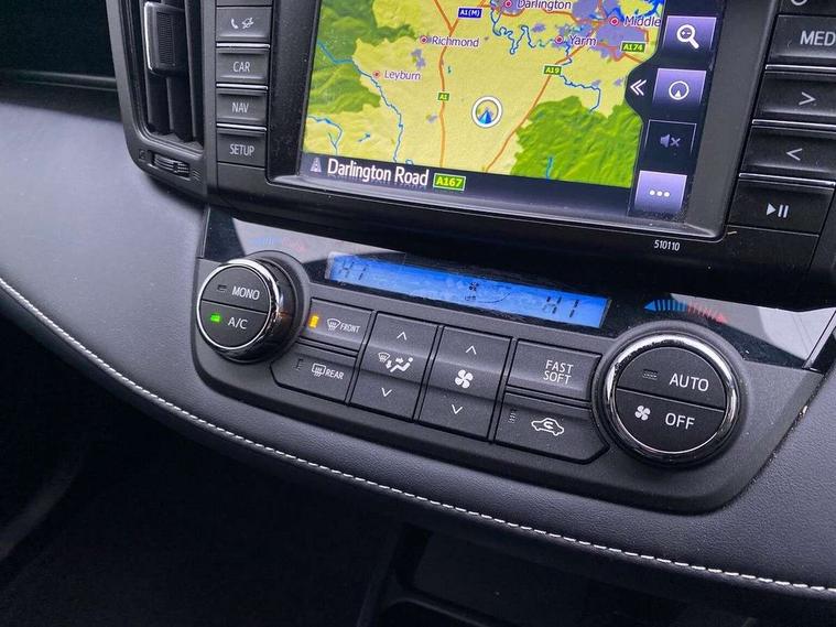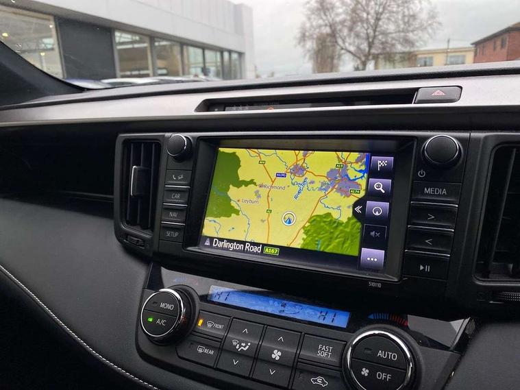 3D map display, 7" touch screen, Adaptive cruise control, Blind spot monitoring with rear cross traffic alert, Bluetooth system, Electric power steering, Front and rear parking sensors, Lane departure warning system, Touch 2 Go navigation system, Traffic sign recognition, Trip computer, Voice control system, Vehicle Stability Control (VSC), 6 speakers, Auxiliary socket for external MP3 player, DAB audio, Steering wheel mounted audio controls, Toyota touch 2 media system, USB connection, Auto dimming interior mirror, Auto high beam, Automatic headlamp levelling, Automatic headlights, Automatic rain sensing wipers, Black door mirrors, Black front grille, Black roof rails, Body colour door handles, Chrome strip on lower grille, Chrome trim to front bumper, Chromed back door plate, Dusk sensitive headlamps, Electric adjustable/heated/folding door mirrors, Electric windows + anti trap protection + one touch open/close drivers side, Follow me home headlights, Front and rear underruns, Front fog lights, Heated rear window, LED daytime running lights, LED Headlights, LED rear lights, Privacy glass, Rear screen wiper - intermittent, Rear spoiler, Rear windscreen defogger, Retractable door mirrors, 3 rear headrests, 3 spoke steering wheel, 3 x 12V power sockets, 60/40 split fold rear seat back, Active headrests, Assist grips, Cargo net, Chrome inner door handles, Coat hooks, Cupholders, Driver seat memory function, Driver/passenger sunvisors and vanity mirrors, Dual zone climate control, Electric driver's seat, Folding rear centre armrest, Footwell lights, Front centre armrest, Front seat and rear pockets, Glovebox, Heated front seats, Illuminated entry system, Isofix child seat preparation, Leather door trim, Leather gear knob, Leather parking brake handle, Leather steering wheel, Leather upholstery, Luggage area lamp, Reach + rake adjustable steering column, Reclining rear seats, Sliding centre console box, Sliding front seats, Sports seats, Tonneau cover, 3x3 point rear seatbelts, ABS/EBD, Brake assist function, Child proof door locks, Collision mitigation braking system, Driver/Front Passenger airbags, Driver/front passenger side airbags, Drivers knee airbag, Front and rear curtain airbags, Hill descent control, Hill start assist, Passenger airbag cut-off device, Road sign information display, Seatbelt pretensioners with load limiters, Traction control, Tyre pressure warning, Alarm/immobiliser, Folding key, Remote central locking, Smart entry + Smart start, Alcantara dash trim, Leather instrument panel, Space saver spare wheel,