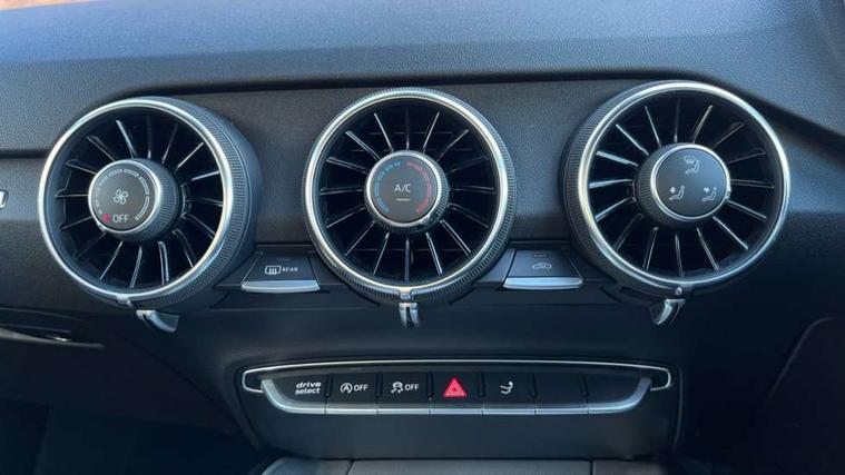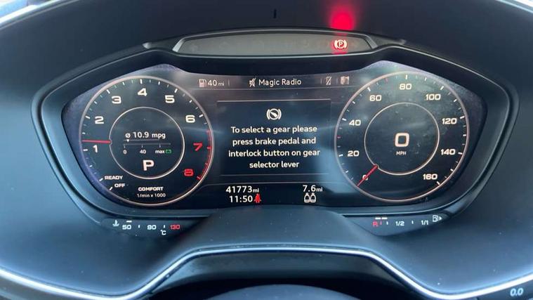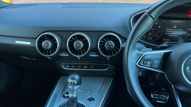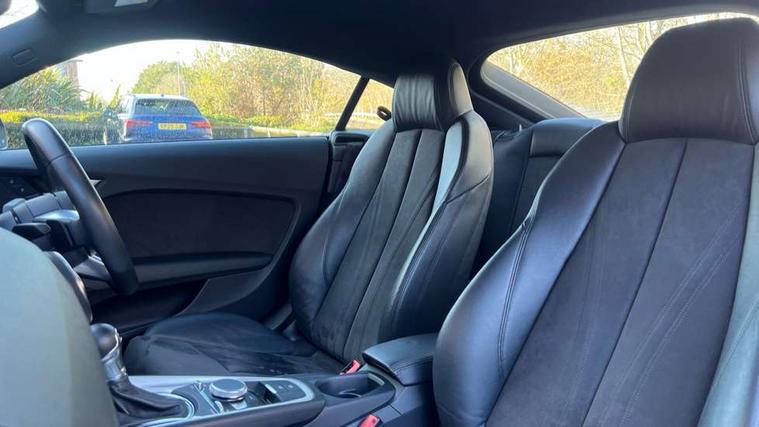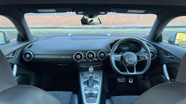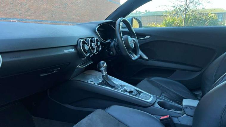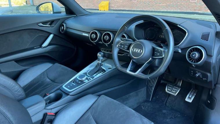 Audi drive select with 4 Pre configured modes, Audi smartphone interface, Audi virtual cockpit - 12.3" high-resolution LCD display with fully customisable instrument cluster, Cruise control + speed limiter, MMI touch panel, Mobile phone preparation with bluetooth interface, Progressive power assisted steering, Service interval indicator, Start/Stop system with energy recuperation, TP memo, S line sports suspension, AM/FM radio, Bluetooth audio streaming, DAB Digital radio, MMI Radio with CD player and SD/XC card slot, Auto dimming rear view mirror, Auto headlight range control, Body colour bumpers, Body colour electrically adjustable and heated door mirrors with built in LED side indicators, Electric folding door mirrors, Electric front windows, Front fog lights, Green tinted heat insulating glass, High gloss black radiator grille, LED daytime running lights, LED headlights with LED rear lights + dynamic rear indicators, Light and rain sensors, Retractable rear boot spoiler, S line badges on front wings, S Line front and rear bumpers, S line rear diffuser with platinum grey insert, S line side sills, Sunband for windscreen, 12V socket, 3 spoke flat bottomed high multi-function leather sport steering wheel with gearshift paddles, 4 way electric lumbar support for driver and front passenger, Black headlining, Door sill trims with S line logo, Extended aluminium look with stainless steel pedals, Front centre armrest, Front super sports seats, Heated front seats, Height adjustable driver's seat, Height adjustable front head restraints, Height/reach adjust steering wheel, ISOFIX child seat mounting for front passenger seat with airbag deactivation, Perforated leather gearknob in black, Rear head restraints, Rear top tether child seat ISOFIX attachment, S Line badge on steering wheel, Split folding rear seat, Non smoking pack - TT/TT RS, 3 point front seat belts, ABS, ASR traction control, Brake energy regeneration, Curtain airbags, Driver and front passenger airbag with front passenger airbag deactivation, EDL traction control, Electromechanical parking brake, ESP, First aid kit, Front side airbags, Head airbags, Hill hold assist, Seatbelt warning, Tyre pressure warning, Warning triangle, Anti theft alarm, Anti theft wheel bolts, Immobiliser, Keyless Go, Remote central locking, Matt brushed aluminium inlays, Tool kit, Tyre repair kit,