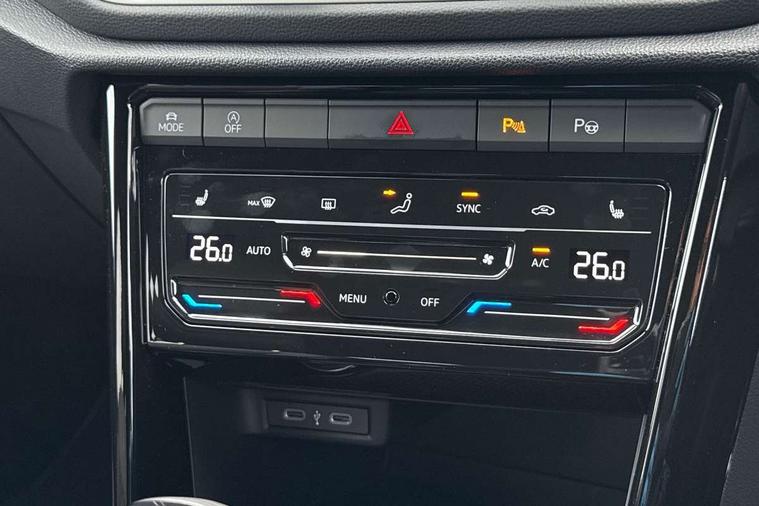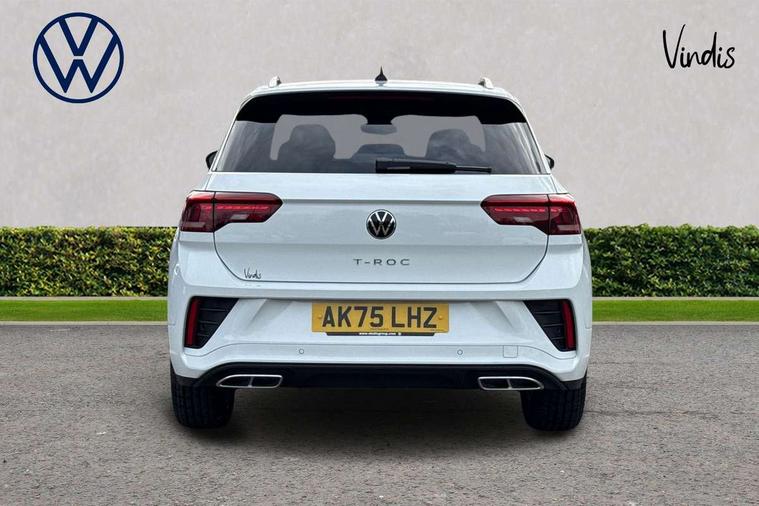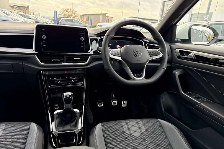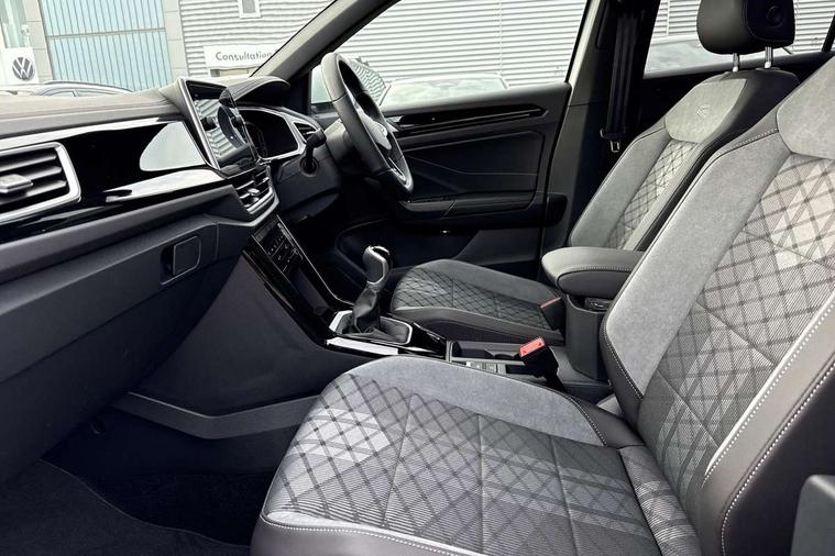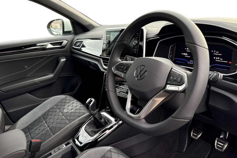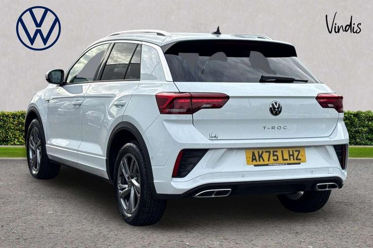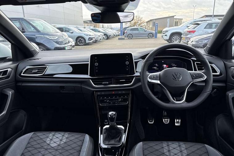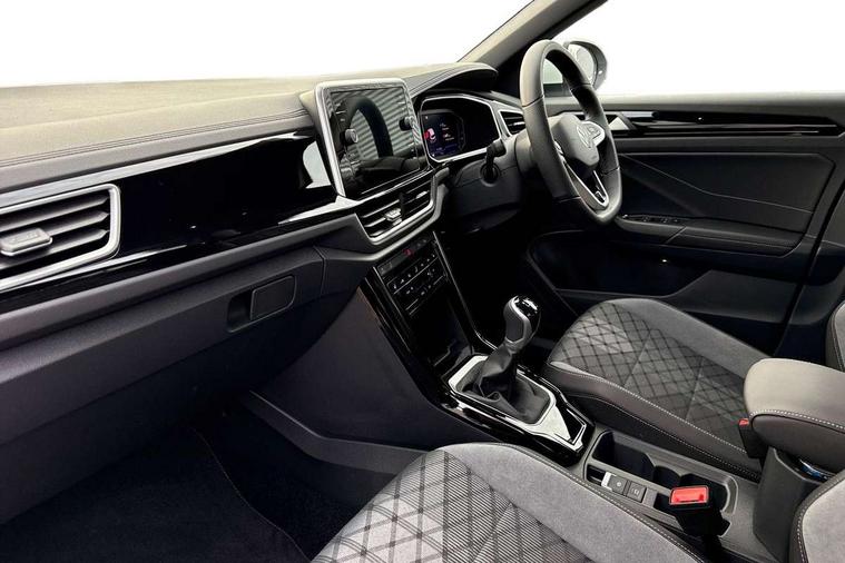 10.25" Digital cockpit pro, Advanced driver attention and drowsiness monitor, Emergency call service, Lane keeping system Lane Assist, Mobile phone interface, Modified key software - reduce switch off time for key status change to Long no motion, Online services, Park assist including front and rear parking sensors, Service interval indicator, Tailgate/trunk lid release from outside, Think blue trainer driver tips and journey analysis, Warning sound and light for front seatbelts unfastened, Wireless app connect, Battery regeneration during braking, Start/stop function with battery regeneration, DAB Digital radio, Diversity antenna for FM reception, Front and rear 6 speakers, Music playback - MP3, WMA and AAC files, Premium USB cable in choice of either Apple or Android smartphone compatibility, SD card slot, Simultaneous pairing of 2 compatible mobile devices, Title and cover art display, We Connect and We Connect Plus functionality, Auto dimming interior rear view mirror, Automatic hazard lights activation under emergency braking, Automatic headlight control with LED separate daytime running lights with coming/leaving home function, Body coloured exterior mirror housings and door handles, Electrically adjustable and heated door mirrors, Extended roof spoiler, Exterior mirrors aspherical on driver side, convex on front passenger side, External USB type C socket and charging sockets, Front windscreen wiper with intermittent wipe and 4 position delay, Heated rear window, LED 3rd brake light, LED rear combination lamps, LED rear number plate lights, Power windows with comfort operation and circuit breaker, Privacy glass for rear side windows and rear window, R-Line design body coloured bumpers, Rain sensor, Rear exhaust tailpipe, Rear fog light on one side and reversing lights on both sides, Rear side wing doors, Rear wash/wipe with intermittent wipe setting, Remote electrically foldable door mirrors, puddle lights and reverse activated passenger's door mirror, 12V power socket in centre console, 3 rear head restraints, 3 seat bench in 2nd row, 4 load lashing points in luggage compartment, Air care climatronic air conditoning system with active combination filter and 2-zone temperature control, Black roof lining, Chrome plated decorative trims, Chrome plated radiator grille inserts, air vent surrounds and light switch surrounds, Door and side trim panel with leatherette insert, Front + rear carpet mats, Front centre armrest, Front cupholders x 2, Front footwell illumination, Front reading light, Front scuff plates with R Line logo, Front seat back storage pockets, Glove compartment door with light, Instrument lighting, white adjustable panel illumination, Interior ambient lighting and surround lighting, Interior light delay, Isofix child seat preparation, Leather gearshift handle, Load-through provision with cup holder when folded down ('Unsplit rear seat bench, split folding backrest, with centre armrest), Luggage compartment lighting, Single front passenger seat, Stainless steel pedals, Storage compartment in left and right luggage area, Storage compartment in rear doors, Storage compartments in driver and front passenger doors, Sunvisors with illuminated vanity mirrors, Variable boot floor, height adjustable and removable, Driver assistance pack without proactive passenger protection - T-Roc, 3 point height adj front seatbelts + pretensioners, 3 point seatbelts in outer rear with ECE label, ABS, Child locks on rear doors, City emergency braking and pedestrian monitoring, Driver and front passenger airbag with front passenger airbag deactivation, Driver and front passenger safety-optimised head restraints, Drivers seatbelt reminder, Electronic parking brake, Electronic Stability Control (ESC) inc EDL (Electronic Differential Lock) and ASR (Traction Control), Front and rear passengers curtain airbag system including front side airbags, Hill start assist, Predictive pedestrian protection, Rear disc brakes, Two tone horn, Tyre pressure loss indicator, Volkswagen roadside assistance, Piano black decorative inserts in dashboard and front door trim panels, Trims for alloy wheels,