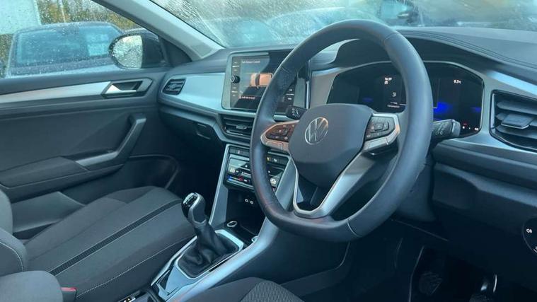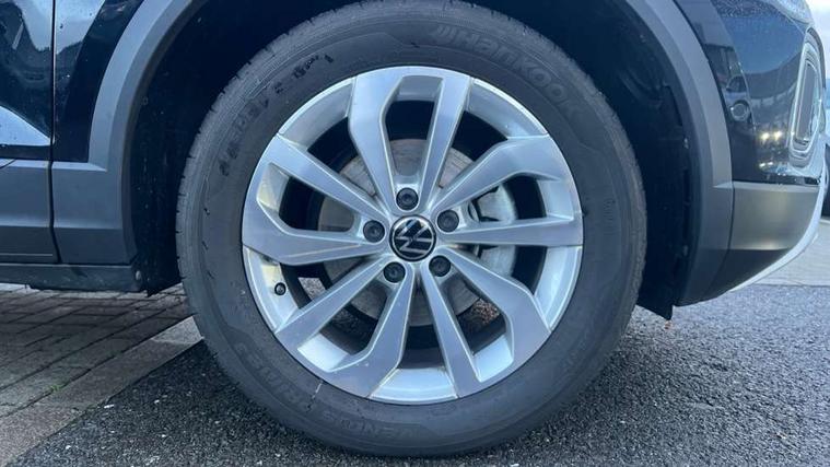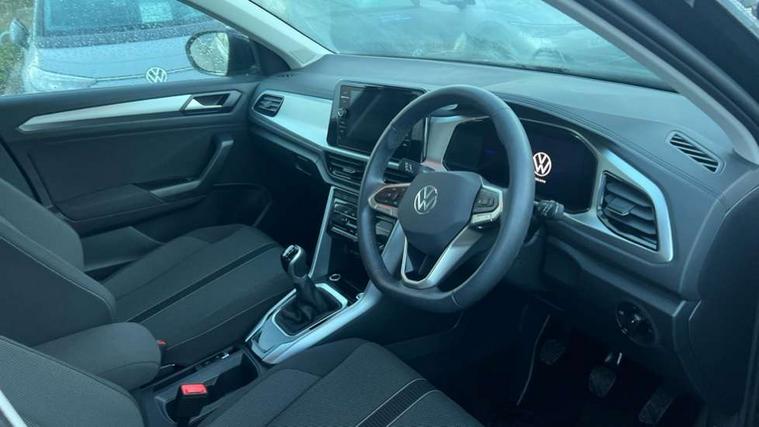 Advanced driver attention and drowsiness monitor, Dynamic road sign display, Emergency call service, Lane keeping system Lane Assist, Mobile phone interface, Modified key software - reduce switch off time for key status change to Long no motion, Online services, Park assist including front and rear parking sensors, Power assisted speed sensitive steering, Rear view camera, Service interval indicator, Tailgate/trunk lid release from outside, Think blue trainer driver tips and journey analysis, Warning sound and light for front seatbelts unfastened, Wireless app connect, Battery regeneration during braking, Front shock absorption, Rear shock absorption chassis with increased ride height, Start/stop function with battery regeneration, DAB Digital radio, Diversity antenna for FM reception, Music playback - MP3, WMA and AAC files, Premium USB cable in choice of either Apple or Android smartphone compatibility, SD card slot, Simultaneous pairing of 2 compatible mobile devices, Title and cover art display, We Connect and We Connect Plus functionality, Auto dimming interior rear view mirror, Automatic hazard lights activation under emergency braking, Automatic headlight control with LED separate daytime running lights with coming/leaving home function, Black roof rails, Body coloured bumpers and radiator grille with chrome trim and front fog lamps with chrome bezel, Body coloured exterior mirror housings and door handles, Electrically adjustable and heated door mirrors, Extended roof spoiler, Exterior mirrors aspherical on driver side, convex on front passenger side, External USB type C socket and charging sockets, Front windscreen wiper with intermittent wipe and 4 position delay, Heated rear window, LED 3rd brake light, LED rear combination lamps, LED rear number plate lights, Power windows with comfort operation and circuit breaker, Privacy glass for rear side windows and rear window, Rain sensor, Rear exhaust tailpipe, Rear fog light on one side and reversing lights on both sides, Rear side wing doors, Rear wash/wipe with intermittent wipe setting, Remote electrically foldable door mirrors, puddle lights and reverse activated passenger's door mirror, 12V power socket in centre console, 3 rear head restraints, 3 seat bench in 2nd row, 4 load lashing points in luggage compartment, Air care climatronic air conditoning system with active combination filter and 2-zone temperature control, Black stitching for floor mats, Ceramique roof liner, Cloth upholstery, Door and side trim panel in cloth, Drawer under drivers seat, Driver/front passenger seat height adjustment, Front centre armrest, Front comfort sports seats, Front cupholders x 2, Front reading light, Front seat back storage pockets, Glove compartment door with light, Instrument lighting, white adjustable panel illumination, Interior ambient lighting and surround lighting, Interior light delay, Isofix child seat preparation, Leather gearshift handle, Load-through provision with cup holder when folded down ('Unsplit rear seat bench, split folding backrest, with centre armrest), Luggage compartment lighting, Lumbar support for driver's and front passengers seat, Non-folding front passenger seat backrest, Single front passenger seat, Storage compartment in left and right luggage area, Storage compartment in rear doors, Storage compartments in driver and front passenger doors, Sunvisors with illuminated vanity mirrors, Variable boot floor, height adjustable and removable, Driver assistance pack without proactive passenger protection - T-Roc Life/Match, 3 point height adj front seatbelts + pretensioners, 3 point seatbelts in outer rear with ECE label, ABS, Child locks on rear doors, City emergency braking and pedestrian monitoring, Driver and front passenger airbag with front passenger airbag deactivation, Driver and front passenger safety-optimised head restraints, Drivers seatbelt reminder, Electronic parking brake, Electronic Stability Control (ESC) inc EDL (Electronic Differential Lock) and ASR (Traction Control), Front and rear passengers curtain airbag system including front side airbags, Front disc brakes, Hill start assist, Predictive pedestrian protection, Rear disc brakes, Two tone horn, Tyre pressure loss indicator, Volkswagen roadside assistance, Alarm with interior protection, Keyless locking and starting system keyless access with safelock, Pewter matt decorative inserts for intrument panel, centre console and door panels at the front, Trims for alloy wheels,