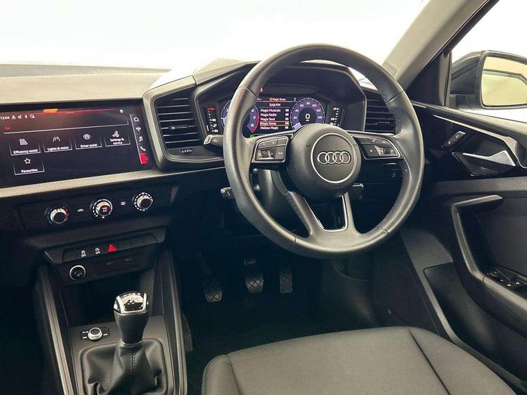 10.25" Digital instrument cluster display classis style instrument dials + speed, odometer, time, outside temperature, telephone menu + fuel level warning, Audi smartphone interface with connect compatible smartphone via USB directly MMI display + Nav, music, third party apps controlled via MMI controller, Automatic start/stop system, Bluetooth interface, Driver's information system, Electromechanical power steering, Emergency e-call, Emergency services call system, Lane departure warning system, Service interval indicator, Speed limiter, Voice control system, Washer fluid level indicator, Dynamic suspension, 1 x SDXC card reader, 2 x USB type C connection points, 6 passive loudspeakers, DAB Digital radio, MMI radio plus with 8.8" colour MMI display screen and MMI touch, Auto dimming rear view mirror, Body coloured bumpers, Body coloured door mirrors, Electric front and rear windows, Electrically adjustable, heated, folding door mirrors with integrated LED side indicator, Front side air inlets with front spoiler lip and rear diffuser in matt black grained, Heat insulating glass windscreen and side windows, Heated rear windscreen, High level LED brake light, LED headlights with LED rear lights + dynamic rear indicators + headlight adjustment and high beam, turning light + LED daytime running lights, Radiator grille in matt black, Rain and light sensors, Rear fog lights, Rear side wing doors, Rear wing door, Rear wiper, 12V socket in centre console with two cup holders, 3 rear seats with headrests, 3 seat bench in 2nd row, 3 spoke leather multifunction plus steering wheel, 40:60 Split folding rear seat or folded fully, Air vents, door handle recesses and centre console in black, Delta cloth upholstery, Driver and passenger seat with manual height adjust with forward and backwards adjustment, Front head restraints, Front passenger seat, Front/rear floor mats, Height and reach adjustable steering wheel, ISOFIX child seat mounting for front passenger and outer rear seats including top tether attachment point of outer rear seats, Leather gear knob with aluminium trim, Leatherette handbrake grip, Luggage compartment light with front and rear reading lights, Manual air conditioning, Titanium grey cloth headlining, Luggage compartment pack - A1, 3x3 point rear seatbelts, Audi pre-sense front with pedestrain and cyclist recognition, Brake assist function, Driver and front passenger airbag with front side and head airbags, Electronic Stability Control including ABS, EBD, ASR and EDL, Front passenger airbag deactivation switch, Hill hold assist, Manual rear child locks, Seatbelt height adjustment for front seats, Seatbelt monitoring, Tyre pressure warning light, Warning triangle and first aid kit, Anti theft alarm, Anti theft wheel bolts and loose wheel warning, Immobiliser, Remote central locking with 2 foldaway keys, Black inlays polygon structure, 15" 5 arm design alloy wheels,