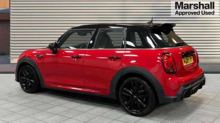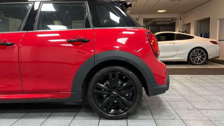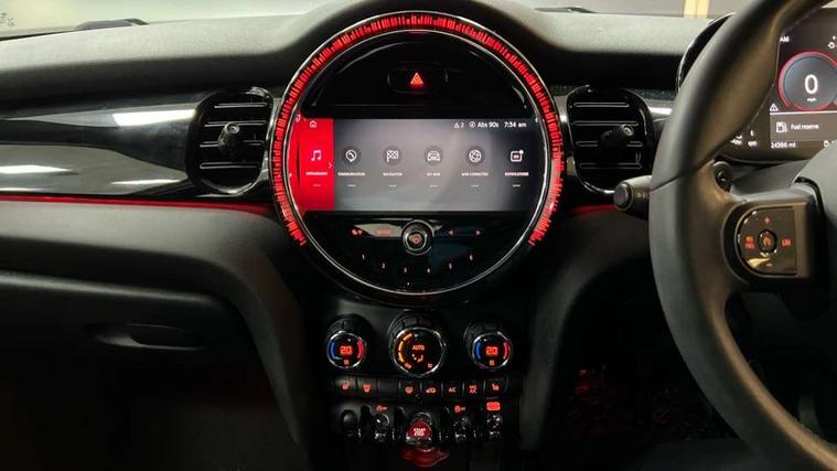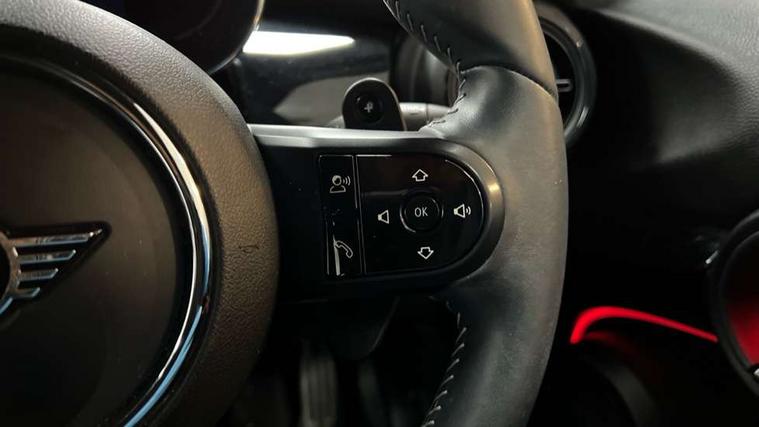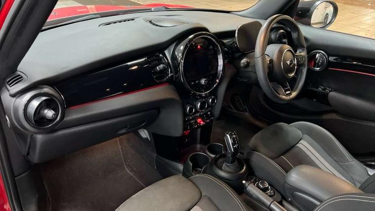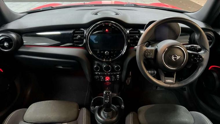 Automatic start/stop function with brake energy recuperation, Compatible mobile phone bluetooth with audio streaming, Cruise control with brake assist, Electro-mechanical speed dependant steering assistance, Flexible car sharing preparation, Instrument cluster, MINI Driving Modes - centre toggle switch to control driving setting (sport, mid and green), Mini E-call, MINI TeleServices, On board computer, Rear park distance control, Service interval indicator, Adaptive suspension, Double Vanos system, Fully variable valve control, Gear change indicator display, High precision injection, Performance Control, Steptronic sport transmission with double clutch and steering wheel paddles, 8.8" touchscreen with LED ring, FM tuner and DAB digital radio, Automatic headlight activation switch, Bonnet scoop, Dynamic brake lights, Electric front+rear windows, Heated rear window, Heated windscreen washer jets, JCW Aerodynamic kit - Front and rear bumpers with sporty JCW styling and part-painted side sills with MINI John Cooper Works door sill finishers, John Cooper Works rear spoiler, LED headlight with closed ring and daytime driving lights, Metal door sill strips with Cooper S imprint, Model logo Cooper S on right of tailgate, Radiator grille chrome border with honeycomb structure including S Badge, Rain sensor window wipers, Rear fog lights, Rear LED lights with union jack design, Rear window wiper, Side scuttle panel with integrated indicator, Sun/heat protection glass, White indicator lenses, 12V Accessory socket in centre console, 4 lashing eyes in luggage compartment, 60/40 split folding rear seat, Anthracite headliner including grab handles and clothes hooks, Carbon black colour line - Knee roll and door armrest, Chrome interior highlights, Cupholders, Front and rear isofix with front passenger airbag deactivation, Glove compartment, Height and length steering column adjustment, Interior lighting with 12 different colours across the dashboard, underneath door bezel with illuminated laser-engraved design on central display, JCW Sport seats with integrated headrests, adjustable thigh support and John Cooper Works logo, John Cooper Works Logo in seat, Leatherette gearshift lever and handbrake gaiters, LED reading lights, vanity mirror lights, front foot well light and spotlight on front seats, Manual air conditioning, Mechanical seat adjustment - forward/back & backrest for front seats and driver seat height adjust, Multifunction steering wheel, Sport leather steering wheel with speed limiter and audio/communication controls, Storage compartments in doors, Storage pocket on back of front seats, Sunvisors with vanity mirrors, Tool kit, Velour floor mats, Walknappa leather steering wheel with grey seam and John Cooper Works badge on Piano Black lower steering wheel spoke, Piano black exterior pack - Cooper S, 3 point seatbelts on all five seats, 6 Airbags - front, side, head and seat belt tensioners, Anti-lock braking system (ABS), DSC - Dynamic Stability Control, Front and rear disc brakes, Hill start assist, Two tone horn, Tyre pressure monitoring system, Alarm system with tilt sensor, monitoring doors, bonnet interior and tailgate, Electronic vehicle immobiliser, Start/stop toggle with keyless go, Piano black interior trim,