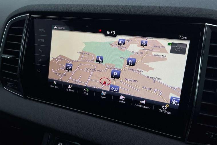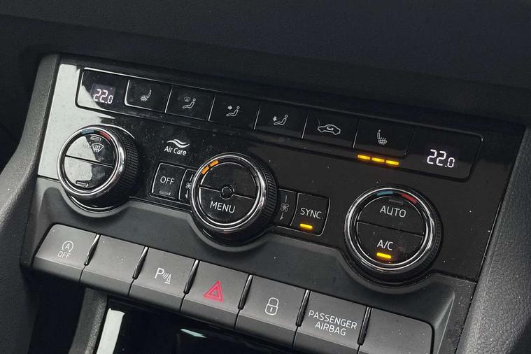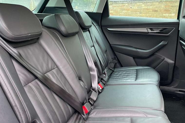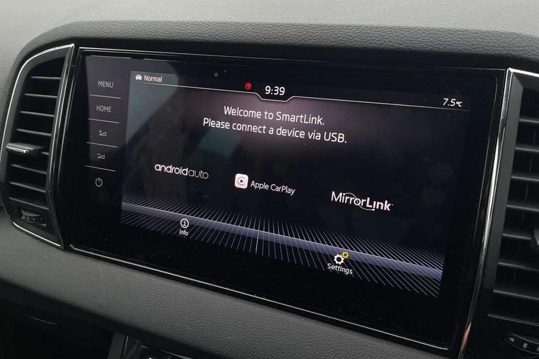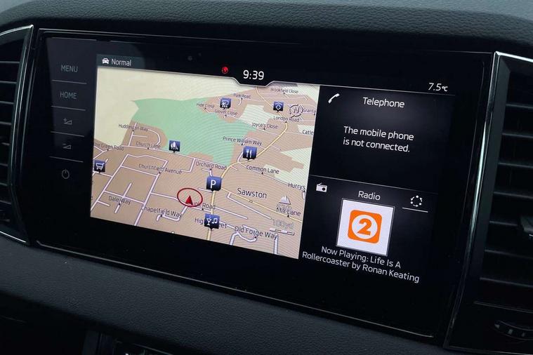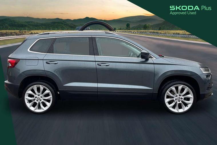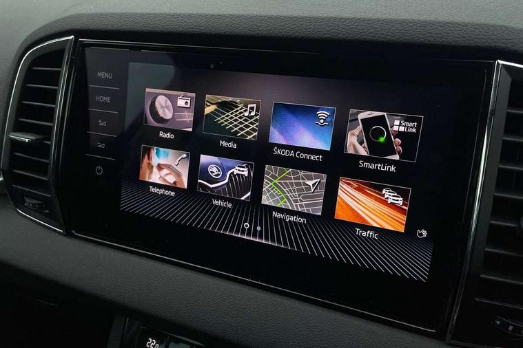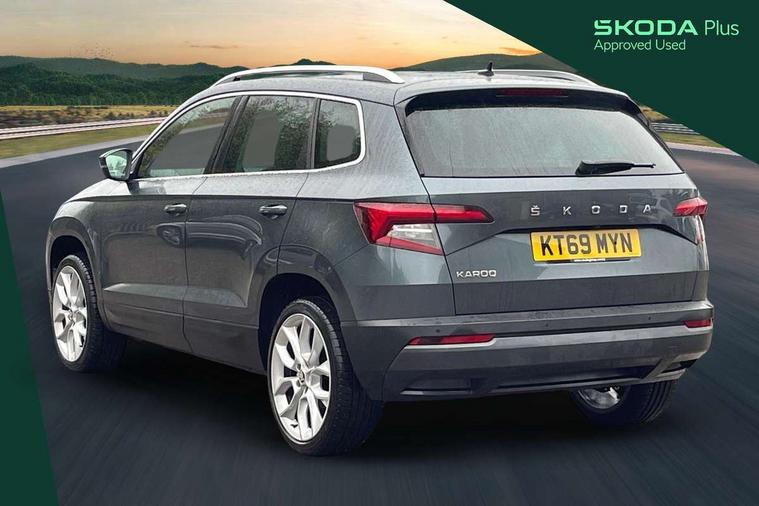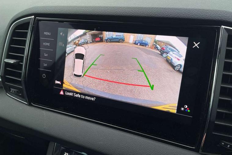 Columbus satellite navigation with 9.2" touchscreen display, integrated Wi-Fi, gesture control and WLAN, Drive mode selector, Driver alert system, Driver fatigue sensor, Driver profile selection, Multifunction colour trip computer, Outside temperature gauge, Rear cross traffic alert, Rear view camera, Service interval indicator, Start/stop system with regenerative braking, Traffic sign recognition, DAB radio with Bluetooth, SD card slot, USB connection, Acoustic glass, Aero front windscreen wipers with intermittent function, Automatic headlight control system, Black electric window control buttons, Body colour door mirrors and handles, Body coloured bumpers, Electric front and rear windows with child proof lock, Full LED headlights + adaptive front light system + LED daytime running lights and front cornering fog lights, Headlight washers, Heated rear windscreen, LED rear lights with high functionality, Light assistant (coming/leaving home/tunnel light), Panoramic sliding sunroof, Privacy glass, Safety reflectors on front doors, Third brake light, 1.5 litre bottle holders in driver and front passenger door panels, 12V socket in boot, 12v socket in front centre armrest with storage compartment and rear air vents, 2 Folding hooks and nets in boot, 2 Front readings lights for driver and passenger, 3 rear height adjustable headrests, 4 foldable roof handles with rear coat hooks, 4 lashing points on luggage floor, Backrest release, Cargo elements in boot, Chrome inner door handles, Dual zone climate control, Folding tables on the front seat backrests, Front seat and rear pockets, Height adjustable front three point seats belts with tensioners, Height adjustable passenger seat, Height/reach adjust steering wheel, Ice scraper, Illuminated and cooled glovebox, Illuminated luggage compartment, Isofix child seat preparation outer rear, Leather upholstery, Net programme in boot, Pen holder, Pollen filter, Rear boot cover, Rear reading lights, Rear seats fixed folding and divided 60:40, Removable LED torch in the boot, Retractable parcel shelf attachable to tailgate, Safety vest holder, Storage box in upper central dashboard closed, Storage compartment below the passenger seat, Sunvisors with illuminated vanity mirrors, Textile floor mats, Umbrella under passenger seat, VarioFlex seats with retractable parcel shelf, Chrome roof rails + chrome pack - Kodiaq, Electrically adjustable driver's seat with memory function pack - Karoq, LED Interior lighting pack with Skoda welcome logo - Karoq, Airbags - Front side, head, knee and curtain, Automatic door unlocking in case of crash, Automatic fuel cut off in case of crash, Driver airbag, Electronic parking brake with auto hold function, Emergency rear braking signal, ESC including ABS, MSR, ASR, EDS, HBA, DSR, RBS, MKB and traction control, Front assist radar scanning of the space in front of the car with automatic braking, Hill hold control, Passenger airbag with switch-off function, Pedestrian monitor, Seatbelt reminder signalisation and pretensioner for all seats, Three point seatbelts rear, Two tone horn, Tyre pressure display, Tyre pressure monitor, Alarm with interior monitoring, back up horn and tilt sensor with safe function, Electronic engine immobiliser, Keyless entry and keyless start with safe system, Remote central locking with 2 remote folding keys, Chrome framed air vents, 19" Crater silver alloy wheels with anti theft wheel bolts, Storage on wheel cover,