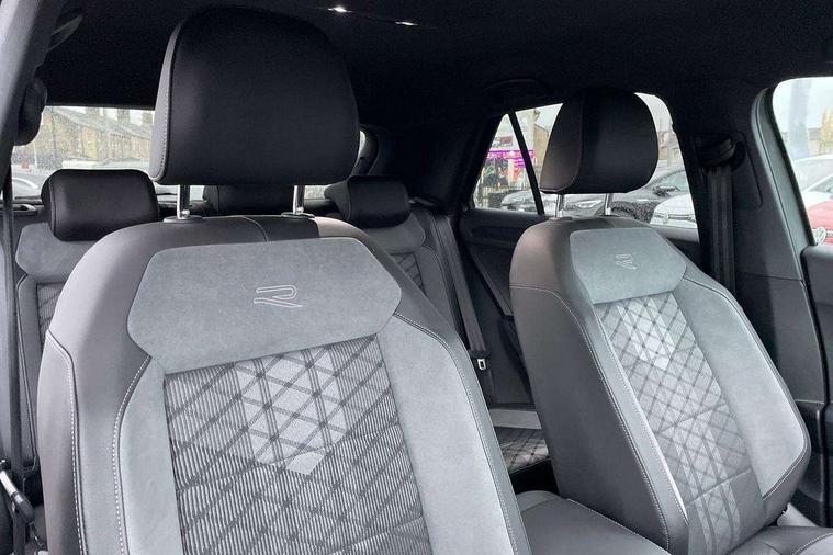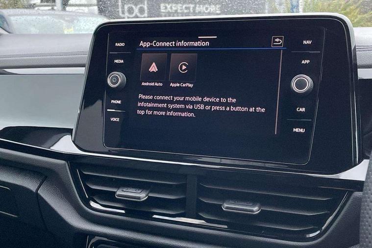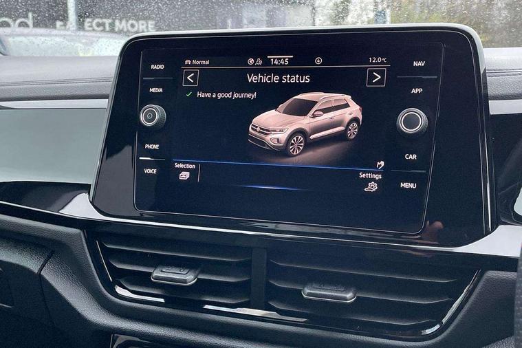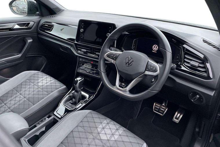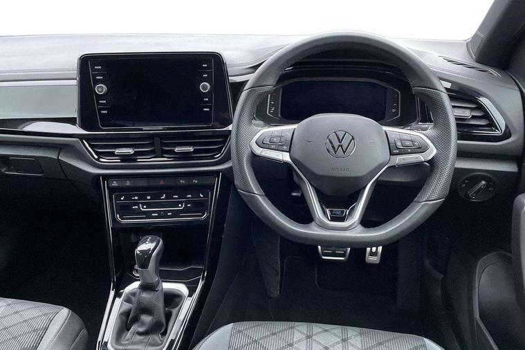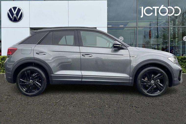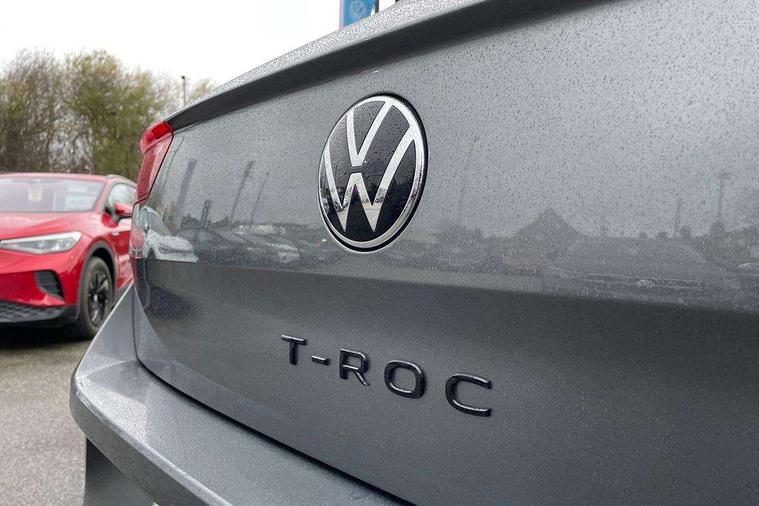10.25" Digital cockpit pro, Advanced driver attention and drowsiness monitor, Emergency call service, Lane keeping system Lane Assist, Mobile phone interface, Modified key software - reduce switch off time for key status change to Long no motion, Online services, Park assist including front and rear parking sensors, Power assisted speed sensitive steering, Service interval indicator, Tailgate/trunk lid release from outside, Think blue trainer driver tips and journey analysis, Warning sound and light for front seatbelts unfastened, Wireless app connect, Battery regeneration during braking, Rear shock absorption chassis with increased ride height, Start/stop function with battery regeneration, DAB Digital radio, Diversity antenna for FM reception, Front and rear 6 speakers, Music playback - MP3, WMA and AAC files, Premium USB cable in choice of either Apple or Android smartphone compatibility, SD card slot, Simultaneous pairing of 2 compatible mobile devices, Title and cover art display, We Connect and We Connect Plus functionality, Auto dimming interior rear view mirror, Automatic hazard lights activation under emergency braking, Automatic headlight control with LED separate daytime running lights with coming/leaving home function, Dynamic cornering light, Electrically adjustable and heated door mirrors, Extended roof spoiler, Exterior mirrors aspherical on driver side, convex on front passenger side, External USB type C socket and charging sockets, Front windscreen wiper with intermittent wipe and 4 position delay, Heated rear window, Illuminated front grille, IQ LED matrix headlights, LED 3rd brake light, LED rear number plate lights, LED rear tail lights with dynamic turn signal, Light mode for poor weather, rain, fog or snow, Power windows with comfort operation and circuit breaker, R-Line design body coloured bumpers, Rain sensor, Rear exhaust tailpipe, Rear fog light on one side and reversing lights on both sides, Rear side wing doors, Rear wash/wipe with intermittent wipe setting, Remote electrically foldable door mirrors, puddle lights and reverse activated passenger's door mirror, 12V power socket in centre console, 3 rear head restraints, 3 seat bench in 2nd row, 4 load lashing points in luggage compartment, Air care climatronic air conditoning system with active combination filter and 2-zone temperature control, Artvelours cloth upholstery, Black roof lining, Chrome plated radiator grille inserts, air vent surrounds and light switch surrounds, Door and side trim panel with leatherette insert, Drawer under drivers seat, Driver seat height adjust, Driver's seat lumbar support, Front + rear carpet mats, Front centre armrest, Front comfort sports seats, Front cupholders x 2, Front footwell illumination, Front reading light, Front scuff plates with R Line logo, Front seat back storage pockets, Glove compartment door with light, Instrument lighting, white adjustable panel illumination, Interior ambient lighting and surround lighting, Interior light delay, Isofix child seat preparation, Leather gearshift handle, Leather wrapped multifunction steering wheel with paddle shift, Load-through provision with cup holder when folded down ('Unsplit rear seat bench, split folding backrest, with centre armrest), Luggage compartment lighting, Non-folding front passenger seat backrest, Passenger seat height adjuster, Passenger seat lumbar support, Single front passenger seat, Stainless steel pedals, Storage compartment in left and right luggage area, Storage compartment in rear doors, Storage compartments in driver and front passenger doors, Sunvisors with illuminated vanity mirrors, Variable boot floor, height adjustable and removable, Winter pack without heated windscreen washer jets - T-Roc, 3 point height adj front seatbelts + pretensioners, 3 point seatbelts in outer rear with ECE label, ABS, Child locks on rear doors, City emergency braking and pedestrian monitoring, Driver and front passenger airbag with front passenger airbag deactivation, Driver and front passenger safety-optimised head restraints, Drivers seatbelt reminder, Electronic parking brake, Electronic Stability Control (ESC) inc EDL (Electronic Differential Lock) and ASR (Traction Control), Front and rear passengers curtain airbag system including front side airbags, Front disc brakes, Hill start assist, Predictive pedestrian protection, Rear disc brakes, Two tone horn, Tyre pressure loss indicator, Volkswagen roadside assistance, Tool kit, Trims for alloy wheels, Tyre mobility kit including compressor and sealing foam,