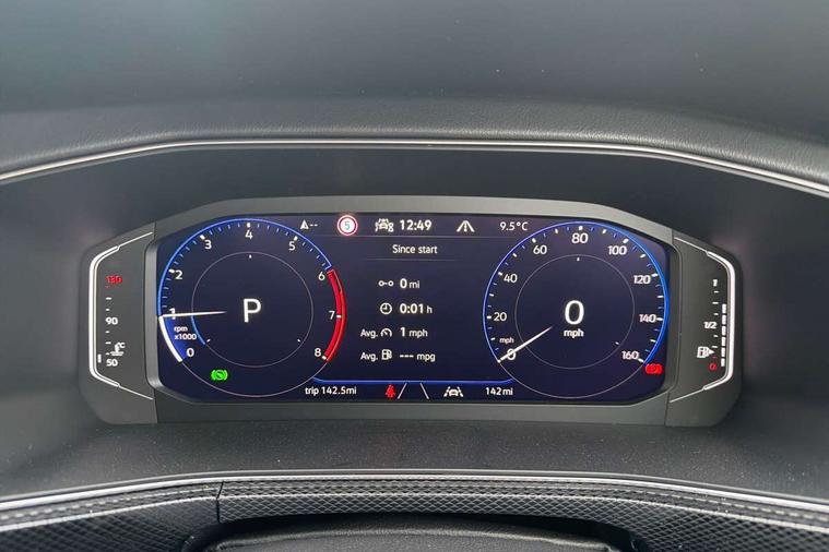 'Lights On' Reminder warning buzzer, 10.25" Digital cockpit pro, Advanced driver attention and drowsiness monitor, Bluetooth telephone and audio connection for compatible devices, Car information display, Driver profile selection including ECO function, Dynamic road sign display, E-Sim card for online connectivity, eCall emergency call system, Front and rear parking sensors, Front assist, forward collision warning, autonomous emergency braking and speed limiter, Low washer fluid warning light, Mobile phone interface with inductive charging, Multifunction computer with visual gear change recommendation for fuel consumption, Multifunction front facing camera for distance control, Operating permit alteration, Power assisted steering, Predictive adaptive cruise control, Preparation for navigation system with media and internet package, Preparation for We connect and We connect plus, Semi-automated driving assistance, travel assist including lane keeping system Lane Assist and emergency assisst, Side assist, Speedo, rev counter, electronic odometer, trip, service interval display, exterior temperature and fuel gauge, Warning sound and light for doors and tailgate open, Warning sound and light for front seatbelts unfastened, Wireless Car net app connect with Apple CarPlay, combined functionality of Apple CarPlay/Android Auto and MirrorLink, Wireless charging, Misfuel prevention device, Start-stop system with battery regeneration (recuperation - energy recovery during braking), 2 USB C ports in front, 2 USB charging sockets on the centre console in the rear charging capacity upto 45W, DAB Digital radio receiver, Diversity antenna for FM reception, Multi device interface (MDI) with USB connection, Music playback - MP3, WMA and AAC files, Radio, Advanced high beam control dynamic light assist, Automatic dimming interior rear view mirror, Automatic hazard lights activation under emergency braking, Automatic headlight control and coming home and leaving home feature, Black roof rails, Body colour door handles, Body coloured bumpers, Cornering light and poor weather light, Dynamic headlight range control, Electric folding door mirror, adjustable, heated with front passenger exterior mirror lowering function, Exterior mirror housings in black, Exterior mirrors convex on the left and aspherical on the right, Front and rear electric windows, Front door sill protectors with R-Line logo, Galvanised body, Heat insulating and laminated safety glass windshield, Heat insulating darkened glass in side and rear windows, Illuminated molding between headlamps, IQ.Light LED matrix headlamps with LED separate daytime running light, LED rear tail lights with dynamic turn signal, LED third brake light, Lower door sills and door pillars in black, Privacy glass for rear side windows and rear window, Rain sensor, Rear fog light on one side, reversing light on both sides, Rear side wing doors, Rear window aerial, Rear window wiper with intermittent control, Reflectors in all doors, Scuff plates, Tailgate with integrated roof spoiler, 12V Accessory socket in centre console, 2 Front and rear reading lights incorporating LED technology, 3 rear head restraints, 3 seat bench in 2nd row, 60/40 split folding rear seat backrest, Air care climatronic 2 zone air conditioning system, Ambient lighting and logo projection, Brushed stainless steel pedals, Chrome plated radiator grille inserts, air vent surrounds and light switch surrounds, Cloth upholstery, Comfort front sport seats, Door and side trim panel, Driver and front passenger sunvisor with vanity mirror, Dust and pollen filter, Front + rear carpet mats, Front centre armrest, Front centre armrest with storage compartment, Front footwell illumination, Front seat back storage pockets, Glove compartment door with light, Heated front seats, Heating and fresh air system with 4 stage blower, Height/reach adjust steering wheel, Instrument lighting white adjustable panel illumination, Interior light with switch off delay and dimmer, Isofix anchors for child seats on outer rear seats and front passenger seats, Leather gearshift handle, Leather wrapped multifunction steering wheel with paddle shift, Luggage compartment floor, Luggage compartment lighting, Manual front seats with height adjustment, Padded dashboard, Removable luggage compartment cover, Single front passenger seat, Storage compartment in drivers and front passengers door, Titanium black roof lining, Unsplit sliding rear seat bench, Without drawers under front seats, 3 point outer rear seat belts with ECE label, 3 Point seatbelt for centre rear seat, Anti-lock Braking System (ABS) with Hydraulic Brake Assist (HBA), Automatic post collision braking system, Disc brakes in front, Disc brakes in rear, Driver and front passenger safety-optimised head restraints, Drivers and Front Passengers airbags with front passengers airbag deactivation switch, ESC with EDL and ASR (traction control), Extended and predictive pedestrian/cyclist protection, Front and rear passenger curtain airbag system including front side airbags, Height adjustable front 3 point seatbelts + pretensioners, Hill start assist, Pre crash preventive occupant protection, Proactive passenger protection system in combination with front assist, Rear door child safety locks, Rigid safety cell with front and rear crumple zones, Single tone horn, Tyre pressure loss indicator, Volkswagen roadside assistance, Alarm with interior protection, Anti theft alarm system, Anti theft wheel bolts, Electronic engine immobiliser, Remote tailgate unlocking using key fob, Black decorative trims, Titanium Black Decorative inserts - R Line, 18" York alloy wheels in black, Low rolling resistance tyres,