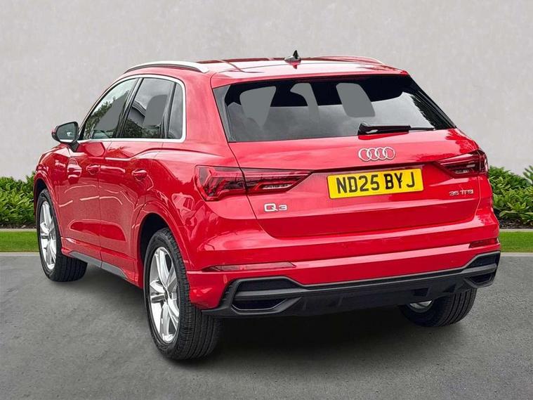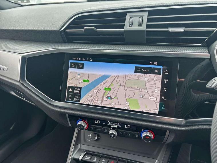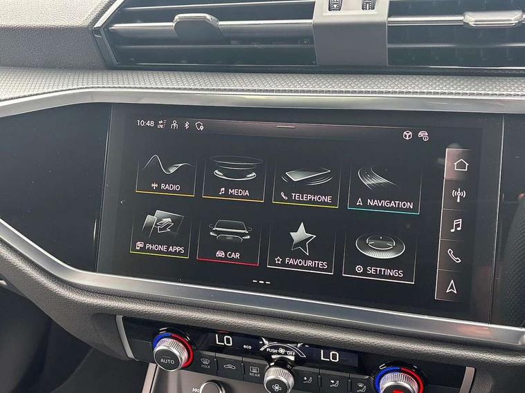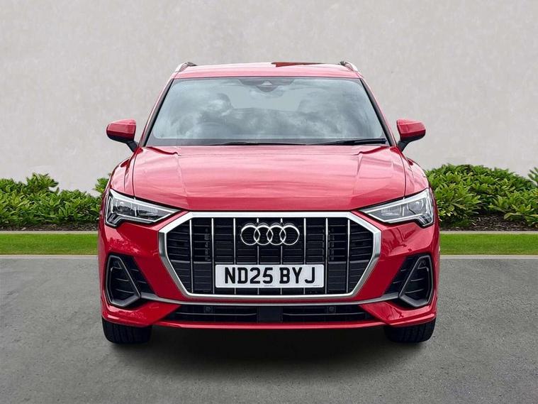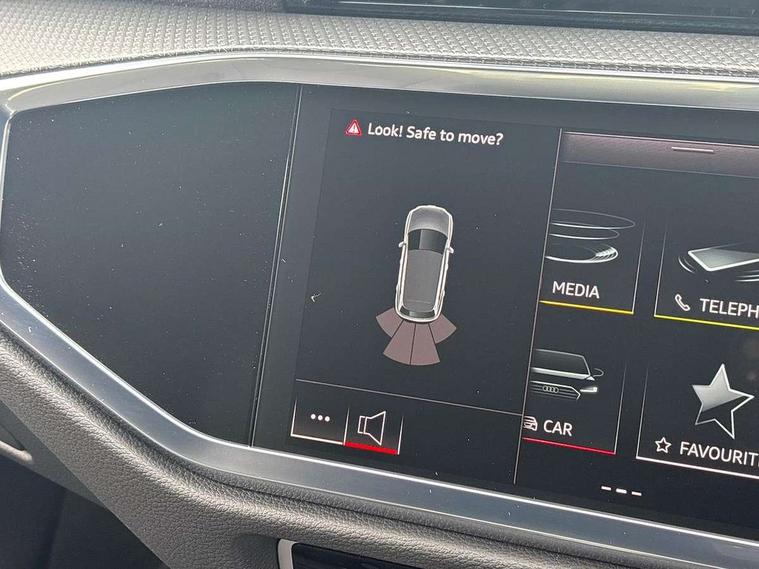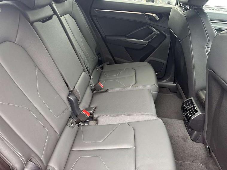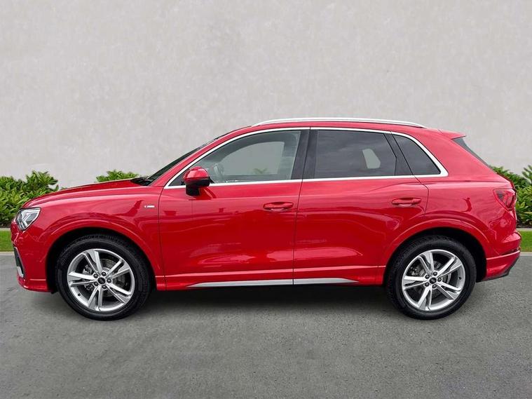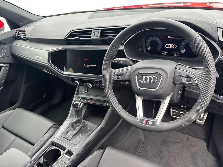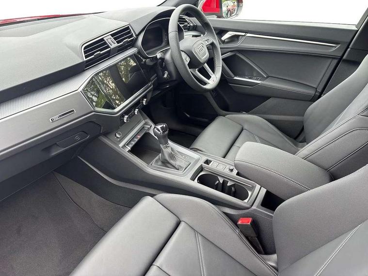 Amazon alexa Integration, Audi connect safety and service, Audi drive select, Audi lane departure warning, Audi Virtual Cockpit - 10.25" display, Bluetooth interface, Camera based traffic sign recognition, Distraction and Fatigue warning, Legal emergency call, MMI Navigation Plus with high resolution 10.1 inch touchscreen colour display, Power operated tailgate, Progressive steering, Service interval indicator, Smartphone interface includes wireless Apple carplay/Android Auto, Start stop system with recuperation, Voice control system with natural language interaction, Sports suspension, 2 USB-C ports with charge and data functions, 6 passive loudspeakers, DAB digital radio module, Acoustic windscreen, Aluminium roof rails, Aluminium window trim, Anthracite black radiator grille, Auto dimming door mirrors, Auto dimming frameless rear view mirror, Body colour front spoiler blade, Electrically folding, adjustable and heated door mirrors with integrated LED side indicators and kerb view function for passenger side, Front and rear electric windows, Front fog lights, Front side air inlets in matt platinum grey, Grille vertical bars in aluminium silver/Matt, High gloss black finish B and C pillars, LED Dynamic rear indicators, LED headlights with LED daytime running lights, LED rear lights, LED third brake light, Privacy glass dark tinted rear and rear-side windows (from B-pillar backwards), Rain and light sensors, Rear diffuser grille in grained matt black, Rear diffuser strip in matt anthracite black, Rear side wing doors, Rear wiper, S line badges on front wings, S Line front and rear bumpers and side skirts, Side skirt insert in matt Platinium grey, Variable front intermittent wipers, 12V socket in rear centre console, 3 seat bench in 2nd row, 3 spoke leather multifunction steering wheel features S badging and grips in perforated leather with contrast stitching, 40:20:40 folding with manual adjustment for 60:40 forwards/backwards position and backrest angle, Adjustable rear seat bench/backrest with centre armrest and cupholder, Black carpet mats, Black cloth headlining, Dual zone electronic climate control, Electric lumbar support, Front and rear black floor mats with contrast stitching in rock grey, Front and rear headrests, Front centre armrest, Height and reach adjustable steering wheel, Horizontal trim strip in matt platinum grey, Illuminated door sill trims with S logo, ISOFIX child seat mounting for front passenger with airbag deactivation and outer rear seat including top tether attachment point for outer rear seats, Luggage compartment sill protection in stainless steel, Manual front seats with height adjustment, Perforated leather gearknob, Single front passenger seat, Stainless steel pedals, Twin leather upholstery with front sport seats + S embossing, Non smoking pack - Q3, 3x3 point rear seatbelts, 6 airbags - Driver, front passenger, curtain and side windows, Audi pre-sense front with pedestrain and cyclist recognition, Electrically operated child locks on rear doors, Electromechanical parking brake, Electronic stabilisation control including ABS, ASR and EDL, Front seatbelt reminder, Hill descent control, Hill hold assist, Pre sense basic, Seatbelt monitoring, Tyre pressure warning, Warning triangle and first aid kit, Anti theft wheel bolts, Immobiliser, Remote central locking, Thatcham approved category 1 anti theft alarm, Aluminium look interior elements, Dark matt brushed aluminium inlay, Detail dashboard around MMI touch colour display in glass look, black with surround in aluminium look, Leatherette door armrest,
