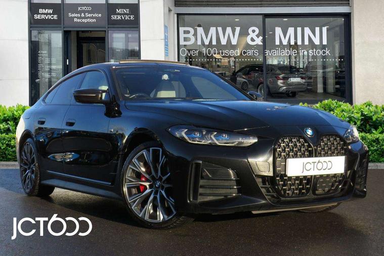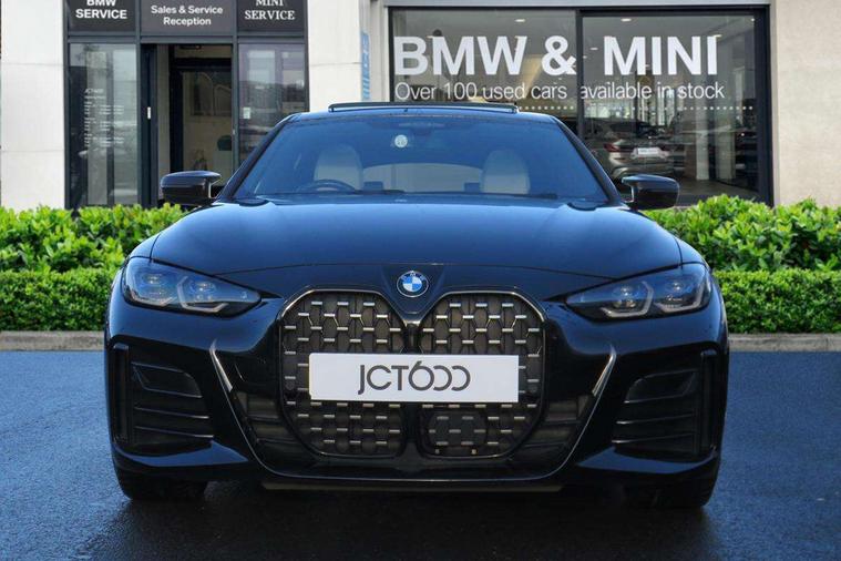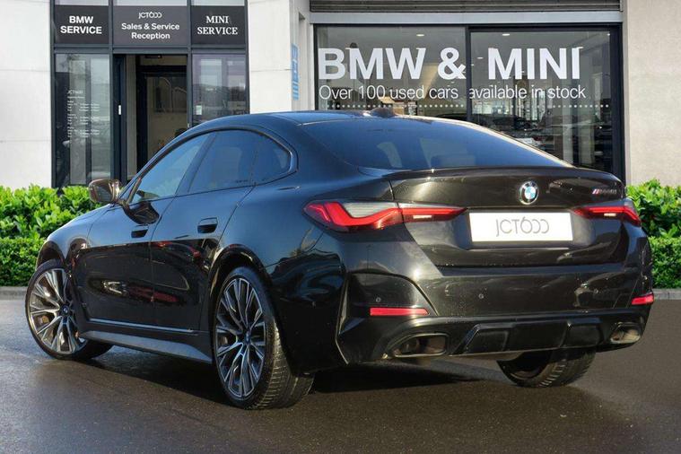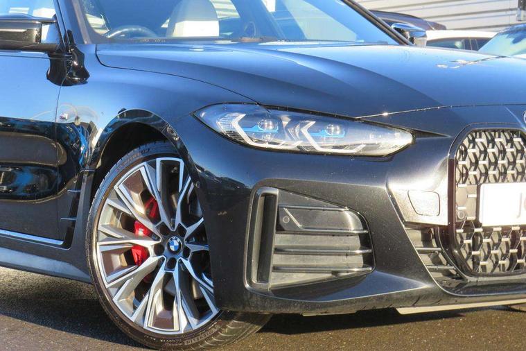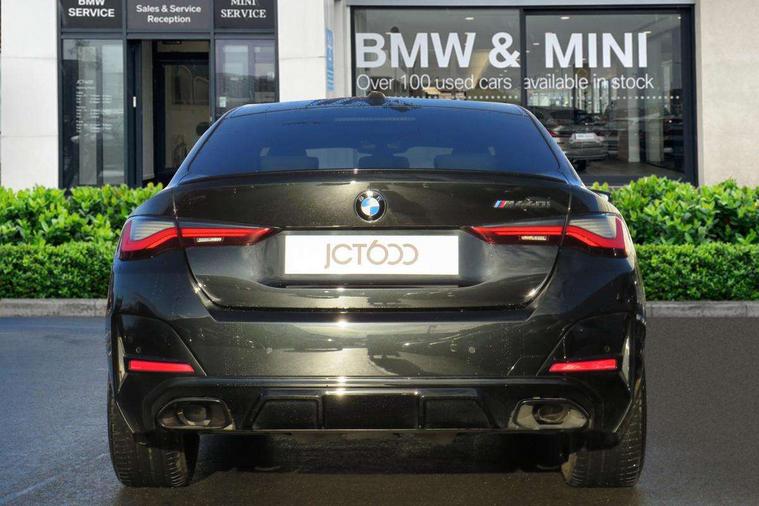 Active guard plus, Attentiveness assist, Auto start-stop, Bluetooth hands free facility with USB audio interface with audio streaming, BMW ConnectedDrive online services, BMW iDrive controller on centre console, BMW service history, BMW Teleservices, Brake pad wear indicator in front and rear, Check Control warning system for monitoring of lights and door/luggage compartment open warning, Condition based service, Electric bootlid, Electric power steering with Servotronic steering optimised at all speed ranges, Gearshift time display in manual mode, Instrument cluster with speedometer with mph readout, tachometer, fuel gauge and oil temperature gauge, Integrated owners handbook, Oil sensor for level and grade, warning by check control system, On board computer - average speed, fuel consumption, outside temp display with acoustic warning, clock/date, service interval, odometer/trip meter, Optimum shift indicator, Shifting point display, Tailgate, Variable sport steering, 48V Mild hybrid technology, 8 speed automatic steptronic transmission with gearshift paddles, Active sound design, Adaptive M suspension, Double joint spring strut front axle, Drive performance control - ECO PRO, comfort and sport modes, Low centre of gravity, M Sport differential, Petrol Particulate Filter, Sprint mode, Stroke dependent dampers, xDrive system permanent all-wheel drive variable torque distribution, 2x USB Type C ports in front centre console for charging and data transfer, 2x USB Type C ports in rear centre console for charging, DAB tuner, Electronic service booklet, Acoustic glazing, Automatic headlight beam throw control with load dependent regulating reaction, dynamic compensation of braking dive and acceleration squat, Automatic windscreen wipers and automatic headlight, Automatically dimming electrochromatic rear view mirror, BMW emblem on engine compartment lid and tailgate, BMW Individual high gloss shadow line with extended contents, BMW individual lights shadow line, Body colour fuel filler flap, Body colour roof fin, Brushed aluminium inserts in the front door sill finishers with BMW designation, Door sill strips, Dynamic brake lights, Electric windows - front and rear, with open/close fingertip control, anti trap facility and comfort closing function all round, Exterior mirrors - electrically folding with anti-dazzle, Fading support, Follow me home headlights, Front and rear bumper system, Front apron plastic in body colour, Green tinted heat protection glazing, High gloss shadow line exterior trim, Illuminated bow type door handles in body colour drivers side with door lock, Interior rear view electrochromatic mirror with automatic anti dazzle function, LED daytime running lights, LED front indicators, Licence plate panel integrated into front bumper and tailgate, Lightweight engineering, M designation on front side panels, left and right, M rear boot spoiler, Model designation on right side of tailgate, One piece front bumper cover including towing eye cover in body colour, Preparation for high beam assistant, Rear side wing doors, Rear wiper, Reversing light, Side frame decorative moulding black matt, Sun protection glass, Two part LED tailights in L-shape with components in smoked glass, brake light, LED turn indicator and rear fog light, Visible exhaust tailpipe finisher, Visible VIN plate, Welcome lights in interior and door handle area, Widened track and increased camber values for max transverse dynamics, agility and steering precision, Window recess cover black high gloss, Windscreen wipers with integrated heated washing jets, xDrive designation on left tailgate, 12V power socket in front centre console, 2 front cupholder in centre console with clamping elements and matt black inlay, 3 rear headrests, 3 seat bench in 2nd row, 3 spoke M sport leather multifunction steering wheel, 3 zone automatic air conditioning, 4 pieces lashing eyelets in luggage compartment, 40:20:40 split folding rear seat and rear centre armrest with two cupholders, Anthracite headlining, Armrest integrated in front and rear door trim + front centre console armrest, Battery in luggage compartment, BMW ID, Extended storage in Combination with sport seat net pocket on rear backrest, Four grab handles integrated in roof lining, Front and rear door pockets, Front and rear reading lights, Heated driver and front passenger seats, Height adjustable front headrests, Height adjustable mechanically and infinitely variable steering column, Illuminated armrest storage compartment, Illuminated glove compartment with separate small compartment, Luggage compartment seprating net on side trim left/right, Bag hook, 12V socket, TTH button, USB C charging in rear, Folding compartment on driver side, Make-up mirror lights, Single front passenger seat, Storage compartment in rear centre console, Sunvisors with illuminated vanity mirrors and ticket pocket, Toolkit located in luggage compartment, Velour front floor mats, Ambient lighting pack - 4 Series, Connected professional package - 4 Series, M sport exterior styling pack - 4 Series M440i, 3 point seatbelts on all seats, Battery safety cut-off, BMW emergency call, Brake energy regeneration, Braking pre-tensioning, Child proof locking system in rear door, Child seat ISOFIX attachment for the two outer rear seats, Coasting in idle in ECO PRO mode, Cornering brake control (CBC), Crash sensor activating of airbags, Unlocking doors, hazard warning lights, interior light, safety battery terminal, Driver and front passenger side airbags, integrated in the door side seat backrest bolsters for all seat variants, Driver/Front Passenger airbags, Dry braking, Dynamic brake control, Dynamic stability control + (DSC+) - Anti-lock Braking System (ABS) with brake assist and cornering brake control + Automatic Stability Control (ASC), Dynamic Traction Control - DTC, Electric parking brake including automatic hold function and automatic release of the parking brake when driving off, Electronic differe