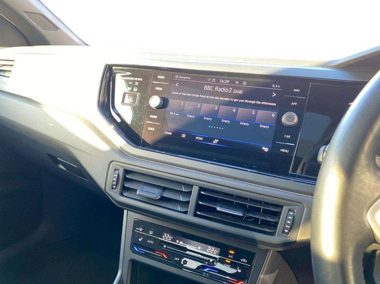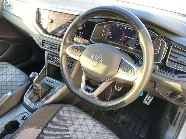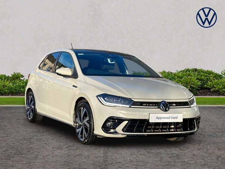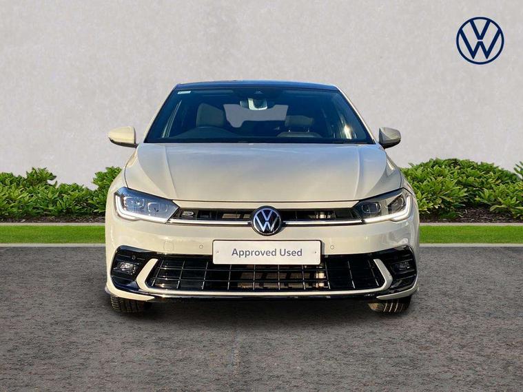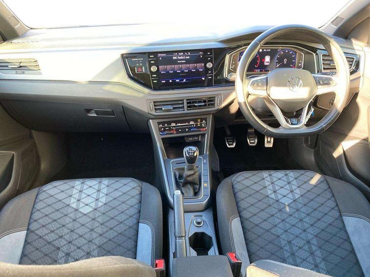 Adaptive cruise control without follow-to-stop and speed limiter, Bluetooth mobile phone interface, Digital Cockpit Pro with 10.25" Display, Driver alert system, Dynamic road sign display, Emergency call service, Power assisted speed sensitive steering, Preparation for We connect and We connect plus, Speedo and rev counter, electronic odometer, trip, service interval display and fuel gauge, Standard rear axle, Travel Assist - Lane keeping system and traffic jam assist, Travel assist including emergency assist, Trip computer, Warning signal and warning light for front and rear seatbelts not fastened, Washer fluid level indicator, Wireless app connect, Front wheel drive, Rear shock absorpion, Start-stop system with battery regeneration (recuperation - energy recovery during braking), DAB Digital radio, Diversity antenna for FM reception, Front and rear 6 speakers, Body colour bumpers, Body colour door handles, Body colour door mirrors, Electric front windows, Front scuff plates with R-Line logo, Heat insulating darkened glass in side and rear windows, Heat insulating glass windscreen, Power folding adjustable/heated exterior mirrors and front passenger exterior mirror lowering function, Rear electric windows, Rear fog light, Rear side wing doors, Rear tinted glass from B-pillar backwards approx 65% tinted, Rear windscreen washer and wiper with interval delay, Third brake light, 12V power socket in centre console, 2 USB-C ports in the front, 2 USB-C charging sockets on the center console in the rear, 3 rear head restraints, 60/40 split folding rear seat and rear seat bench not split, Air care climatronic air conditoning system with active combination filter and 2-zone temperature control, Black roof lining, Ceramique headliner, Chrome plated radiator grille inserts, air vent surrounds and light switch surrounds, Door and side trim panel, Driver and front passenger seat height adjustment, Driver/passenger sunvisors with illuminated vanity mirrors, Front + rear carpet mats, Front centre armrest, Front footwell illumination, Front seat backrest storage pockets, Front sports comfort seats, Handbrake lever handle in leather, Isofix child seat preparation easy-fit (for two outer rear seats, and front passenger seat) compatible with I-size, Karoso artvelours cloth upholstery, Leather trimmed gear knob, LED interior light with switch off delay and dimmer, 2 reading lights front and rear, Luggage compartment cover, Luggage compartment floor, Luggage compartment lighting, Lumbar adjustment for front seats, Multifunction steering wheel, Single front passenger seat, Stainless steel pedals, Standard pedal cluster, Light and sight pack - Polo R-Line/Black Edition, 3 point height adj front seatbelts + pretensioners, 3x3 point rear seatbelts, ABS, Driver and front passenger airbag with front passenger airbag deactivation, Drivers and front passengers safety optimised head restraints, ESC (Electronic stability control) + EDL (Electronic Differntial lock) and ASR (Traction control), Extended and predictive pedestrian/ cyclist protection, Front curtain and side airbags with center airbag, Hill hold control, Manual child lock in rear doors, Single tone horn, Tyre pressure loss indicator, Alarm with interior protection, Anti-theft alarm system with interior monitoring, backup horn, and towing protection, Anti-theft wheel bolts, Electronic engine immobiliser, Chrome applications on rotary light, mirror adjustment, window regulator switches, outlet with frame in black, Dark grey anodised matt decorative inserts in dash and front door panels, Low rolling resistance tyres,