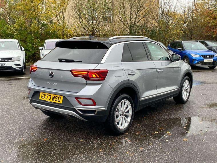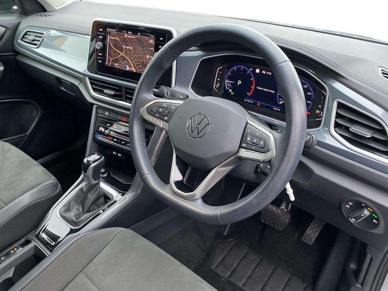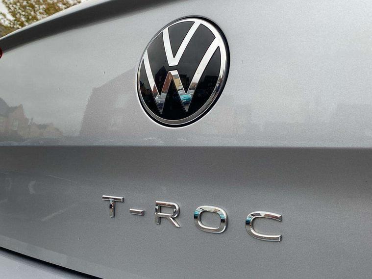 10.25" Digital cockpit pro, Bluetooth mobile phone interface, Driver alert system with fatigue detection, Driver tips and journey analysis, Emergency call service, Lane keeping system Lane Assist, Modified key software - reduce switch off time for key status change to Long no motion, Online services, Park assist including front and rear parking sensors, Service interval indicator, Tailgate/trunk lid release from outside, Think blue trainer driver tips and journey analysis, Warning sound and light for front seatbelts unfastened, Wireless app connect, Battery regeneration during braking, Start/stop function with battery regeneration, Diversity antenna for FM reception, Music playback - MP3, WMA and AAC files, Premium USB cable in choice of either Apple or Android smartphone compatibility, SD card slot, Simultaneous pairing of 2 compatible mobile devices, Title and cover art display, We Connect and We Connect Plus functionality, 3rd brake light, Auto dimming interior rear view mirror, Automatic hazard lights activation under emergency braking, Automatic headlight control with LED separate daytime running lights with coming/leaving home function, Body colour sports bumpers with silver metallic underbody fascia, Dynamic headlight range control with self adjusting whilst driving, Extended roof spoiler, Exterior mirrors aspherical on driver side, convex on front passenger side, External USB type C socket and charging sockets, Front windscreen wiper with intermittent wipe and 4 position delay, Heated rear window, LED rear combination lamps, LED rear number plate lights, LED tail lamp rear comination lamps, Light mode for poor weather, rain, fog or snow, Power windows with comfort operation and circuit breaker, Rain sensor, Rear exhaust tailpipe, Rear fog light on one side and reversing lights on both sides, Rear side wing doors, Rear wash/wipe with intermittent wipe setting, Remote electrically foldable door mirrors, puddle lights and reverse activated passenger's door mirror, 12V power socket in centre console, 3 rear head restraints, 3 seat bench in 2nd row, 4 load lashing points in luggage compartment, Air care climatronic air conditoning system with active combination filter and 2-zone temperature control, Chrome plated radiator grille inserts, air vent surrounds and light switch surrounds, Door and side trim panel with leatherette insert, Drawer under drivers seat, Front + rear carpet mats, Front centre armrest, Front comfort sports seats, Front cupholders x 2, Front footwell illumination, Instrument lighting, white adjustable panel illumination, Interior ambient lighting and surround lighting, Interior light delay, Isofix child seat preparation, Leather gearshift handle, LED interior light with switch off delay/dimmer and 2 front/rear LED reading lights, Load-through provision with cup holder when folded down ('Unsplit rear seat bench, split folding backrest, with centre armrest), Luggage compartment lighting, Non-folding front passenger seat backrest, Single front passenger seat, Storage compartment in left and right luggage area, Storage compartment in rear doors, Storage compartments in driver and front passenger doors, Sunvisors with illuminated vanity mirrors, Variable boot floor, height adjustable and removable, Driver assistance pack without proactive passenger protection - T-Roc, 3 point height adj front seatbelts + pretensioners, 3 point seatbelts in outer rear with ECE label, ABS, Child locks on rear doors, Driver and front passenger airbag with front passenger airbag deactivation, Driver and front passenger safety-optimised head restraints, Drivers seatbelt reminder, Electronic parking brake, Electronic Stability Control (ESC) inc EDL (Electronic Differential Lock) and ASR (Traction Control), Front and rear passengers curtain airbag system including front side airbags, Front assist with city emergency braking and pedestrian monitoring, Front seat side impact airbags, Predictive pedestrian protection, Rear disc brakes, Single tone horn, Tyre pressure loss indicator, Volkswagen roadside assistance, Anti-theft alarm system with interior monitoring, backup horn, and towing protection, Remote central locking with SAFELOCK, radio remote control with 2 remote control folding keys, Trims for alloy wheels,