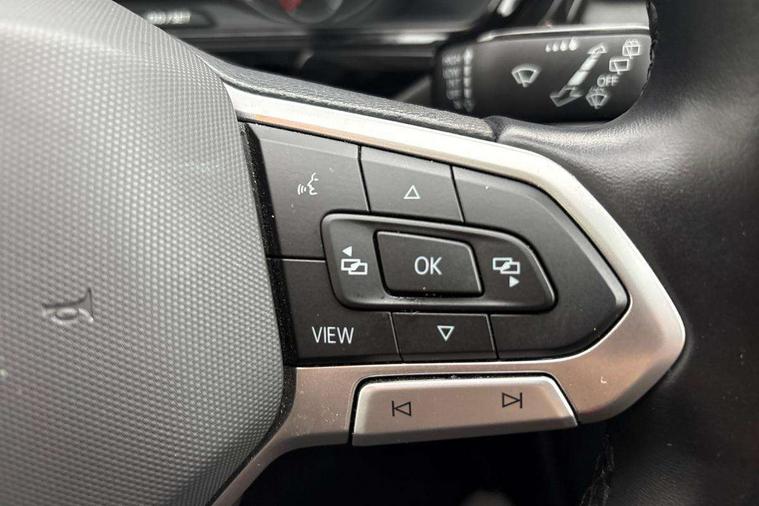 'Lights On' Reminder warning buzzer, Adaptive cruise control including front assist, forward collision warning, autonomous emergency braking, speed limiter, Blind spot monitoring, Bluetooth telephone and audio connection for compatible devices, Car information display, Digital cockpit, Driver alert system, eCall emergency call system, Lane assist, Low washer fluid warning light, Multifunction computer with visual gear change recommendation for fuel consumption, Operating permit alteration, Power assisted speed sensitive steering, Speedo, rev counter, electronic odometer, trip, service interval display, exterior temperature and fuel gauge, Stop/start system, Warning sound and light for doors and tailgate open, Warning sound and light for front seatbelts unfastened, We Connect Go Dongle, Wireless Car net app connect with Apple CarPlay, combined functionality of Apple CarPlay/Android Auto and MirrorLink, Battery regeneration during braking, Misfuel prevention device, 2x USB connection with USB charging sockets and in rear centre console, DAB Digital radio receiver, Diversity antenna for FM reception, Multi device interface (MDI) with USB connection, Music playback - MP3, WMA and AAC files, Premium USB cable for Apple or Android smartphone compatibility, Simultaneous pairing of 2 compatible mobile devices, Title and cover art display, Automatic hazard lights activation under emergency braking, Black door mirrors, Black roof rails, Body colour door handles, Body coloured bumpers, Dusk sensor + automatic driving lights, Electrically foldable, adjustable and heated door mirrors with reverse activated kerb view adjustment on passenger's side, Front and rear electric windows, Front fog lights with static cornering function, Galvanised body, Heated rear window, LED third brake light, Lower door sills and door pillars in black, Radiator grille with high gloss surface and chrome strip, Rear fog light on one side, reversing light on both sides, Rear lights incorporating LED technology, Rear side wing doors, Rear tinted glass 65% approx light absorbing from B pillar backwards, Rear window aerial, Rear windscreen washer and wiper with interval delay, Reflectors in all doors, Tailgate with integrated roof spoiler, Windscreen wipers/ intermittent wipe + 4 position delay, 12V Accessory socket in centre console, 3 rear head restraints and 3 rear three point seat belts with ECE label, 3 seat bench in 2nd row, 60/40 split folding rear seat backrest, Comfort front sport seats, Diag cloth upholstery, Drawer under drivers seat, Driver and front passenger sunvisor with vanity mirror, Driver's sunvisor with ticket holder, Dust and pollen filter, Front + rear carpet mats, Front and rear reading lights X 2, Front centre armrest with storage compartment, Front seat back storage pockets, Front seats with adjustable lumbar support, Glovebox, Heating and fresh air system with 4 stage blower, Height/reach adjust steering wheel, Instrument lighting white adjustable panel illumination, Interior light with delay, Isofix child seat preparation for 2 rear child seats, Luggage compartment cover, Luggage compartment lighting, Manual air conditioning, Moveable and foldable Rear bench seat, Storage compartment in drivers and front passengers door, Three spoke multi-function leather trimmed steering wheel and gearknob, Variable boot floor, Anti-lock Braking System (ABS) with Hydraulic Brake Assist (HBA), Automatic post collision braking system, Driver and front passenger safety-optimised head restraints, Drivers and Front Passengers airbags with front passengers airbag deactivation switch, ESC with EDL, ASR, EDTC and trailer stabilisation function, Front and rear curtain airbags, Front seat side impact airbags, Height-adjustable front three-point seat belts with tensioners, Hill start assist, Pre crash preventive occupant protection, Rear door child safety locks, Rigid safety cell with front and rear crumple zones, Single torn horn, Tyre pressure loss indicator, Volkswagen roadside assistance, Alarm with interior protection and deactivation via infotainment system, Child security locks in rear doors, Electronic engine immobiliser, Remote tailgate unlocking using key fob, Decorative inserts transition high gloss black/platnium grey, 17" Manila black diamond turned surface alloy wheels + anti theft wheel bolts, Breakdown kit,
