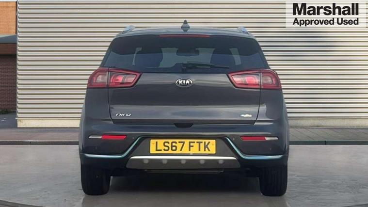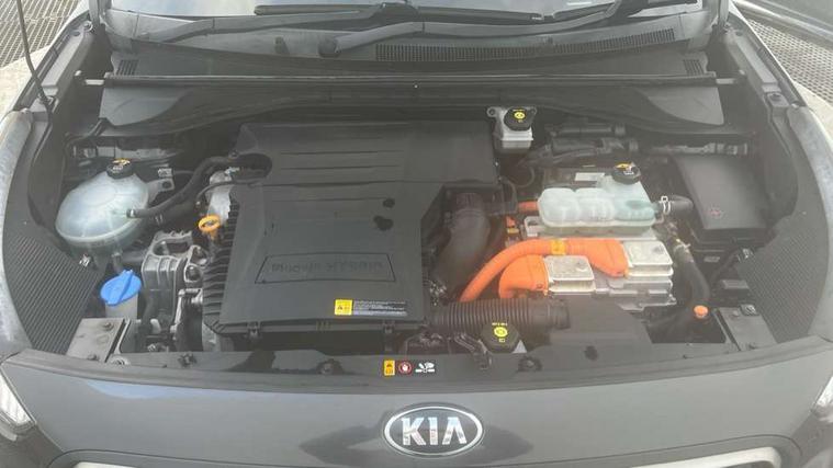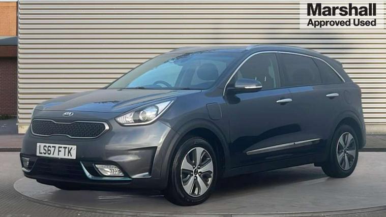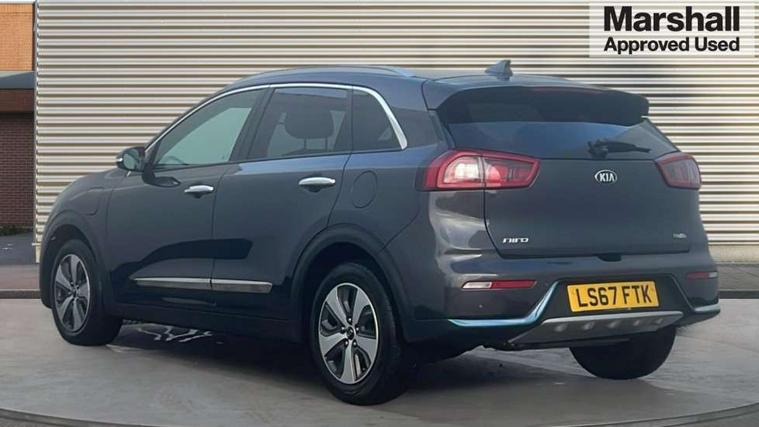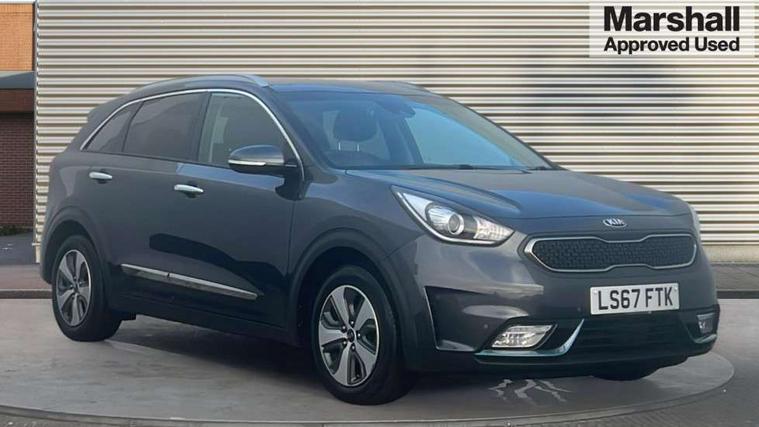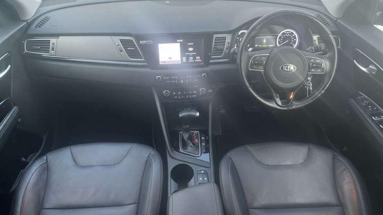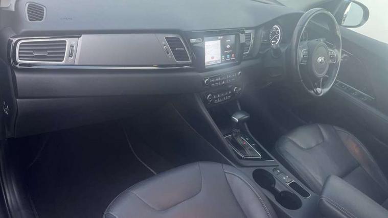8" touch screen sat nav with TMC, Apple car play/Android Auto, Bluetooth audio streaming with voice recognition, Colour information display, Digital clock, Drive mode selector, Emergency stop signalling system, Front parking sensors, Kia connected services, Lane keep assist, Power Steering, Rear parking sensors, Reversing camera, Trip computer, Wireless Smartphone charger, 8 speakers, DAB Radio with MP3, JBL Premium Sound System, Steering wheel mounted controls, USB/iPod/auxiliary input connections, Auto dimming rear view mirror, Automatic defog system, Automatic headlight control system, Black side sills, Body colour bumpers, Chrome beltline trim, Chrome door handles, Chrome grille surround, Driver's side wide angle mirror, Electric adjustable/heated/folding door mirrors, Electric windows one touch open/close, Follow me home headlights, Front fog lights, High gloss black door mirrors, LED daytime running lights, LED indicators in door mirrors, LED tail lights, Matt black radiator grille, Privacy glass (rear side windows and rear screen), Rain sensing front wipers, Rear spoiler, Rear wiper, Roof rails, Solar glass, Wheel arch mouldings, 12V power in rear centre console, 60/40 split/folding 2nd row of seats, 8 way electric adjustable drivers seat, Ambient lighting, Assist grips, Centre console storage box, Door armrest in leather, Driver's electric lumbar adjustment, Driver/passenger sunvisors with illuminated vanity mirrors, Dual zone automatic air conditioning, Front and rear door pockets, Front map light with sunglasses case, Front seatback pocket, Front/rear centre armrests, Headlining in Light grey, Heated front seats, Heated steering wheel, Height adjustable headrests, High gloss black steering wheel trim, Illuminated ignition key hole, Isofix child seat attachment, Leather trimmed gearshift, Leather trimmed steering wheel, Leather upholstery, Luggage area lamp, Luggage compartment cover, Luggage net with hooks, Rear armrests with cupholder, Satin chrome interior door handles, Stainless Steel Scuff Plates, Tilt/telescopic adjustable steering wheel, Ventiliation ducts to rear compartment, Advanced Driver Assistance Pack - Niro, 3 point seatbelts on all seats, ABS, Active front headrests, Automatic unlocking of doors in case of impact, Curtain airbags, Drivers knee airbag, Electronic stability control, Height adjustable front seatbelts, Hill start assist control (HAC), Passenger airbag deactivate switch, Traction control, Twin front and side airbags, Tyre pressure monitoring system, Anti theft alarm system, Deadlocks, Folding key, Immobiliser, Locking wheel nuts, Remote central door locking, High gloss black centre fascia, High gloss black door inserts, 16" alloy wheels with plastic wheel cover, Tyre mobility system,