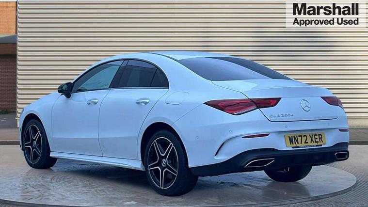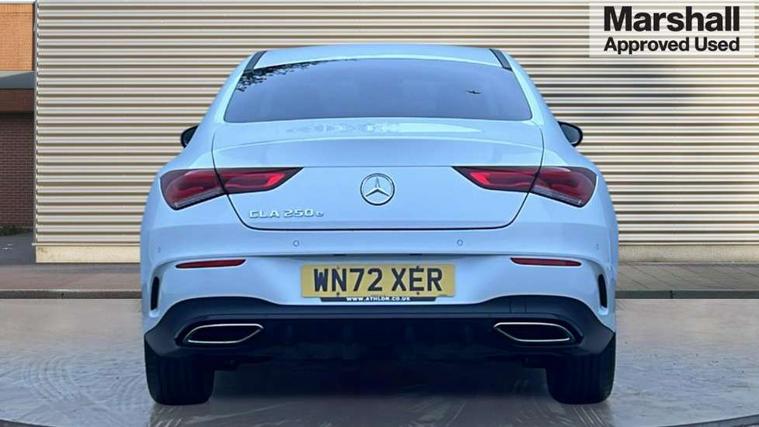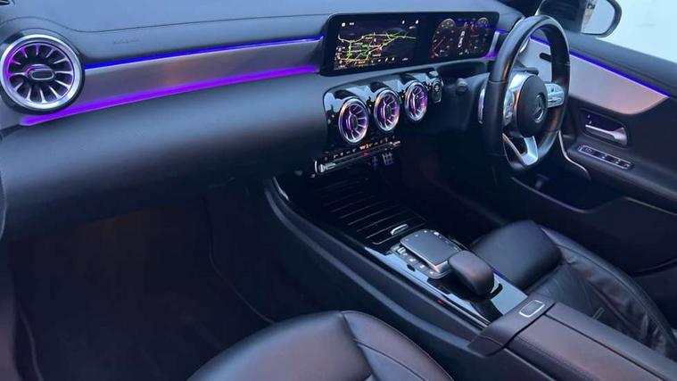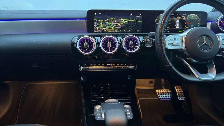 10.25 inch Instrument display with digital cockpit, 10.25 inch touchscreen central media display, Acoustic ambient protection, Active lane keeping assist, Attention assist - Monitors steering behaviour and long journey fatigue, Bluetooth connection, Car wash mode, Cruise control with limiter, Direct steer system with speed sensitive power steering, DYNAMIC SELECT with a choice of driving modes (ECO, Comfort, Sport and Individual), ECO start/stop function, Fluid level warning indicator for fuel, oil, coolant and washer fluid, Hard-disk navigation, Hey Mercedes Voice activation, Lamp failure indicator, Mercedes me connect including emergency call system, accident recovery, breakdown and maintenance management, Mercedes me remote services, Outside temperature gauge, Owners manual and service booklet in English, Pre-installation for remote and navigation services, Pre-installation of private car share, Preinstallation for Mercedes Benz link, Radio aerial integrated into front and rear windshields, Remote and charging services plus, Service indicator (ASSYST), Smartphone integration with Apple CarPlay and Android auto, Speed limit assist, Trip computer in multifunction display with current consumption indicator, 4m charging cable for wall box/charging stations, 7.4 kW onboard charger, Charging system - AC charging system rated at 7.4 kW, Comfort suspension, Rear axle multi-link, DAB digital radio tuner, MBUX multimedia system, Mid-range sound system, USB (type C) ports (2) in stowage compartment and 1 in front of centre console, Adaptive brake lights, AMG body styling with AMG front apron and rear apron and visible exhaust tailpipe in chrome trim elements, AMG bodystyling side skirts, Body colour bumpers, Body colour door handles, Chrome beltline strips, Diamond radiator grille pins in chrome, Electric windows, Electrically adjustable and heated door mirrors with integrated LED indicators, Exhaust system with 2 Visible tailpipe trim elements and rear apron with trim in chrome, Headlamp assist automatic headlamp activation, Heated glass rear windscreen + timer control, High level LED third brake light, Interior mirror with black reading lamps and frameless, LED high performance headlamps with integrated LED daytime running lights, LED tail lamp, Privacy glass with dark tinting on rear side windows and rear window, Rain sensing windscreen wipers with two sensitivity settings, Rear boot, Rear fog lamp, Rear side wing doors, Variable front intermittent wipers, Window line trim strip in chrome, 3 seat bench in 2nd row, 3 spoke flattened bottom nappa leather multifunction steering wheel with perforated leather in grip area, 40:20:40 split folding rear seat backrests, Air conditioning - Two zone thermotronic luxury automatic climate control with display, Air vents with surround in silver chrome, Artico man-made leather upholstery, Automatic child seat recognition sensor, Black roof lining, Brushed stainless steel sports pedals with rubber studs, Charging socket, Floor mats with stitched AMG lettering, Front centre armrest with stowage, Galvanished gear shift paddles on steering wheel, Heated front seats, Illuminated front door sills with changeable cover, Illuminated glove compartment stowage, Interior lighting - 64 colour Ambient lighting, Luggage net on driver/front passenger seat backrest, Manually adjustable front seats, Manually height and reach adjustable steering column, Pre-entry climate control, Rear armrest with two integral cup holders for drinks, Rear head restraints, Single front passenger seat, Sport seats with fixed head restraints, Stowage compartment in centre console with retractable cover, Sunvisors with illuminated vanity mirrors, Touchpad on center console, Twin front cupholders, Two outer rear seat isofix and top tether child seat fixing points, Keyless go comfort pack - CLA, Light and sight pack - CLA, Mirror pack - CLA, Night package - CLA, Parking package - CLA, Seat comfort pack - CLA, Active bonnet pedestrain safety measure which detects an impact and raises bonnet by 65mm, Active brake assist includes forward collision warning system with autonomous braking, Adaptive brake assist with hold function and hill start assist, Anti lock braking system (ABS) with brake assist, Black seat belts, Bonnet with power domes, Brake pad wear warning indicator, Childproof locks manually operated for rear doors and electrically operated for rear power windows, Crash responsive emergency lighting, Driver and front passenger head and sidebags, Driver and front passenger windowbags, Drivers knee airbag, Dual stage driver and front passenger airbags, Electric parking brake, Electronic stability programme with acceleration skid control, ESP curve dynamic assist, Front and rear seatbelt reminder, Front passenger seat occupancy sensor, Perforated front brake discs, Radar-based recuperation, Three point rear seat belts, Tyre pressure monitoring system, Warning triangle and first aid kit, Guard 360 degree guard vehicle protection system with immobiliser and interior protection, Remote central locking and crash sensor with emergency opening function, Light aluminium with longitudinal grain interior trim, 18" AMG 5 twin spoke light alloy wheels painted in black with high sheen finish, Summer tyres, Tirefit tyre sealant kit,