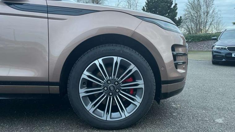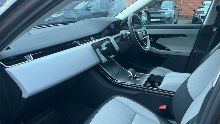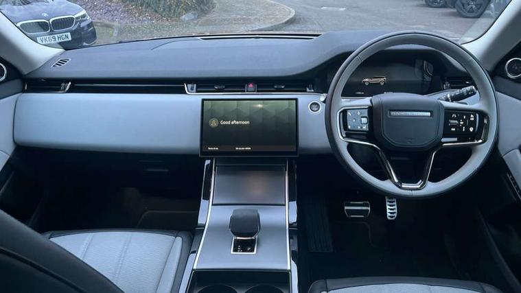 11.4" touch screen, Adaptive cruise control, Android Auto, Apple car play, Blind spot assist, Bluetooth connectivity, Brake pad wear indicator warning light, Driver condition monitor, eCall emergency system, Eco mode, Electronic power assisted steering (EPAS), Front and rear parking aid, InControl remote, Interactive driver display, Land Rover InControl apps, Lane keep assist, Pivi pro connected includes diamond pivi variant, smart settings, connected navigation pro, nuance speech licence, Powered tailgate/boot lid, Rear collision monitor, Rear traffic monitor, Traffic sign recognition with adaptive speed limiter, Voice control system, Wireless device charging, All terrain progress control, Diesel exhaust fluid (DEF) large tank, Efficient Driveline, Large fuel tank, Passive suspension, Terrain Response 2, Digital Audio Broadcast radio-DAB, Steering wheel mounted controls, Acoustic laminated windscreen, Auto headlights, Automatic headlight levelling, Electric windows with one touch open/close and anti trap, Flush deployable exterior door handles, Front and rear recovery eyes, Heated rear window with timer, Heated washer jets, Heated windscreen, Pixel LED headlights with signature DRL and LED tail Lights, Power fold, auto-dimming, heated door mirrors with approach lights and auto dimming driver side, Rain sensing windscreen wipers, Rear animated directional indicators, Rear fog lights, Rear side wing doors, Rear wiper, Side repeater indicators in mirror, Tailgate spoiler, Third brake light, Winter wiper park position, 14 way driver memory electric front seats with 2 way manual headrests + 4 way lumbar support, bolsters, 40:20:40 split folding rear seats with centre headrest and armrest, Ambient interior lighting, Bright metal pedals, Carpet mats, Chrome tread plates with range rover branding Includes stainless steel loadspace scuff plate with etched graphic, Customer configurable single point entry, Electrically adjustable steering column with memory function and easy entry/exit, Front and rear cupholders, Heated steering wheel, Isofix system on outer rear seats, Overhead lighting console, Overhead stowage for sunglasses, Passive front head restraints, Rear air vents, Rear head restraints, Satin chrome gearshift paddles, Single passenger seat, Sunvisors with illuminated vanity mirrors, Twin sliding front centre armrest, Online pack with data plan - Evoque, Power socket pack 2 - Evoque, 3 rear 3 point seatbelts, Anti-lock braking system (ABS), Brake hold function, Customer configurable autolock, DSC - Dynamic Stability Control, Electronic brake force distribution, Electronic parking brake, Electronic traction control, Emergency braking, Front and rear seatbelt reminder, Hill descent control, Hill launch assist, Low traction launch, Occupant protection assist, Passenger seat occupant detector, Power operated child locks, Roll stability control, Six airbags - Driver and passenger airbags/driver knee airbag/front side airbag and curtain airbags, Torque vectoring brake, Tyre pressure monitoring system, Alarm, Immobiliser, Intrusion sensor, Keyless entry, Locking wheel nuts,