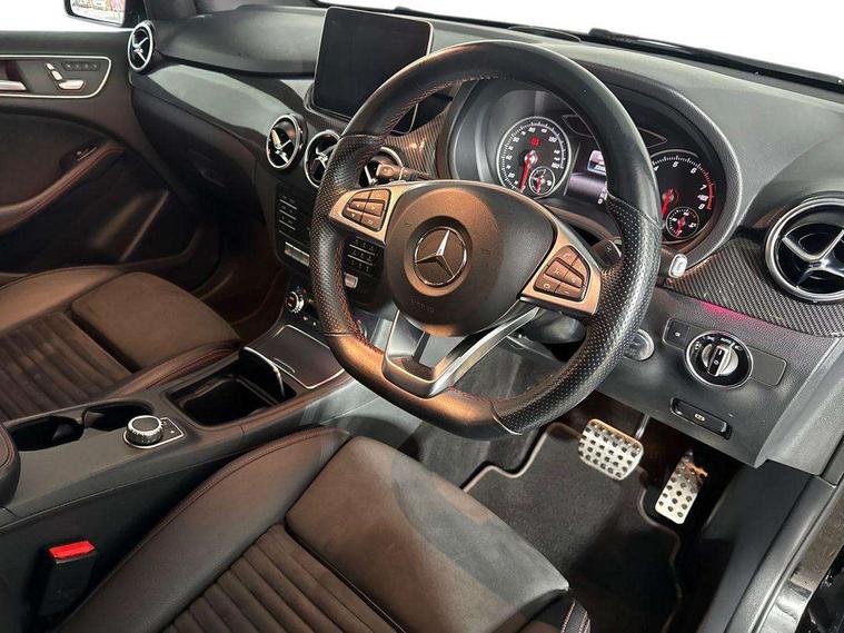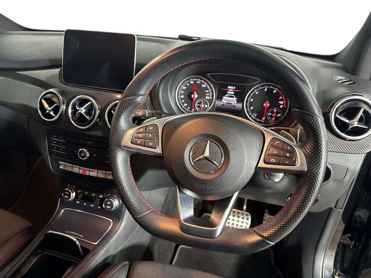 8" colour display screen, Active park assist, Attention assist, Collision prevention assist, Direct steering, Drive mode selector, External temperature gauge, Instrument cluster with 4.5-inch TFT colour display, Low fluid warning light, Mercedes-Benz emergency call, Multi function trip computer, Reversing camera, Service indicator (ASSYST PLUS), Smartphone integration with Apple CarPlay, Lowered suspension, 6 speakers, Bluetooth audio streaming, Media interface, USB port, Adaptive brake lights, Aluminium front door sills, AMG body styling, Auto dimming interior and driver's door mirror, Automatic headlamp activation, Body colour bumpers, Body colour door handles, Door sill plates with "Mercedes-Benz" lettering, Electric folding door mirrors, Electric front/rear windows/one touch operation, Electric heated + adjustable door mirrors, Electric sliding panoramic glass sunroof, Heated rear window with timer, Heated windscreen wash system, High beam assist, LED daytime running lights, LED Headlights, LED rear lights, Rain sensor windscreen wipers, Rear wiper, Twin exhaust tailpipes with chrome finishers, 1/3 to 2/3 split folding rear seats, 12 colour Ambient lighting, 12V power points in front + rear centre consoles, 2 Position luggage floor, 3 spoke flat bottomed sports leather multi function steering wheel with red contrast stitching, AMG brushed stainless steel sports pedals with rubber studs, Auto Mercedes-Benz child seat recognition sensor, Black roof liner, Centre console with cupholders, Collapsible storage box under luggage compartment floor, Courtesy lights, Door centre panels in dinamica, Driver and passenger underseat storage box, Driver/passenger sunvisors and illuminated vanity mirrors, Dual zone automatic climate control, Electric front seats with memory function, Footwell lights, Front centre armrest with storage compartment, Front headrests, Heated front seats, Height adjustable headrests, Height/reach adjustable steering column, Isofix rear child seat fastenings, Leather trimmed gearshift with chrome inserts, Load compartment cover, Luggage compartment lighting, Reading lights, Rear armrest with 2 cupholders and load through provision, Rear headrests, Seat cushion angle adjustment, Sliding front centre armrest with storage compartment, Sliding rear seats, Storage compartment in centre console, Storage compartment in front doors, 5 x 3 point seatbelts, ABS with Brake Assist, Brake calipers with Mercedes-Benz lettering + perforated brake discs, Child proof door locks, Crash responsive emergency lighting, Drivers knee airbag, Dual stage driver/passenger airbags, Electronic parking brake, ESP with ASR, Front and rear seatbelt reminder, Front passenger airbag deactivation, Front seat side impact airbags, Hill start assist, Seat occupancy sensor, Tyre pressure monitoring system, Warning triangle and first aid kit, Window airbags, Alarm system/interior protection/immobiliser, Keyless Go access/ignition system, Locking wheel bolts, Remote central locking, Air vents in Silver-chrome, Carbon fibre dash trim, Tirefit sealant with electric air pump,