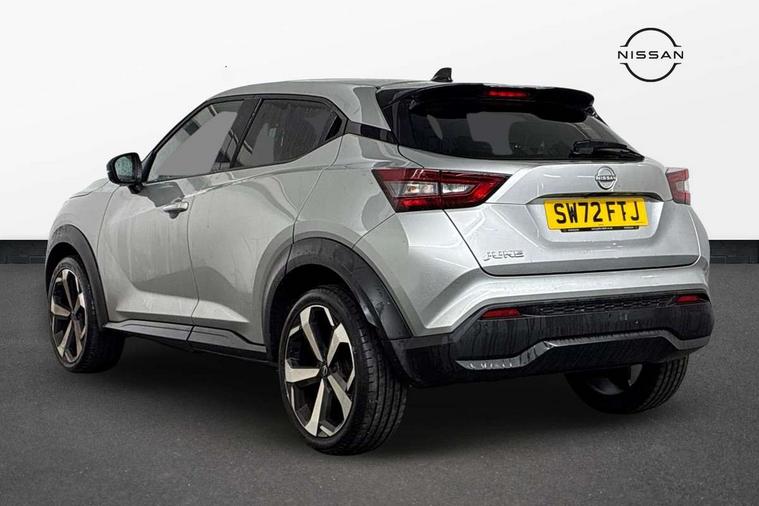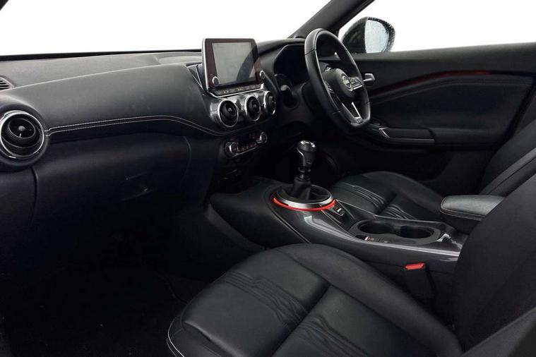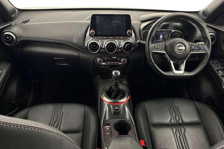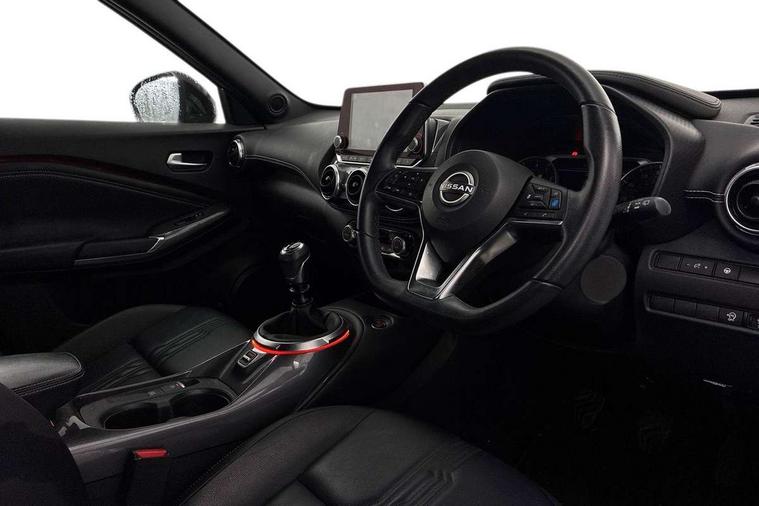 7" full colour TFT screen combimeter, Apple CarPlay and Google Android auto, Drive modes select (Eco, normal and sport), Emergency and breakdown call, Front parking sensor, Idle start/stop system, Intelligent lane intervention, Lane departure warning system, Nissan connect 8" touch screen entertainment system, Nissan connect nav with TomTom traffic, Nissan connect services and Wifi connection, Outside temperature sensor, Power Steering, Rear parking sensor, Traffic sign recognition, Trip computer, Voice recognition, Gasoline particulate filter, 10 Bose speakers 6 speakers and 2 headrest speakers for driver/passenger seats, Bluetooth system, USB, Aux-in and 12V socket, Bose personal sound stage control, DAB Digital radio, Rear console USB port, Auto dimming interior rear view mirror, Auto headlights, Automatic hazard signal with emergency stop signal, Body colour bumpers, Body colour door handles, Electrically adjustable door mirrors with integrated indicators, Follow me home headlights, Front and rear electric window with one touch driver window, Heated and auto folding door mirrors, High beam assist, LED daytime running lights, LED front fog lights, LED headlamps, LED rear fog lamp, LED rear lamps, Rain sensor windscreen wipers, Rear privacy glass, Rear side wing doors, Rear wiper, Thermaclear heated windscreen, Three blink turn signal, 3 height adjustable rear headrests, 3 seat bench in 2nd row, 60/40 split folding rear seat, Automatic climate control, Card holder on driver sunvisor, Door ambient lighting, Driver and passenger sliding and reclining seats, Driver seat back pocket, Driver side rear coat hanger, Driver/passenger sunvisors and vanity mirrors, Front and rear cabin lights, Front armrest, Front door pockets with bottle holders, Front head restraints, Front passenger isofix child seat anchorage point, Front/rear passenger grab handles, Gear console ambient circle lighting, Grey synthetic leather kneepad, Heated front seats, Height adjustable driver's seat, Height adjustable passenger seat, Internal chrome door handles, Leather gearshift knob, Leather steering wheel, Luggage board, Luggage space lighting, Monoform sporty seats, Multifunction steering wheel, Passenger seat back pocket, Rear door bottle holders, Single front passenger seat, Synthetic leather upholstery, Telescopic steering wheel adjustment, Two cupholders in front centre console, Two rear isofix child seat anchorage points with top tether, Welcome light and console tray ambient lighting, Advanced safety shield pack - Juke, ABS with EBD and brake assist, Active ride control, Active Trace Control, Driver and passenger airbags, Driver and passenger side airbags, Electric handbrake with auto hold function, Electronic Stability Programme (ESP), Front and rear curtain airbags, Height adjustable seatbelts, Hill start assist, Intelligent emergency braking with pedestrian and cyclist recognition, Rear door child safety locks, Seatbelt reminder for driver/front passenger and rear seats, Single tone horn, Three 3 point rear seatbelts, Traction control, Tyre pressure monitoring system, VDC Dynamic Vehicle Control, Ventilated rear brake discs, Alarm, Immobiliser, Intelligent key and start push button with walk away lock and approach unlock functions, Remote central locking,