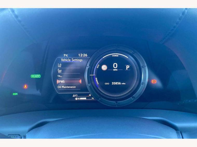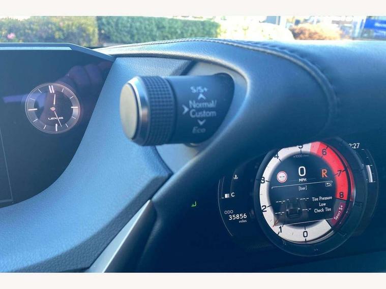 5 Driving modes EV/Normal/Eco/Sport/Sport+, 8" TFT information screen with sliding speedometer, Analogue clock with LED illumination, Apple car play/Android Auto, Auto glide control Lexus first - AGC, Blind spot monitoring (BSM) with Rear cross traffic alert and auto brake (RCTAB), Drive mode select controller, Dynamic radar cruise control, E-call, EPS with speed sensitive steering, Intelligent parking sensors, Lane change flasher function, Lane tracking assist - LTA, Lexus link connected services, Lexus navigation with 8" multi-information screen, Pre-collision system (PCS), Push button start, Reversing camera, Road sign assist - RSA, Vehicle Stability Control - VSC and drive mode controls on Instrument brinicle, F SPORT - Adaptive variable suspension - AVS, Lateral damping system, Performance dampers, VDIM, 10 speaker pioneer audio with single CD, DAB, aux, shark fin antenna + Bluetooth system, Multimedia system with remote touch pad, 2 eye LED headlights with auto high beam, Acoustic front windscreen, Aluminium front scuff plates with Lexus logo, Aluminium rear scuff plates, Auto dimming interior rear view mirror, Auto fold, reverse tilt, auto dimming with memory wide angle door mirrors, Auto headlight levelling, Auto headlights, Cornering light, F Sport badging, F SPORT exterior styling, F Sport front and rear bumper, F SPORT logo on the front wing, Follow me home headlights, Front and rear one-touch automatic power windows equipped with a jam protection, Front grille, Front windscreen de-icer, Green UV glass with water repellent coating on front side windows, Headlight cleaners, LED daytime running lights, LED rear lights, Pop up hood, Privacy glass, Rain sensing windscreen wipers, Rear spoiler, Sunroof, Water repellent glass on front door windows, 12V socket in front and rear, 2 cup holders in the front and rear centre console, 2 USB ports for charging in rear of centre console, 2 USB ports in front centre console, 2 x fixed shopping bag hooks in boot, 2 zone climate control with climate concierge and nanoe ion generator, 3 spoke leather steering wheel with power adjust, 4 x tie down hooks in the boot, 8 way Electrically adjustable front seats including headrest with heater, Active sound control, Aluminium sport accelerator pedal, brake and foot rest, Card holder installed in driver and passengers sun visors, Driver seat memory function, Easy access system with seat slide + tilt + telescopic, F SPORT seats, F Sport steering wheel with F Sport perforated leather, Fixed rear seat with trunk through, Front and rear door pockets, Front and rear head restraints, Front centre armrest with storage, Heated, power adjust driver and passengers seats with 2 way lumbar support, Luggage storage tray under deck board to right side, Map pockets on front seats, Paddle shift controls, Perforated leather shift knob, Rear armrest with 2 cup holders and storage, Self charging hybrid, Tahara leather upholstery, Textile carpet mats, Through load facility, 10 airbags - front, side, knee, front and rear curtain airbag, 2 x Isofix child rear seat restraints, 3 point front seat belts, Active Traction Control (TRC), Adjustable seat belt anchor points, Anti-lock braking system (ABS), Electronic parking brake, ELR (Emergency locking retractor), Front and rear outer seat belt pre-tensioners, Front passenger's airbag cut off device, HAC (Hill start assist control) with brake hold, Seat belt force limiter, Sway warning system, Three 3 point rear seatbelts, Tyre pressure monitoring system, Alarm, Immobiliser, Locking wheel nuts, Smart entry + Smart start, Speed sensitive auto door locking, Two motion door lock with double lock, VIN Window etching, Alloy instrument panel and door inserts, Handori aluminium inlay, 18" Alloy wheels with F SPORT Design, Tyre repair kit,