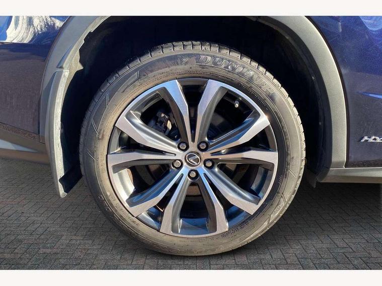 12.3" Touchscreen display and remote touch interface, 4 driving modes EV/Eco/Normal/Sport, Analogue clock with GPS function, Apple car play/Android Auto, Bluetooth mobile phone connectivity, Electric power steering, Front and rear parking sensors with intelligent clearance sonar, Lane change flasher function, Lexus link connected services with available optional wifi, Lexus Premium Navigation with full European map capability, street view and connected services, Multi-information display 4-inch TFT, Push button starter, Reversing camera with back guide lines, Wireless Smartphone charger, E-Four Automatic transmission, Vehicle Dynamics Integrated Management (VDIM), Vehicle Stability Control (VSC), 12 speakers Pioneer audio, AUX socket with VTR compatibility, DAB Digital radio, DVD, Front and rear USB ports, 3 eye LED headlights with auto high beam, Auto dimming rear view mirror, Front and rear electric windows, Headlight washers, Heated, auto-folding door mirrors, auto dimming with rerverse tilt and memory, LED brake lights and rear lights with emergency brake signal, LED cornering headlights, LED daytime running lights, LED front and rear sequential indicators, LED front fog lights, Privacy glass, rear doors and tailgate, Puddle lights, Rain sensor windscreen wipers, Roof rails, 2 map pockets in the rear, 2 way electric lumbar support, 2 way manually adjustable front headrests, 2 way manually adjustable rear headrests, 2 x fixed shopping bag hooks in boot, 2 x Sunvisors with vanity mirror and lamp, 3 x 12V power sockets, 4 x tie down hooks in the boot, 60/40 split folding rear seat with 40/20/40 folding ability, 8 way electrically adjustable front seats, Card holder installed in driver and passengers sun visors, Centre and rear armrest with 2 cupholders, Centre armrest with storage box, Climate concierge, Driver seat memory function, Driver's seat easy access auto retraction function, Dual zone climate control air conditioning system with S flow and Nanoe technology, Electrically adjustable leather steering wheel with paddle shifts and auto retraction function, Electrically adjustable steering column, Glasses holder in roof lighting panel, Heated front seats, Heated steering wheel, Isofix standard child seat restraint mounting, Leather gear lever, LED interior illumination, Rear armrest with storage, Self charging hybrid, Sliding/reclining rear seats, Small compartment to right of steering wheel, Smooth leather upholstery, Textile carpet mats, Ventilated front seats, 3 point ELR front and rear seatbelts with pretensioners, ABS, Curtain airbags, Driver and front passenger 2 stage airbag, Driver/front passenger side airbags, Drivers knee airbag, EBD + Brake Assist, Electronic parking brake, Electronically controlled braking, Front passenger seat cushion airbag, Hill assist control, Lexus safety system - dynamic radar cruise control, pre collision system day and night, lane tracing assist, road sign, automatic high beam, OTA, Passenger airbag cut-off device, Rear passenger side airbags, Traction control, Tyre pressure warning, WIL whiplash protection front seats, Anti theft system with alarm, intrusion sensor, tilt sensor, glass breakage sensor and engine immobiliser, Locking wheel nuts, Security window etching, Smart keyless entry, Two motion door lock with double lock, Black grain inlay, 20" Alloy wheels, Temporary spare wheel,